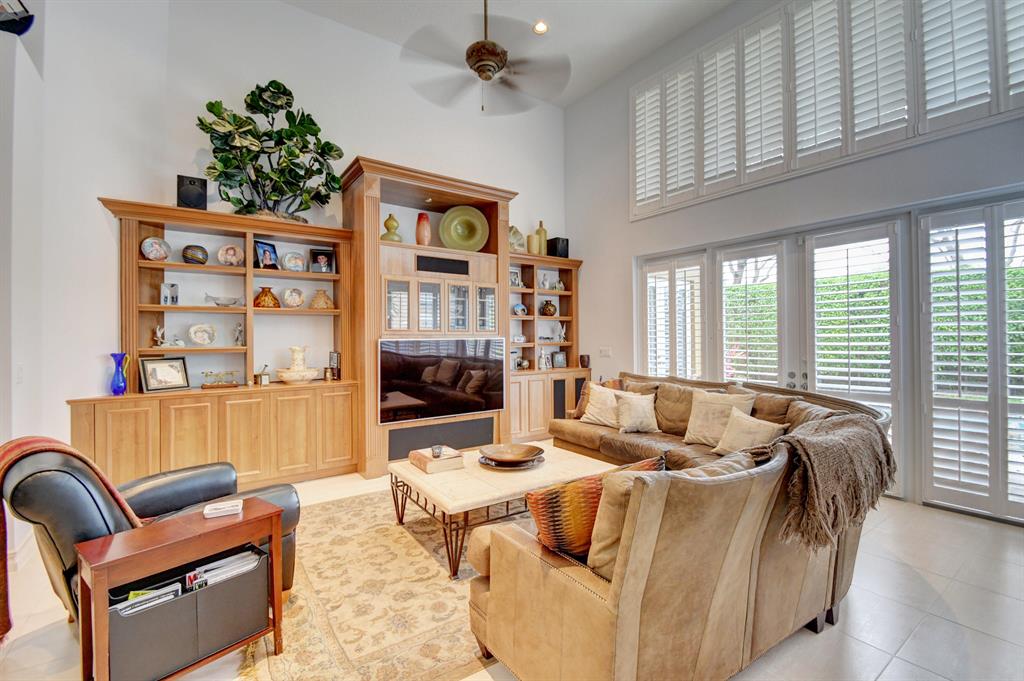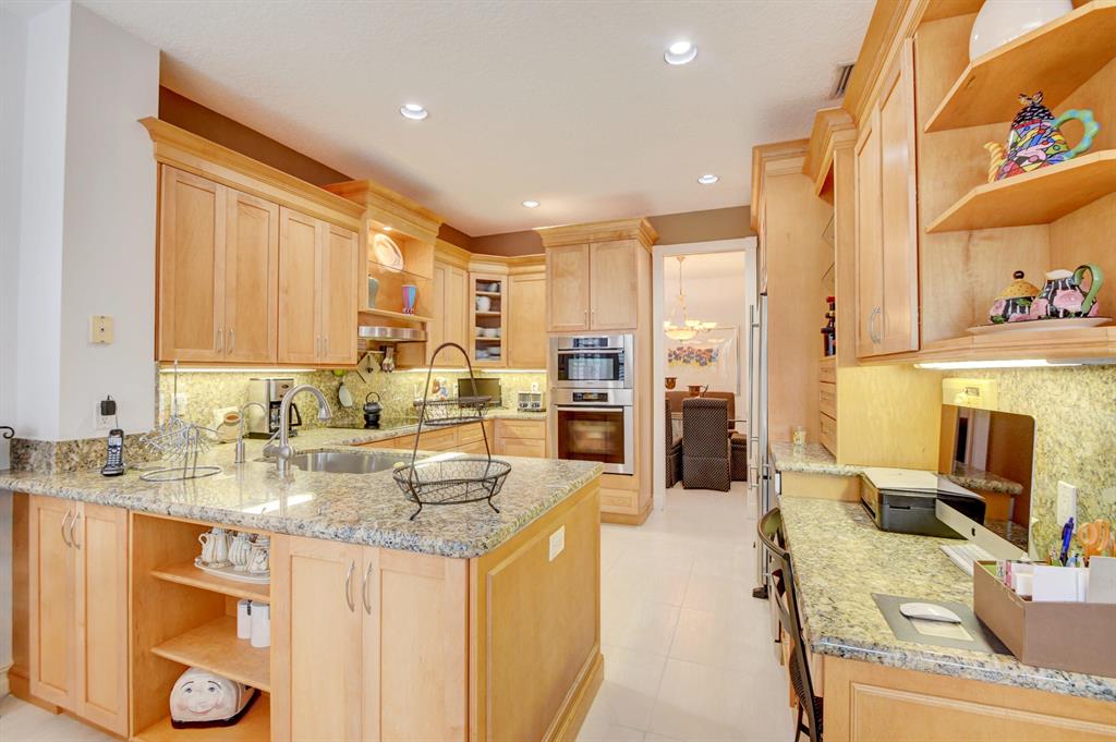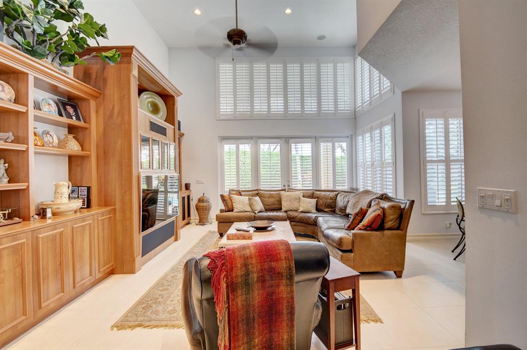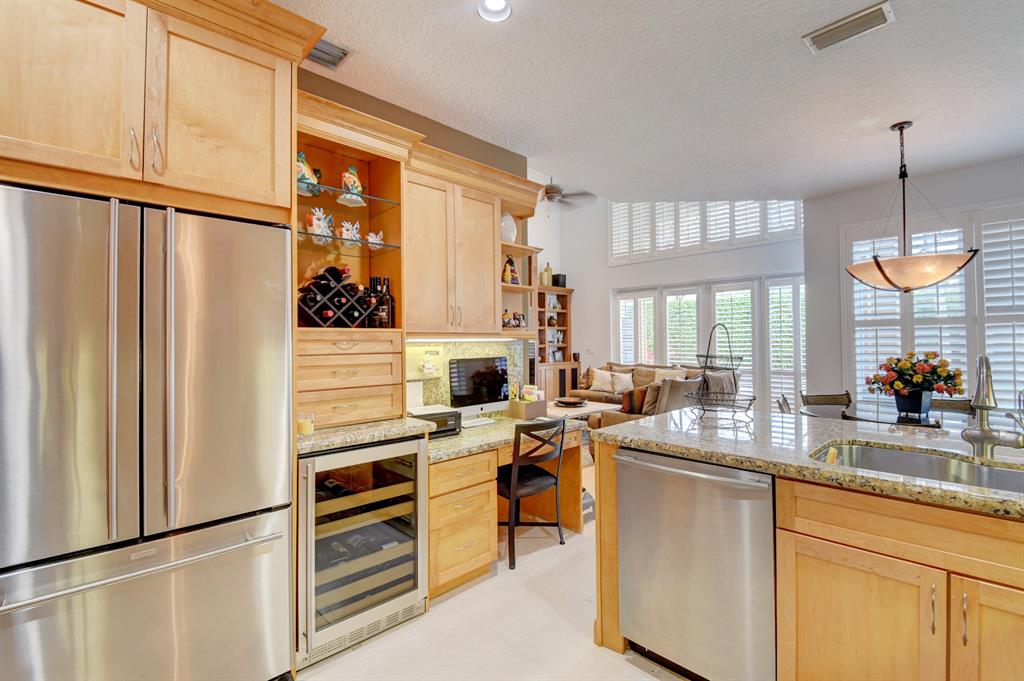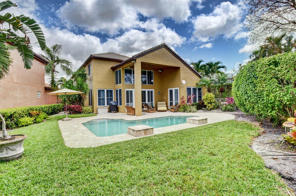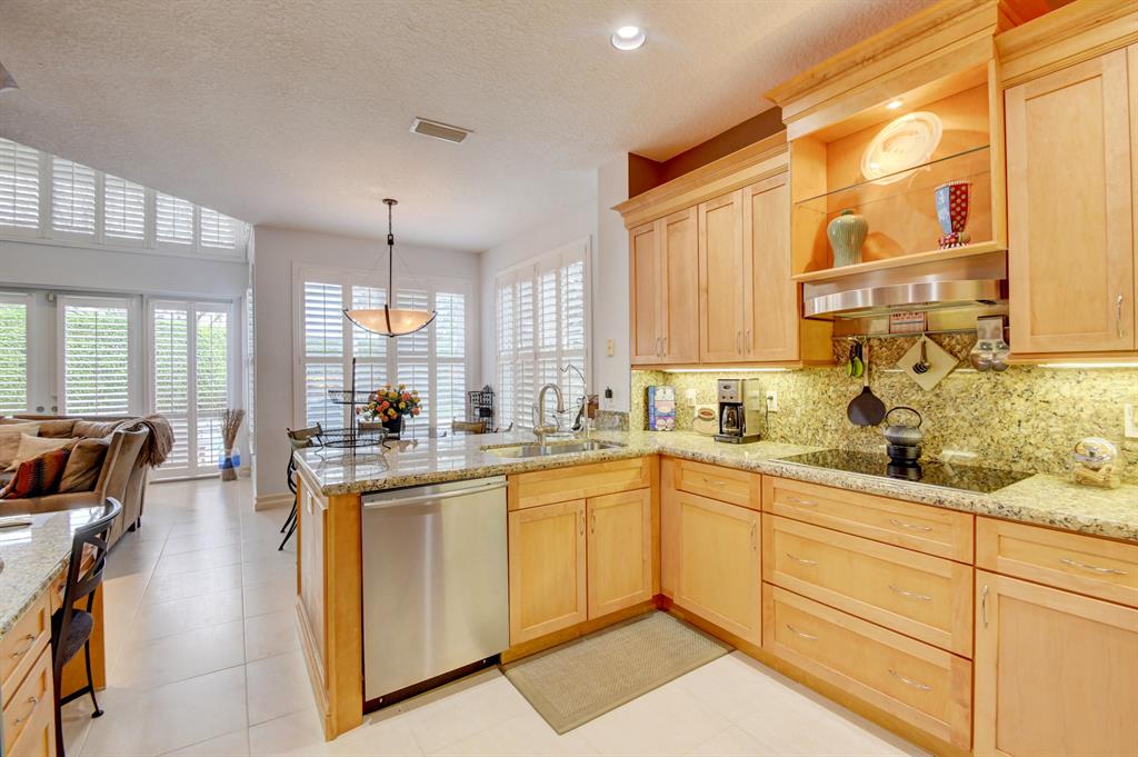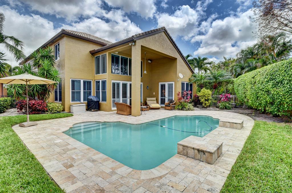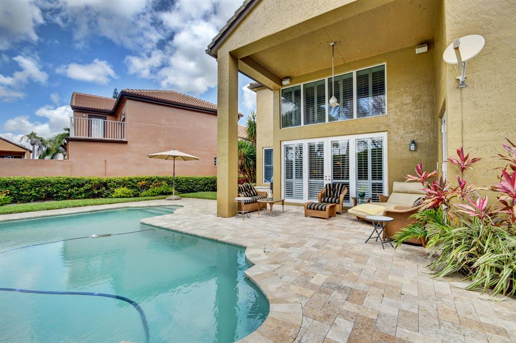 Sunlight fills this lovely home of 4 bedrooms & 3 1/2 baths offering impact glass;volume ceilings;neutral tile & carpet;remodeled kitchen of light oak shaker-style cabinets,granite counters & backsplash,stainless steel appliances,wine refrigerator & a charming breakfast nook.The Family Room offers a built-in entertainment center. The remodeled powder room has a newer toilet & vanity with onyx & glass.The Master Suite features a vaulted ceiling, custom closet design & laminate flooring. This home also offers plantation shutters; freshly painted walls in the 1st floor;travertine window sills,surround sound system & water filtration. French doors lead to a private back yard featuring lush landscaping,a pavered patio with a covered area,open area with a pool & fountains & spacious grassy area