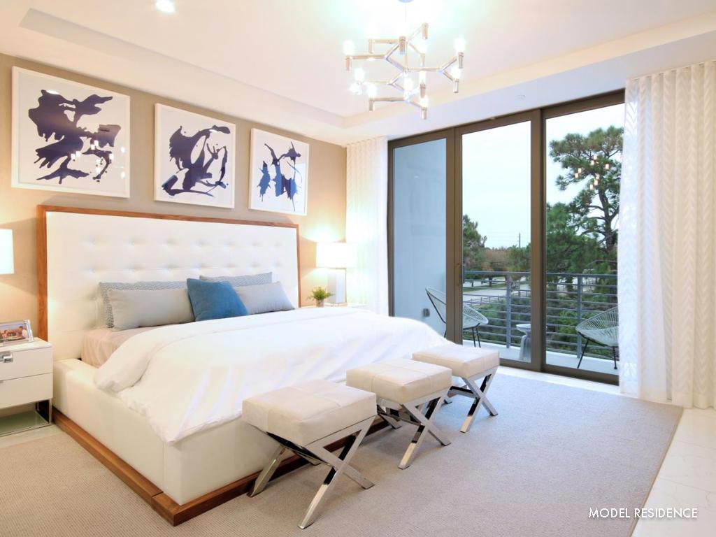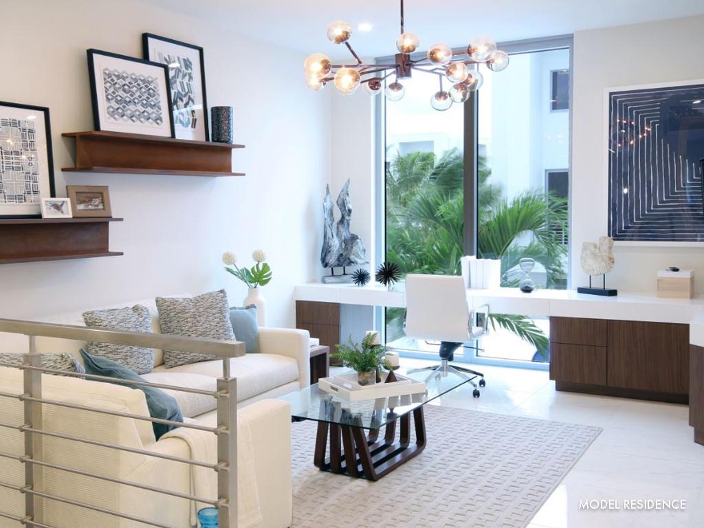 Stunning contemporary architecture in a private community of 75 residences. Our floorplans offer open living areas and flexible spaces on multiple levels. Great room living area promotes a spacious and bright Florida lifestyle with 10 foot ceiling and 9ft sliding doors. Interior finishes offer the latest upscale flooring and European cabinetry. Decorators Unlimited beautifully designed two on-site Models, available for viewing 7 days a week! Plan One offers open living areas and flexible spaces. The kitchen, Dining Room and Great Room create convenient open living while a first-floor hideaway provides an escape that can be converted into a Den or a third Guest Suite. Photos are our staged model.