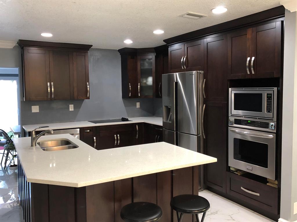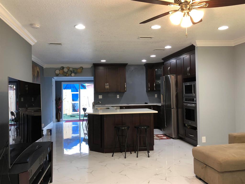 Beautiful Totally Remodeled 4/2, New Custom Kitchen Wood Cabinets with White Quartz, New Baths, New Open Floor Plan, New Stunish Porcelain Tile entire House, New Insulated Windows, New AC, New Panel and Electric Wires entire house. New Plumbing Lines, (All with permits). 2 lots, space available for Guest House or huge Garage, bring your Boat or R/V. Crown Molding, New Heater, Big Driveway, Storage room, Corner lot, Hurry Up Wont Last! Appliances not included, Only cooktop remains. Seller will provide with $2,000 credit at closing.