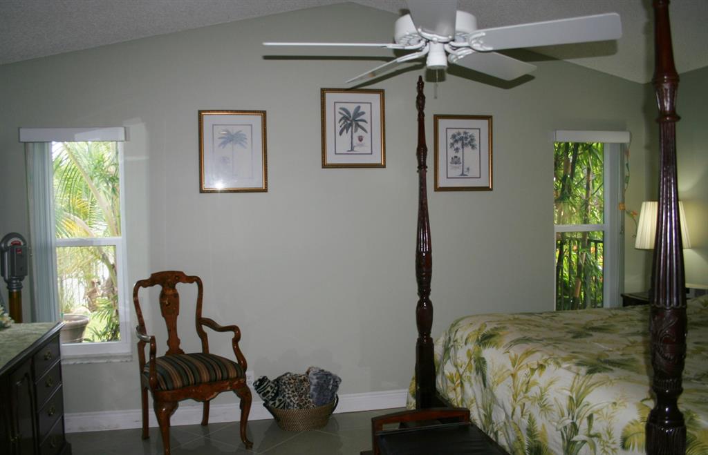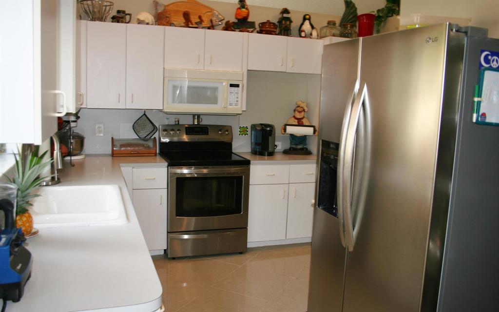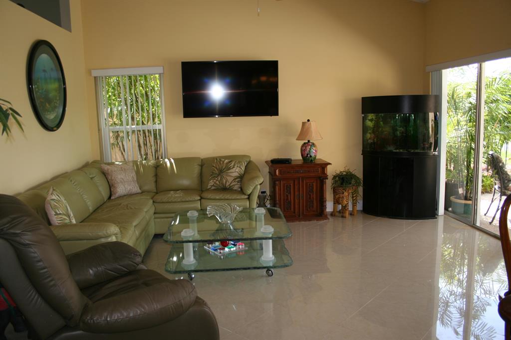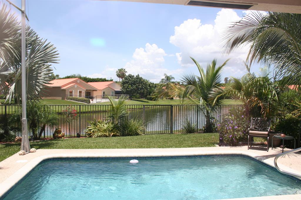 Fabulous non smoking 3/2, lushly landscaped with coconut palms, banana plants, bamboo, pineapple overlooking the lake, with sparkling pool, yard completely fenced with confined ''doggie'' area. New roof and A/C in 2014, 20 by 20 porcelain tile throughout, no carpet, split plan, large master with spacious walk in closet, high ceilings, all energy saving LED lights, eat in kitchen, laundry room and plenty of storage space in attic. Exterior of home was painted in 2018. Washer/Dryer not included in sale.