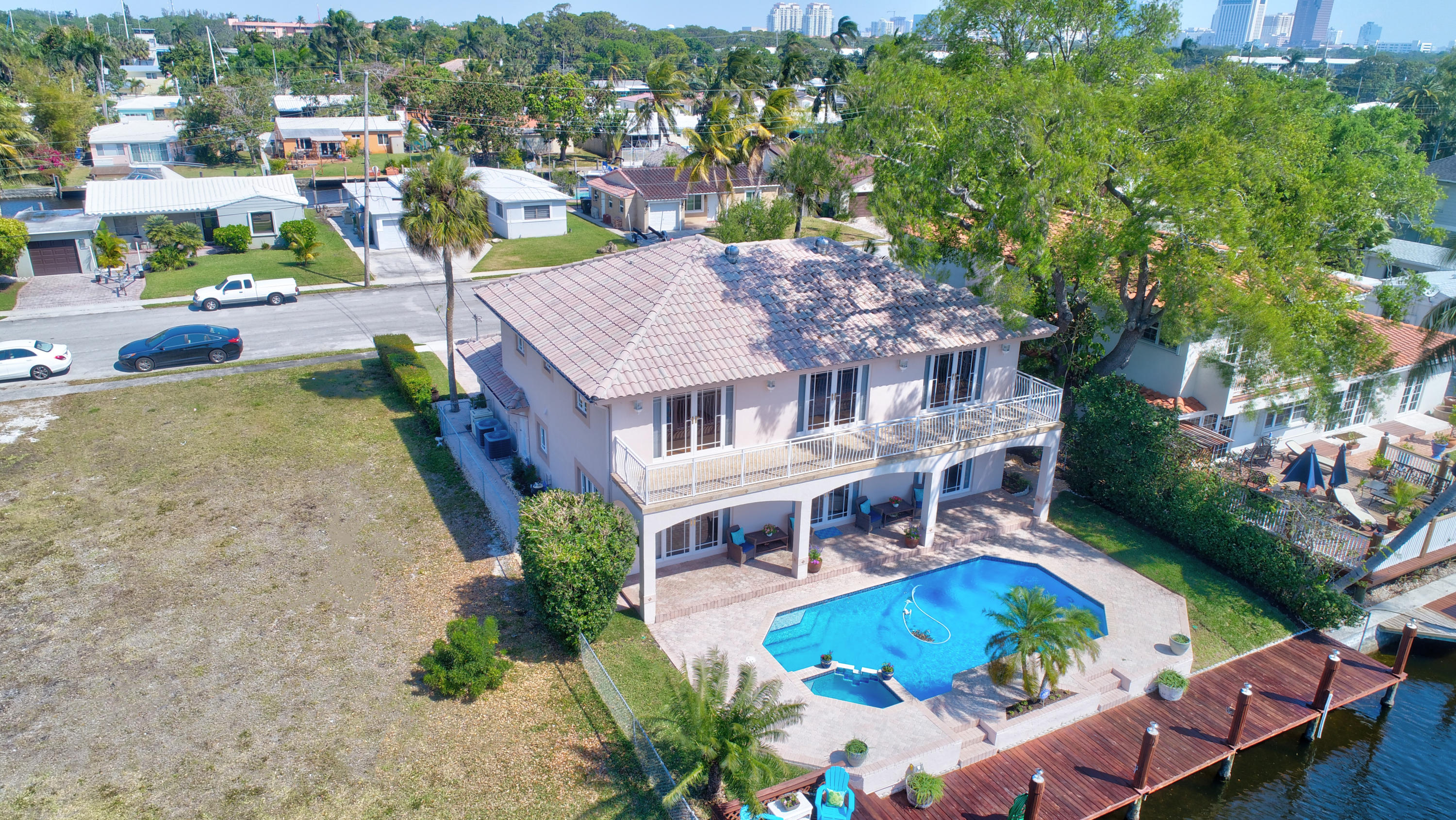 2001 CBS 4Bed 3Bath 2Car Garage 3 lots off South Fork of the New River located in Citrus Isles. Deep water no fixed bridges, 60' dock with 30AMP electric & water. Natural gas heated pool & spa. maple cabinets, granite & SS appliances including natural gas cook top. Formal dining & living room with wood burning granite fireplace. Spacious master bedroom with fireplace, walk in closet, french doors lead to large balcony overlooking pool & canal. Master bath features dual sinks, makeup table, jetted tub & frameless shower. Travertine marble downstairs & oak on 2nd floor. Additional features include: crown molding, Iron stair rail, newer appliances & garage door openers. New dual zone A/C's 2017. Freshly painted inside & out. Fenced Yard.