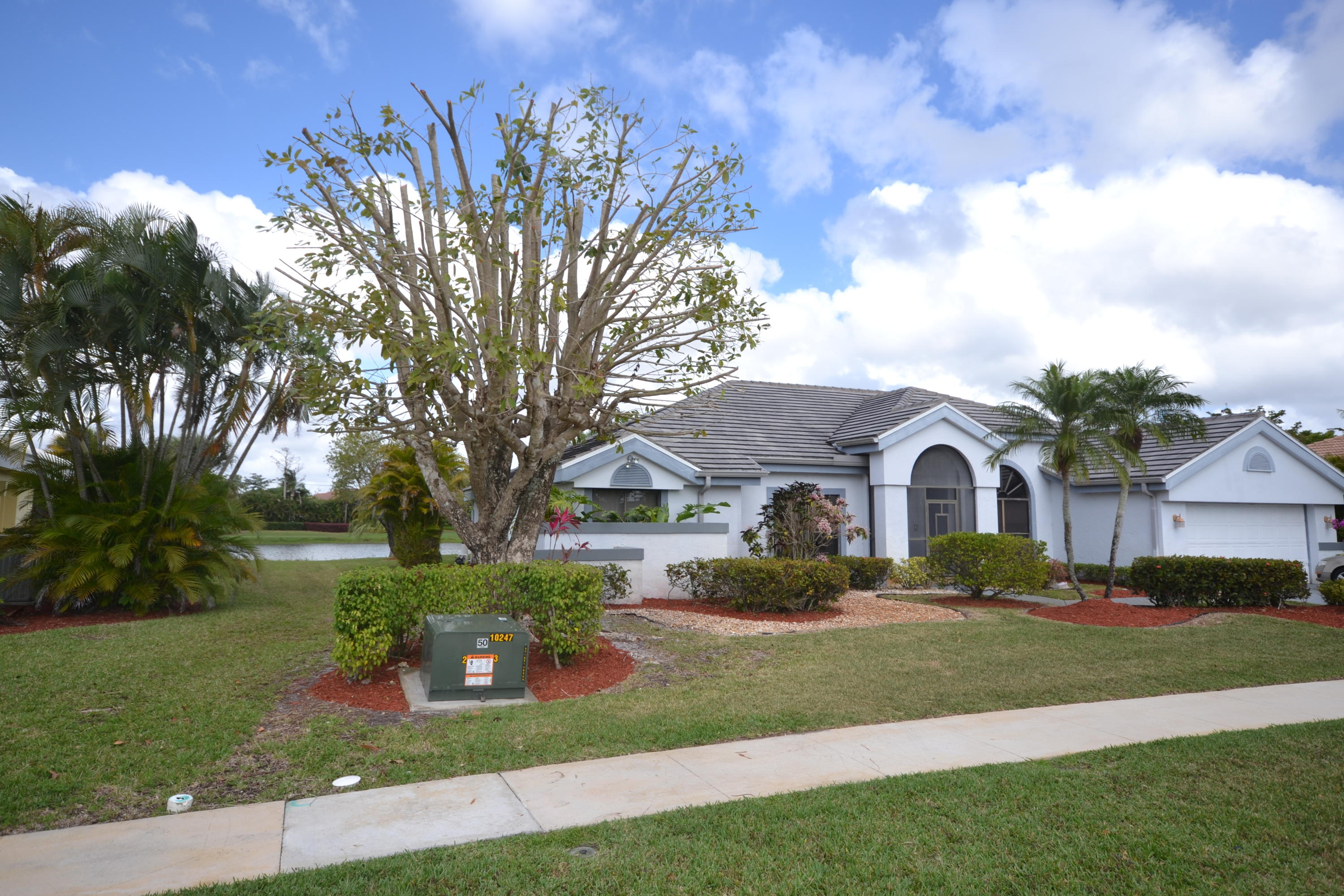 VERY SPECIAL PRIME LOCATION IN BOCA WOODS COUNTRY CLUB - NO OTHER HOMES ACROSS THE STREET, JUST WATER & GOLF VIEWS FOR QUITE A WAYS! GREAT WATER & GOLF VIEWS IN THE BACK TOO! SPACIOUS GREAT ROOM W/HIGH VOLUME CEILING, CUSTOM BAR & WALL OF SLIDERS TO COVERED PATIO & SCREENED POOL PATIO,LARGE MASTER BEDROOM SUITE W/DOUBLE DOOR ENTRANCE HALL,TRAY CEILING,HUGE BATH & 2 WALK-IN CLOSETS, SECOND BEDROOM IS EN SUITE & BATH IS ALSO ACCESSED BY POOL,LAUNDRY ROOM,2 CAR GARAGE & MUCH MORE! GOLF EQUITY MEMBERSHIP MUST BE PURCHASED WITH THIS HOME: $30,000 FULLY REFUNDABLE WHEN YOU SELL + $30,000 NON-REFUNDABLE,DUES $14,850+TAX/YR + TAX,$107/MO SERVICE CHARGE AS NO TIPPING. BOCA WOODS FEATURES 2 GOLF COURSES-DRIVING RANGE-PUTTING GREENS-TENNIS COURTS-PROFESSIONAL INSTRUCTORS - FINE DINING...