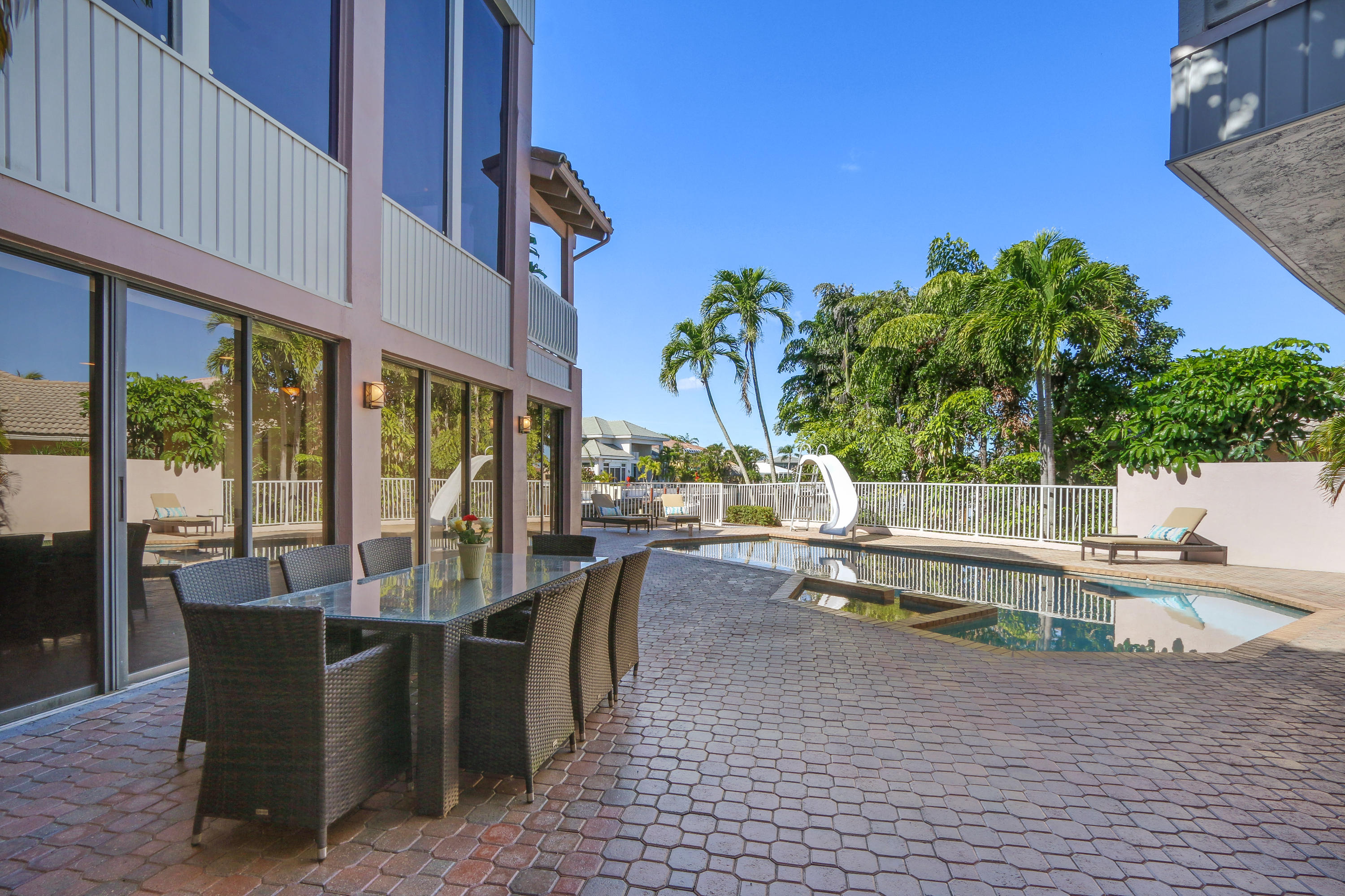 JUST REDUCED $250,000 ON THIS GORGEOUS 6 BEDROOM, 7 BATH, WATERFRONT HOME WITH PRIVATE DOCK AND OVER 5,800 SQ.FT. UNDER AIR.Take a tranquil sunset cruise on your boat through the waterways or fish from your private dock. Enjoy this luxurious, 7,309 sq ft, of airy and ultra-bright, bay side jewel in Boca Raton. Living areas open directly out to the pool and outdoor space allowing seamless flow for entertaining large and intimate gatherings effortlessly inside and out. An extraordinary contemporary home with amazing sunset views from the second-floor balcony and master. This home features 6 spacious bedrooms and seven bathrooms which includes ground level staff quarter. Very large master bedroom with on-suite, large closet and, wood burning fireplace.