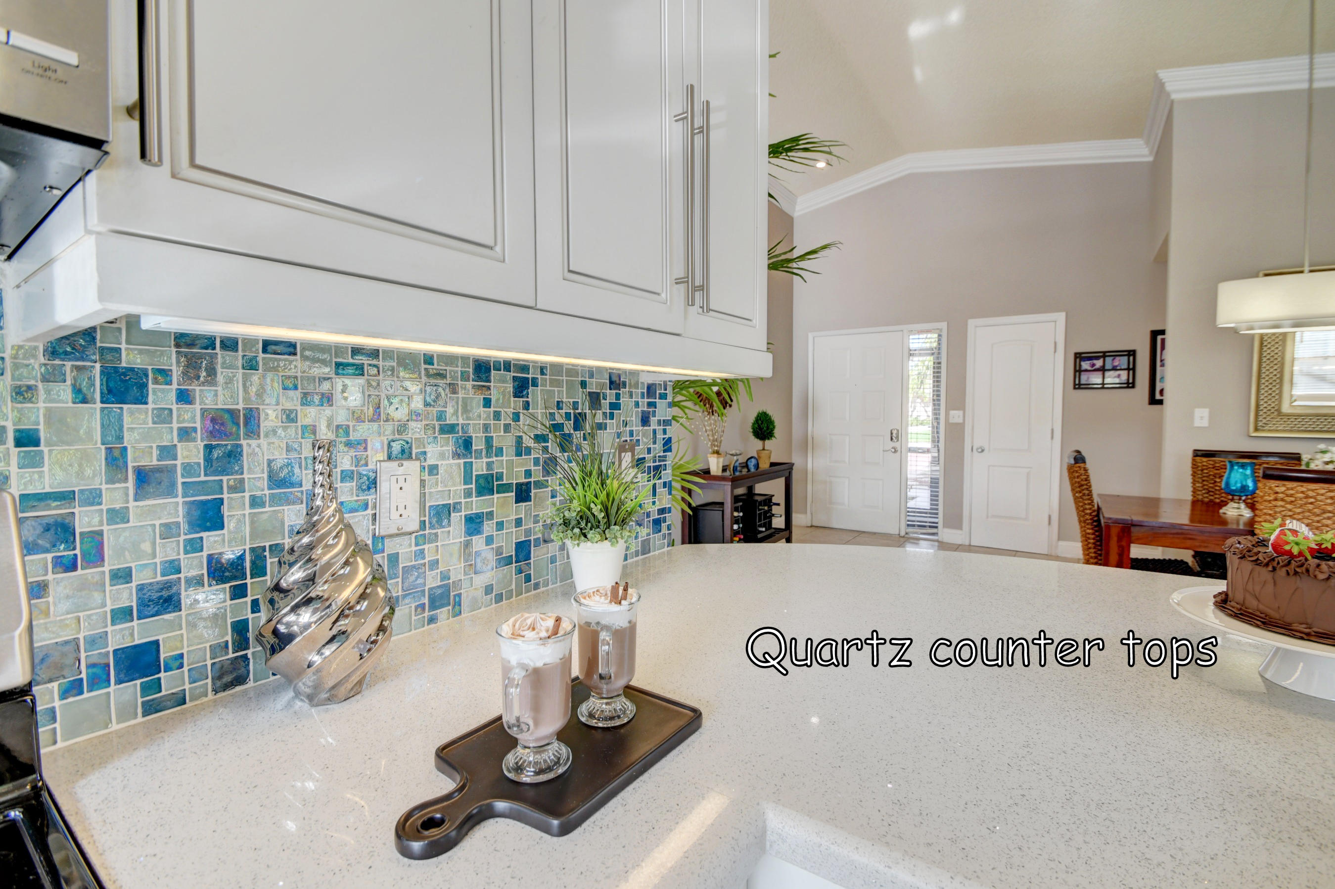 Wow!! This home really has it all! This is a very special house! 4 bedrooms, 2 baths, screened in salt water pool with beautiful paver pattern design, on the water w/huge lot that is over 1/3 of an acre on a cul-da-sac!! Open & bright with vaulted ceilings & crown molding. The interior was just freshly painted. Extremely updated brand new kitchen w/Quartz countertops, stainless appliances, glass tile backsplash, & new wood cabinetry with tons of extra storage. Tile flooring in the living areas & wood laminate flooring in the bedrooms. Updated bathrooms... Huge walk in closet in the master. Enjoy incredible sunsets every night. Huge screened in pool was just resurfaced/enjoy "Tahoe Blue" diamond bright finish. (click more)