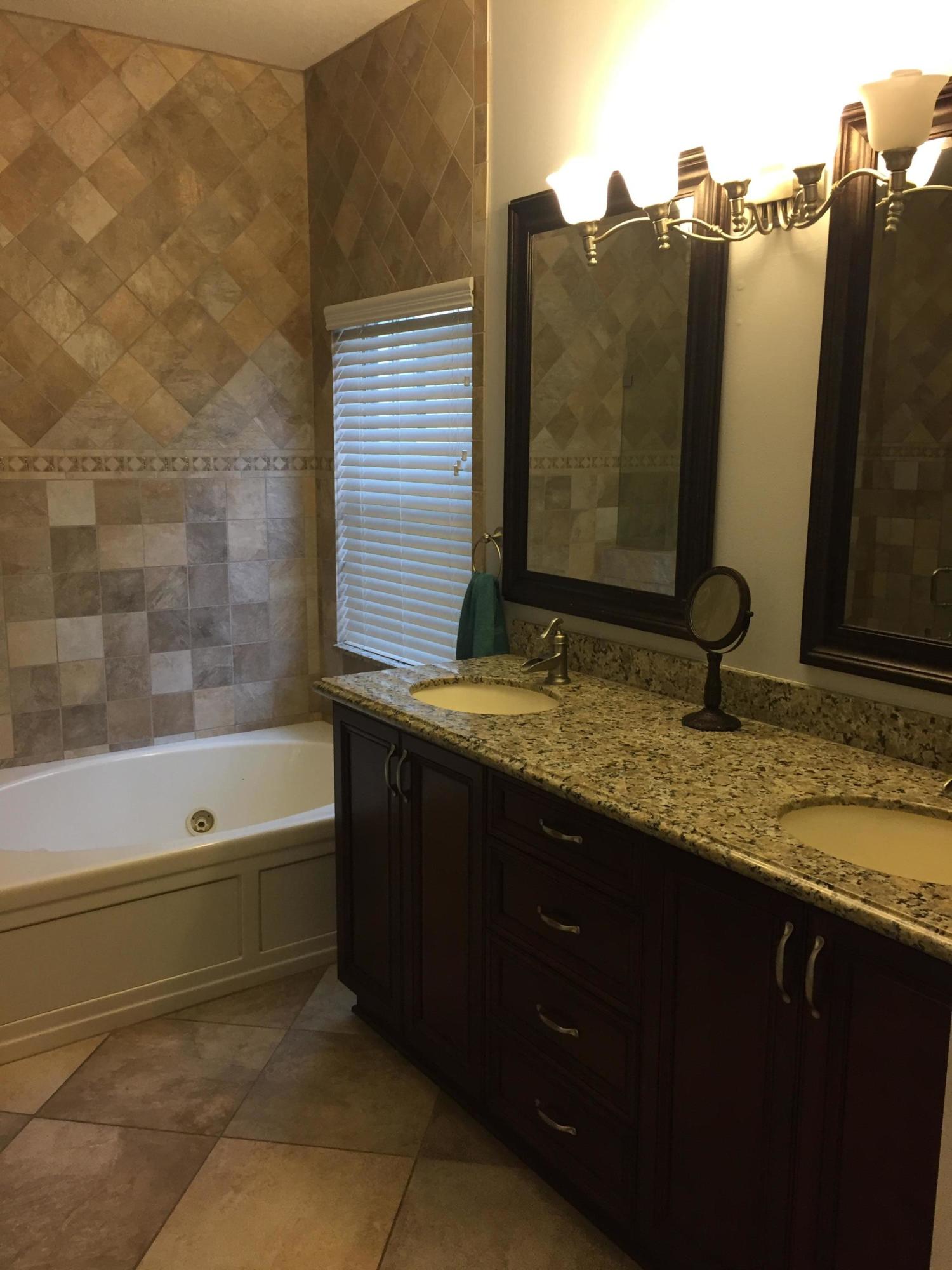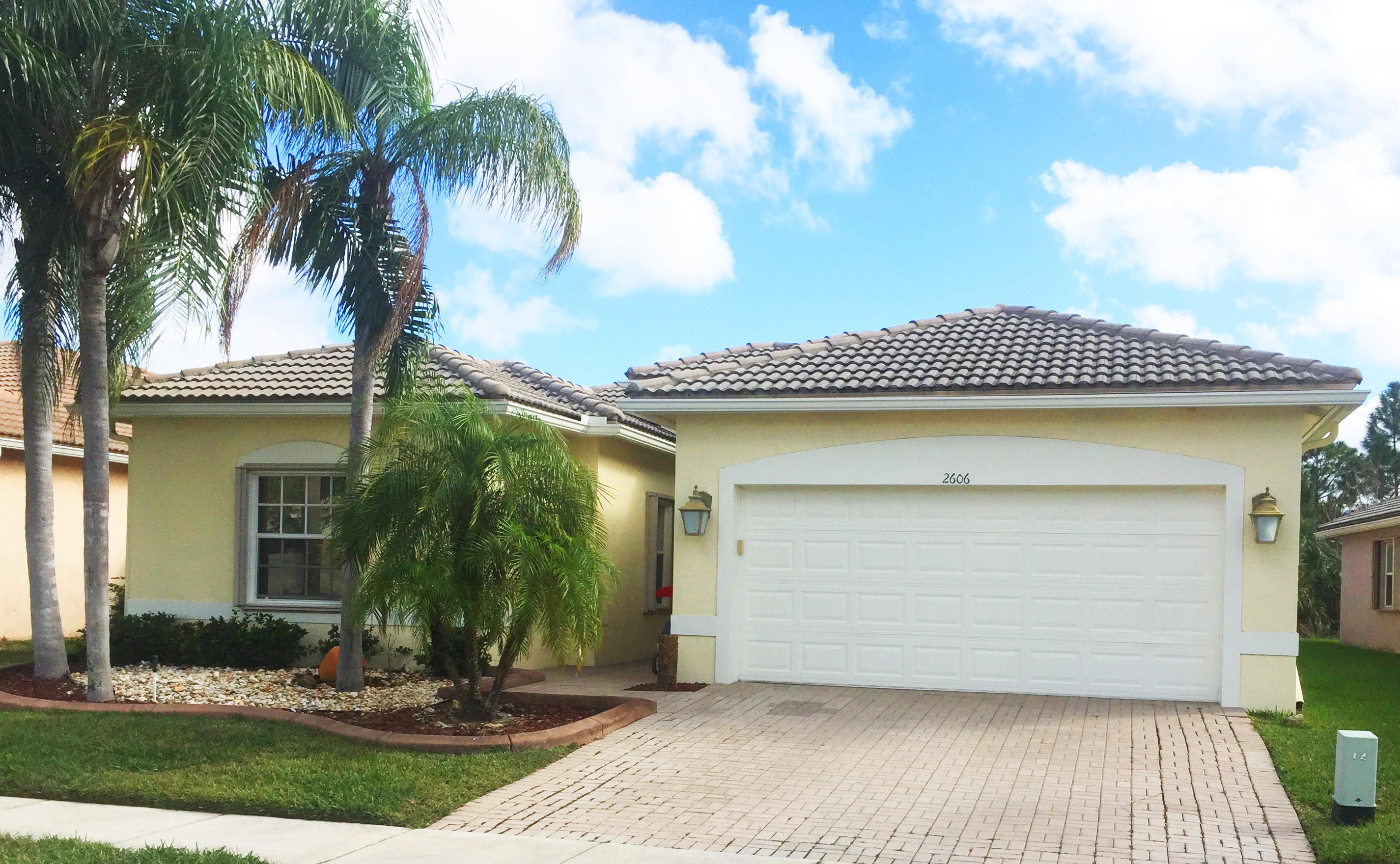 Motivated seller! This 4/2/2 home is completely updated & move in ready. Located in the beautiful and centrally located development of Andros Isle. No age restrictions and pets welcomed. Interior features over 2000 sq. feet of living space, complete with wood and tile flooring throughout, crown molding, granite countertops in kitchen and both bathrooms, 42" kitchen cabinets with new SS Whirlpool appliances. Large master suite includes custom vanity with dual sinks, Jacuzzi bath, large spa style shower with 2 shower heads, and frameless glass. Newer A/C,W&D, and water heater. Exterior features brand new 25 year warranty paint, fenced in yard, and amazing water/preserve views of West Palm Beach water catchment area. Exceptionally priced HOA amenities includes 24 hour security alarm.