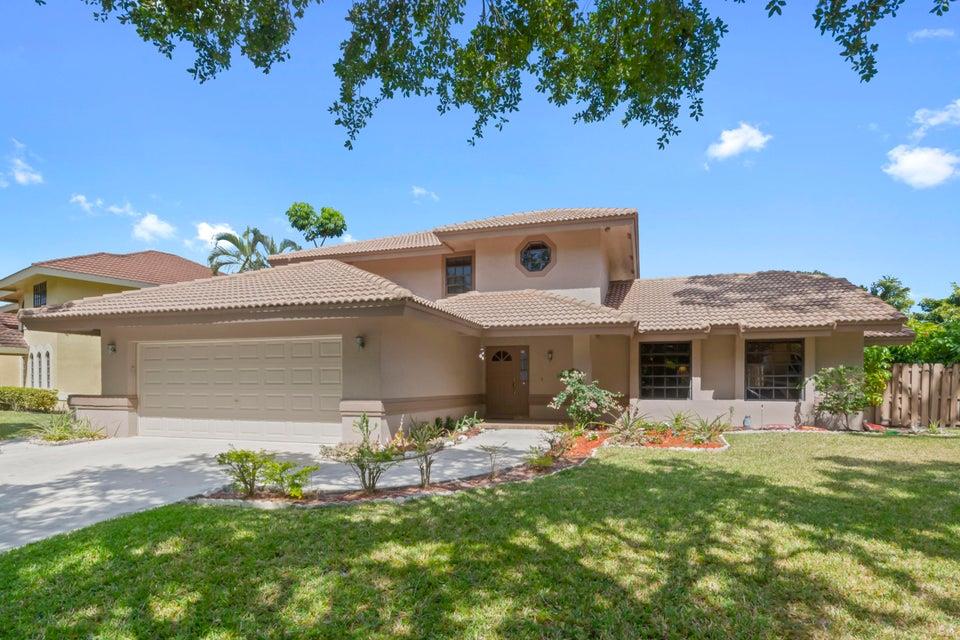 You will love this warm and welcoming two-story home in the Boca Tierra section of Colonnade. Move-in ready- 4 Bedrooms, 2.5 Baths, spacious eat-in kitchen with white cabinetry, family room. Master bedroom and bath are on ground floor with powder room and living/dining area and three guest rooms and bath are located on the second floor. Features include tongue-in-groove wood vaulted ceiling treatments through the living area, wood floors, covered patio, fenced yard with room for a pool. With quiet tree-lined streets, residents of Colonnade enjoy a community park featuring tennis, basketball, tot lot, stretching area and wide greenspace. Boca Raton's best public and private schools are nearby. Easy access to all major highways and Town Center Mall. Priced to Sell!