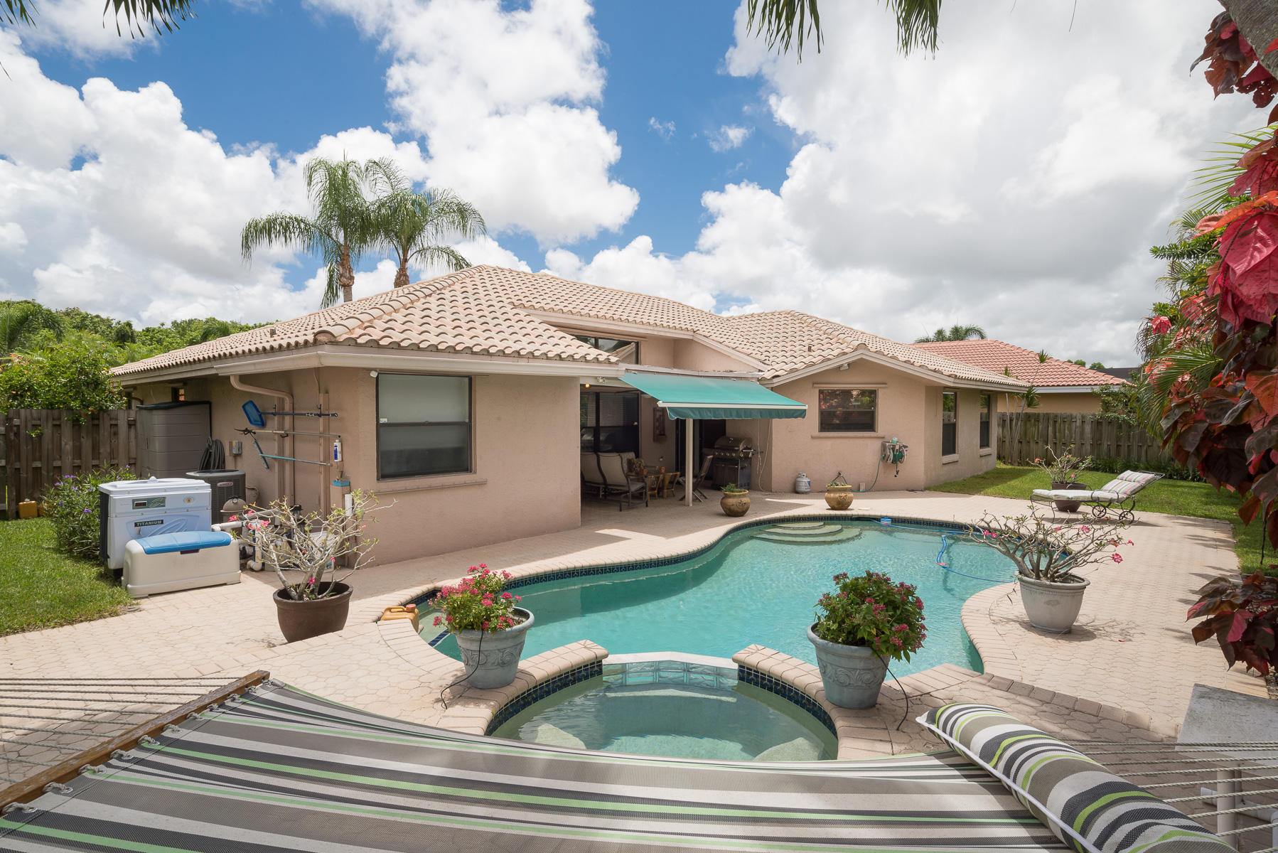 OWNER MOTIVATED...Don't miss this home in Boca's hidden secret.. Estates of Boca Lyons..Spacious single family home has 3 bedrooms plus den/4th bedroom.2 1/2 baths...portion of two car garage has been converted into den/4th bedroom. Heated pool w/ raised hot tub.Split bdrm plan. Home is wired for a generator. Hurricane panels for all windows & hurricane garage door. Roof/2005. 2 newer a/c units. Home is wired w/ sec. system & 4 security cameras. Electric attic fans. Fenced backyard is private & spacious w/ nice landscaping. Enjoy your outdoor space w/ a covered patio & extend your covered space w/ a retractable awning. Estates of Boca Lyons is a pet friendly, child friendly, cul-de-sac community w/ a low HOA of $34 a month. Schools are some of Boca Raton's finest.
