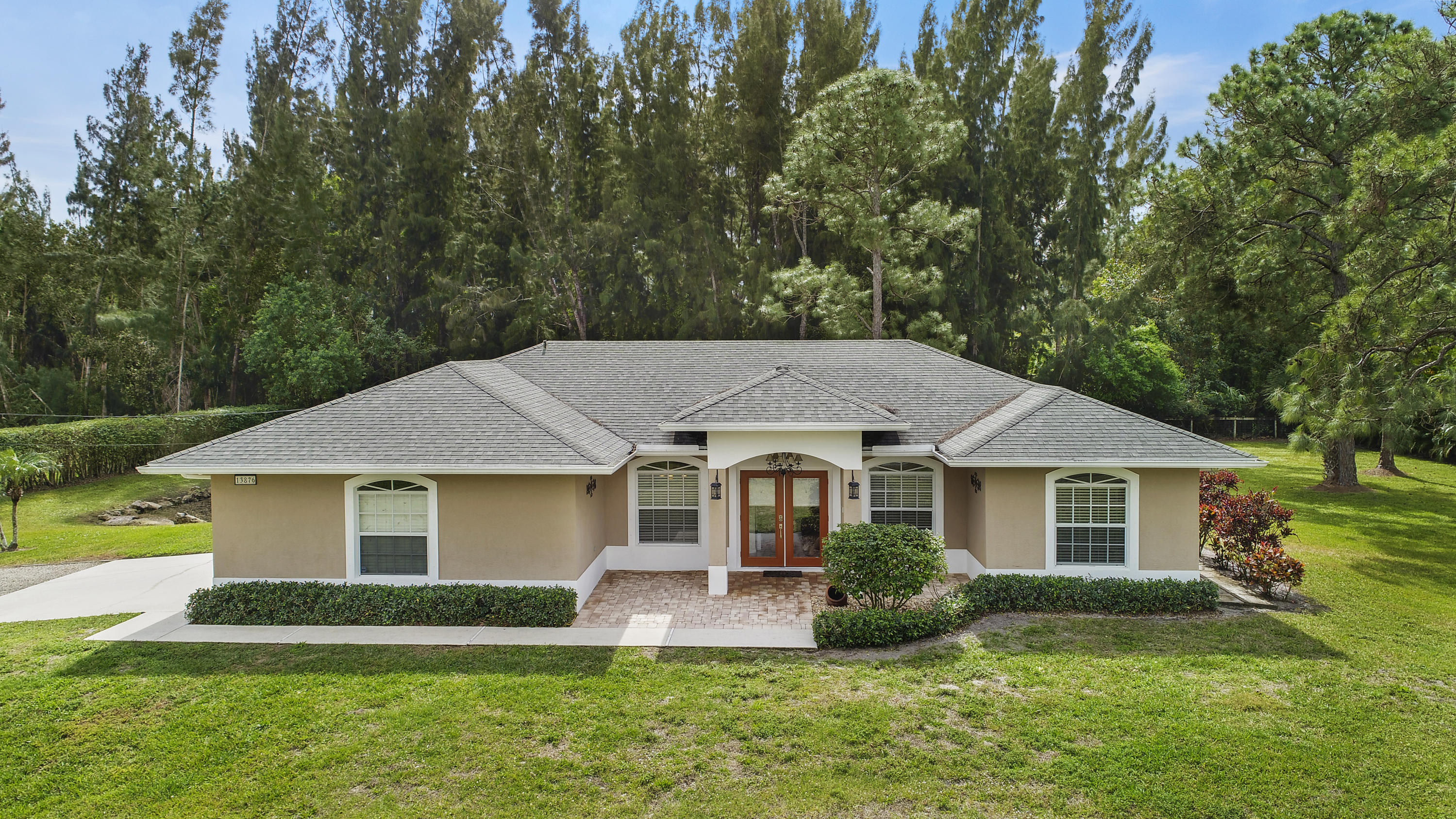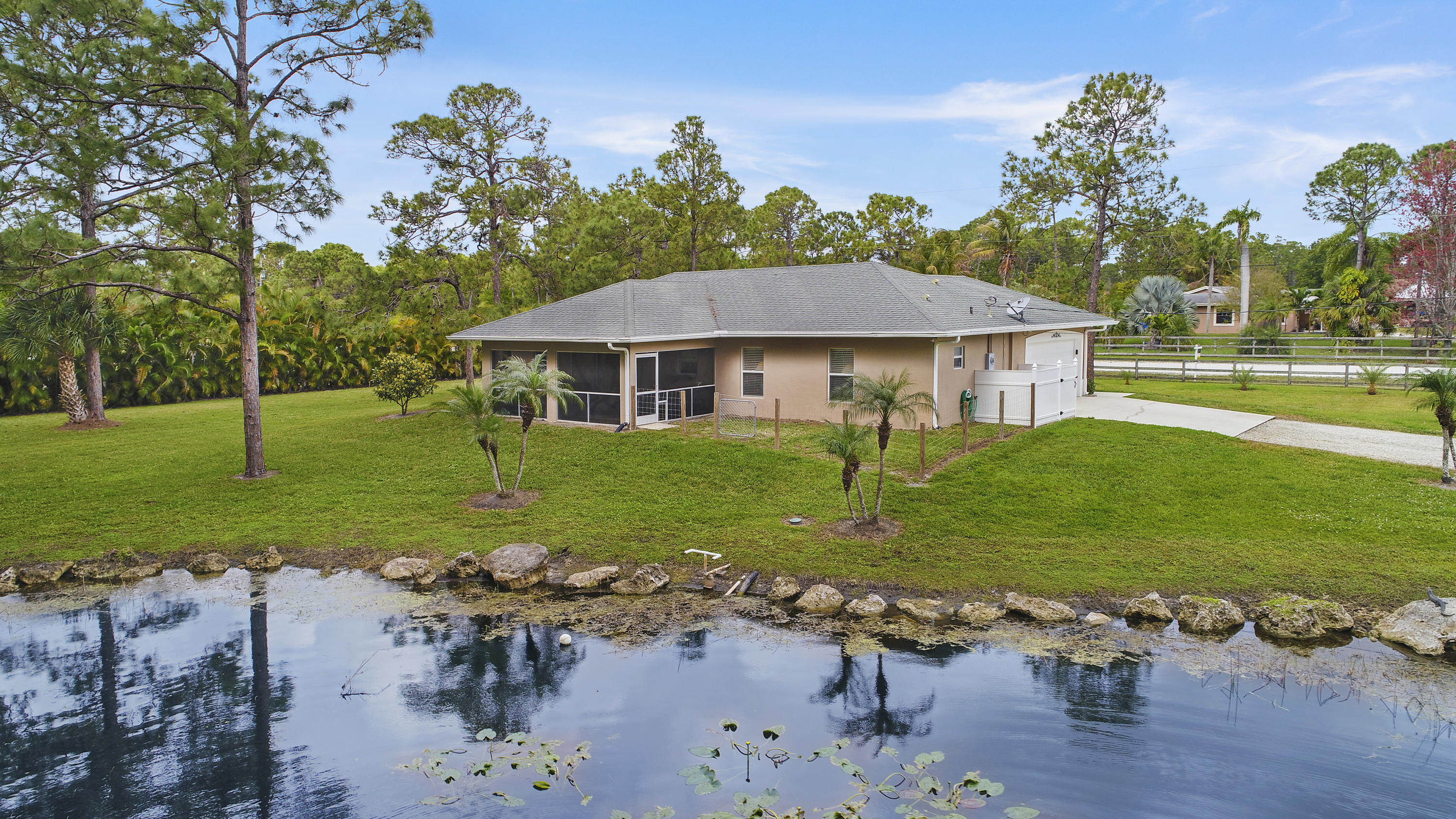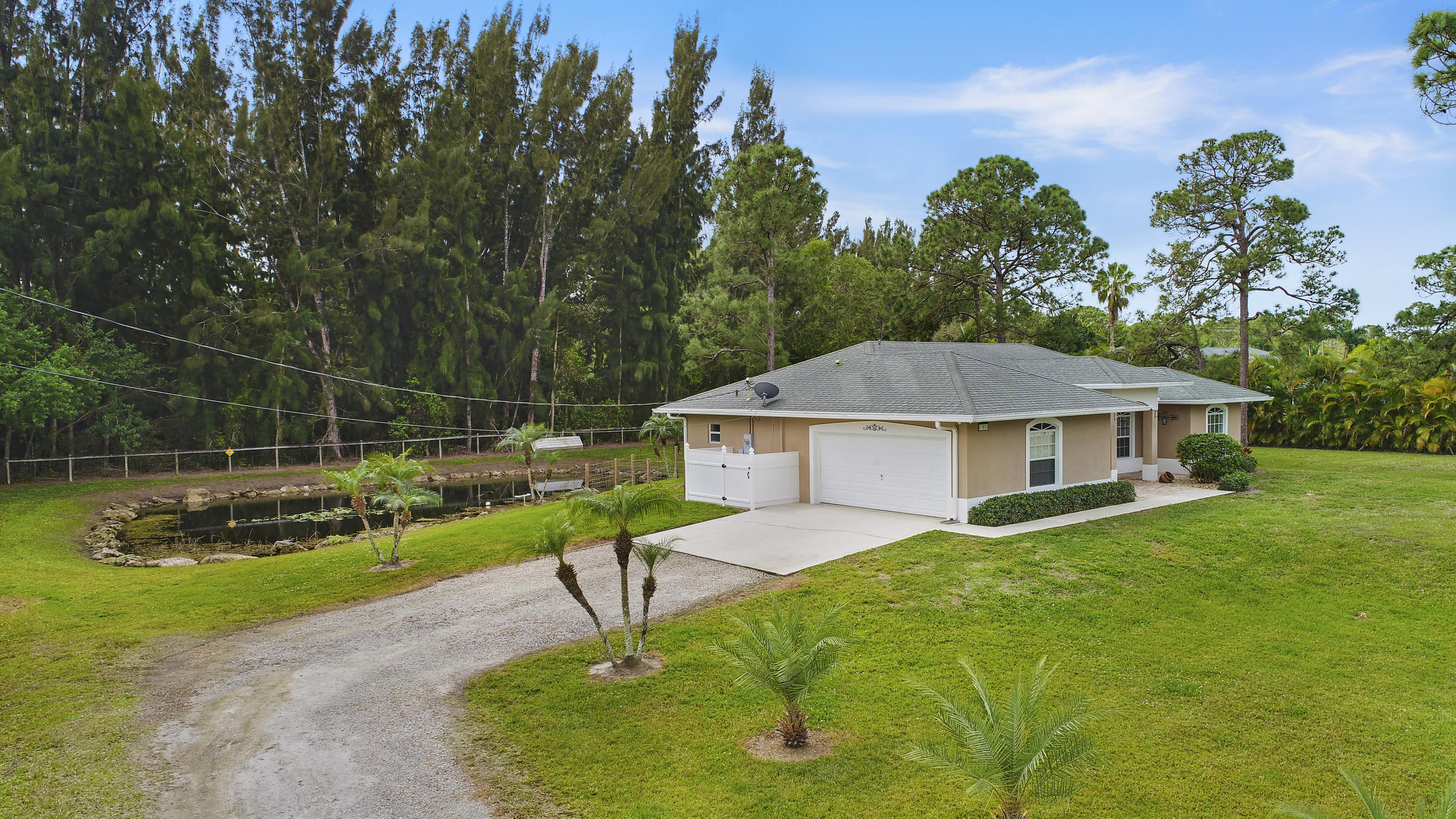 LOCATION! LOCATION! With a motivated seller! Quiet and serene property. Great CBS home on 1.16 acres in The Acreage. Property is completely fenced and lined with trees for ultimate backyard privacy. Screened patio and backyard pond. Inside this bright 3 bedroom, 2 bathroom, 2 car garage home is a split floor plan with tile and laminate flooring. Featuring a formal dining room, vaulted ceilings, walk-in master closet, stainless steel appliances, water softner system, pantry, and newer A/C. Close to schools and grocery stores.