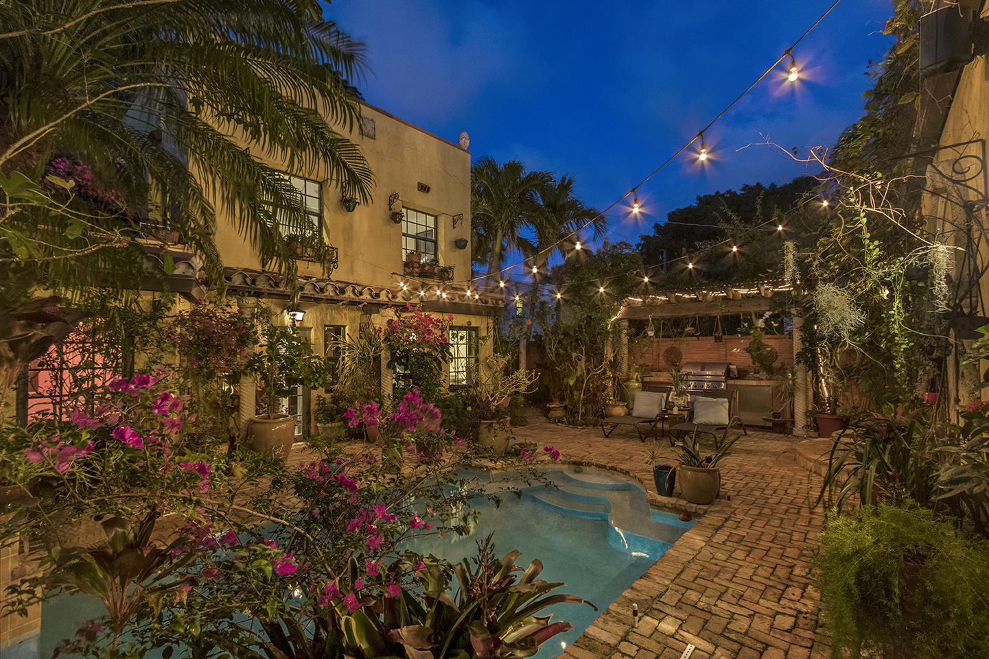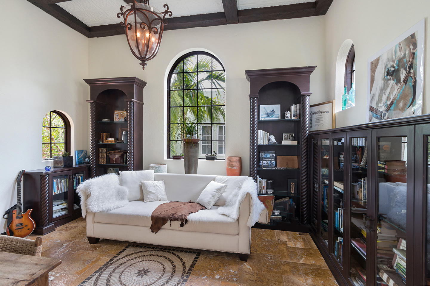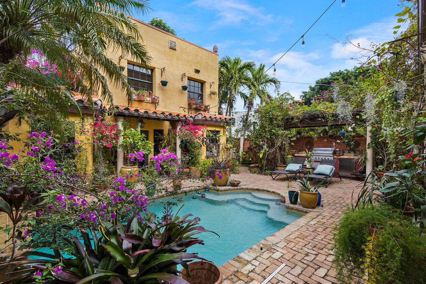This magnificent Tuscan inspired Flamingo Park home boasts 3 generous sized bedrooms in the main house and 2 separate apartments in the detached guest house separated by a lushly landscaped pool oasis replete with outdoor kitchen and shower. The grand master bedroom features 15' high ceilings, an enormous walk-in closet/dressing room, comfortable sitting area and sprawling bathroom with luxurious whirlpool spa tub, double sinks and an oversized glass enclosed shower. The two guest bedrooms located on the ground offer excellent closet space and beautiful garden views. The home boasts many original features including the Alcazar coat of arms, several fireplaces, crown molding and a charming master bedroom terrace over looking the pool.