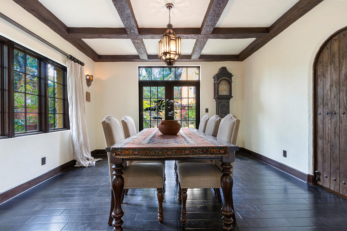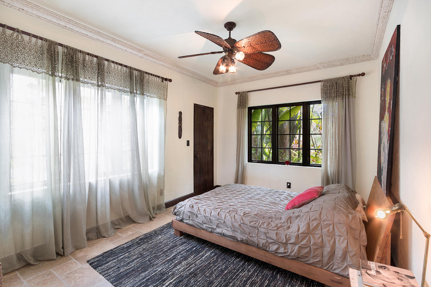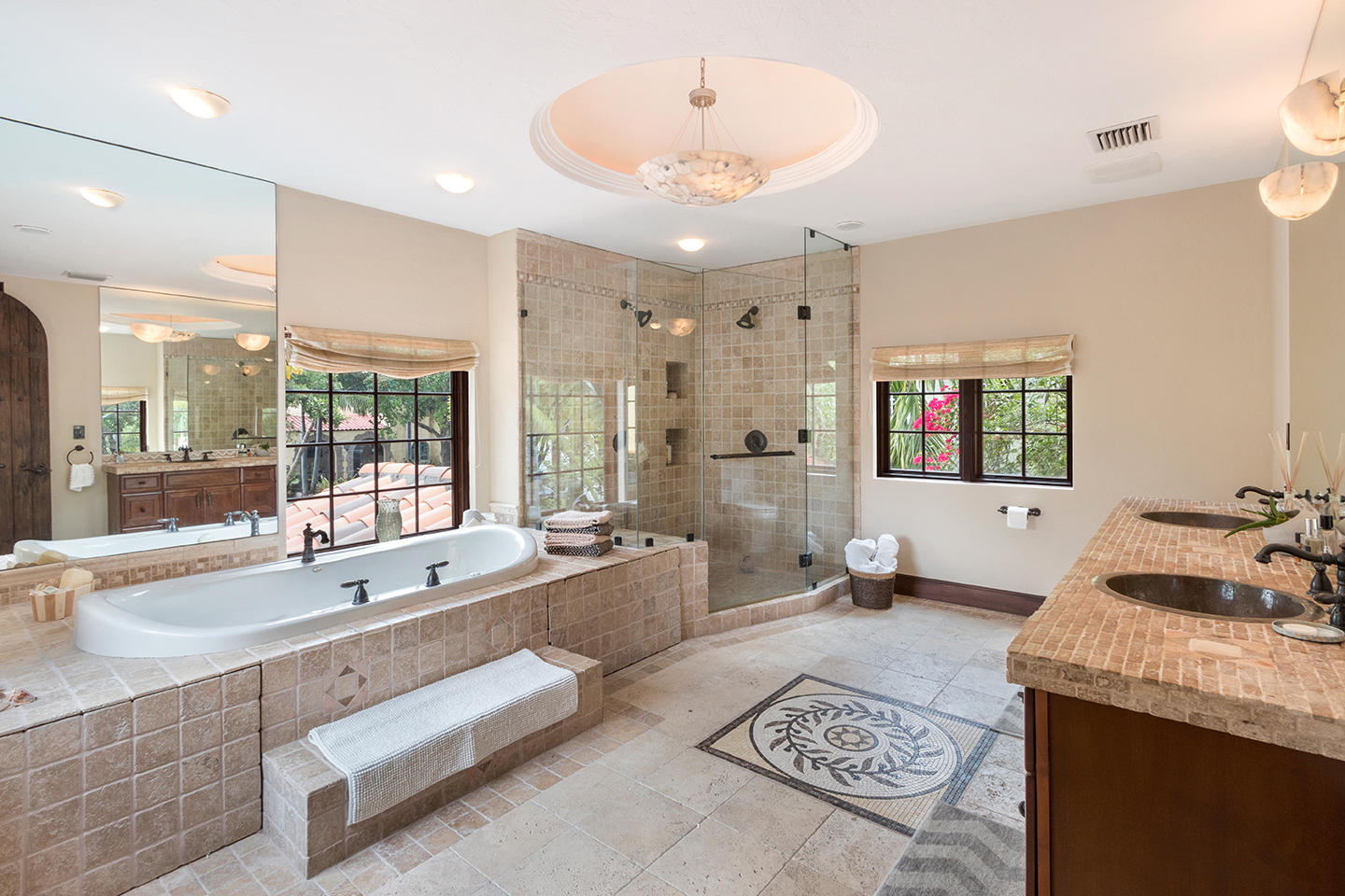 This magnificent Tuscan inspired Flamingo Park home boasts 3 generous sized bedrooms in the main house and 2 separate apartments in the detached guest house separated by a lushly landscaped pool oasis replete with outdoor kitchen and shower. The grand master bedroom features 15' high ceilings, an enormous walk-in closet/dressing room, comfortable sitting area and sprawling bathroom with luxurious whirlpool spa tub, double sinks and an oversized glass enclosed shower. The two guest bedrooms located on the ground offer excellent closet space and beautiful garden views. The home boasts many original features including the Alcazar coat of arms, several fireplaces, crown molding and a charming master bedroom terrace over looking the pool.