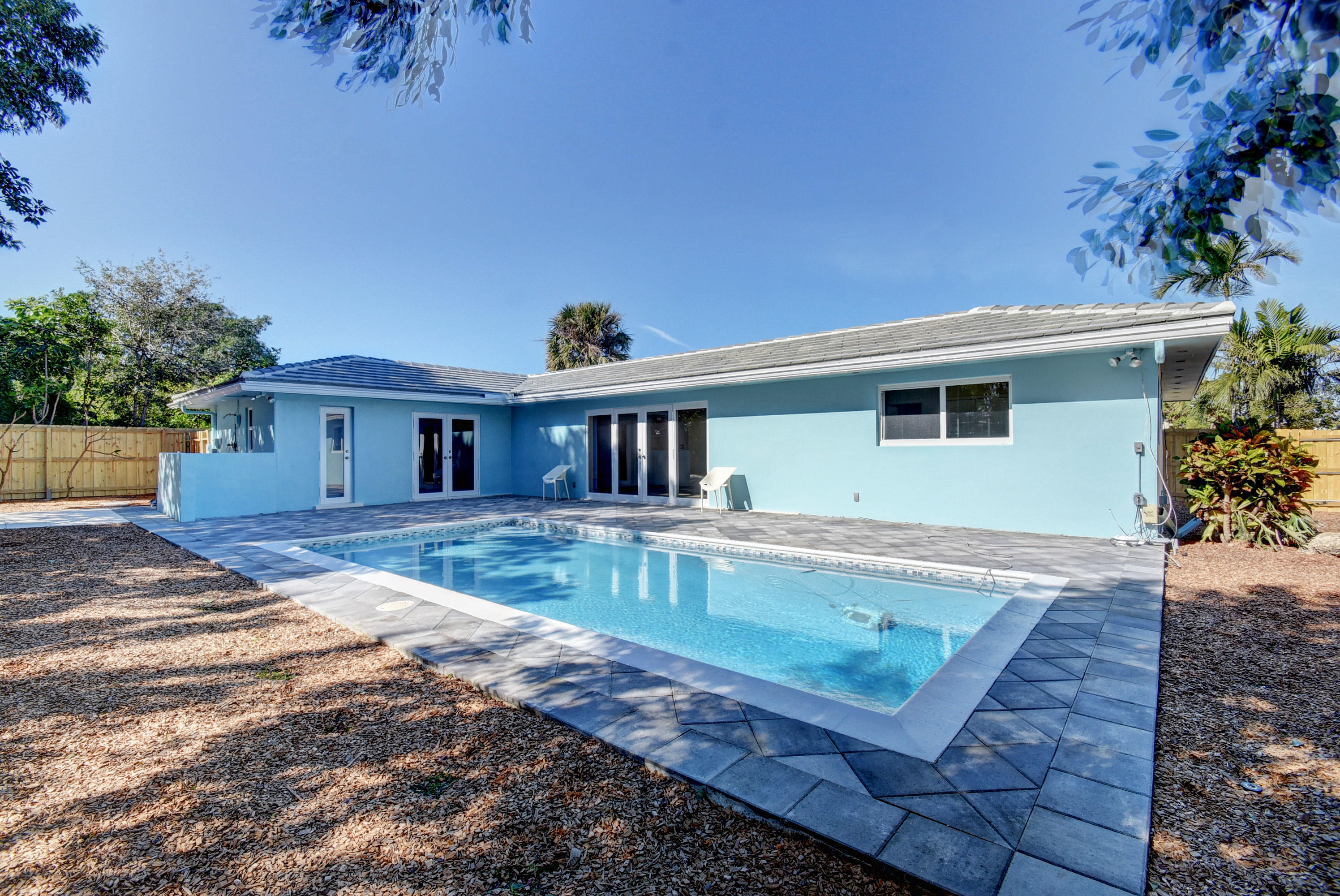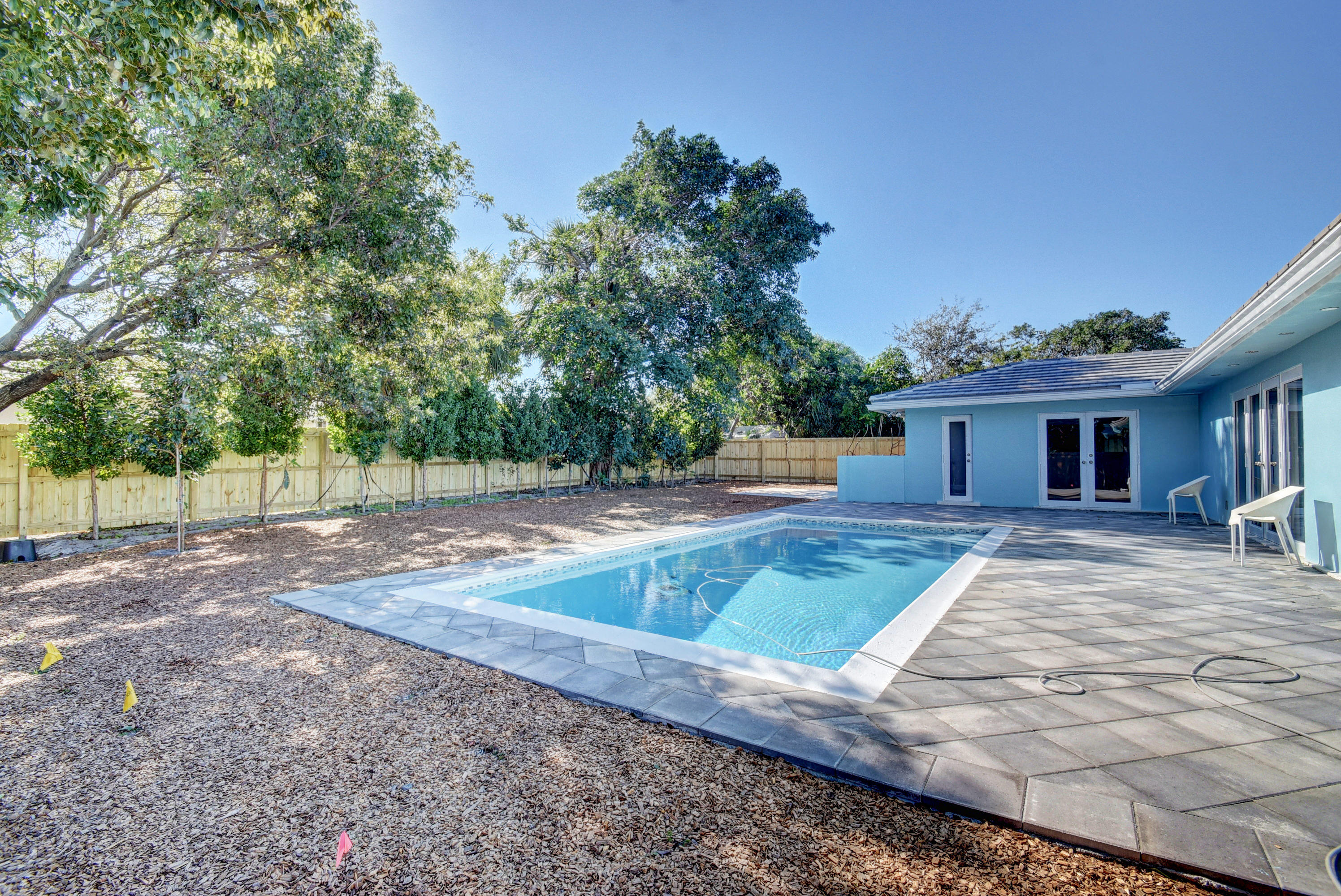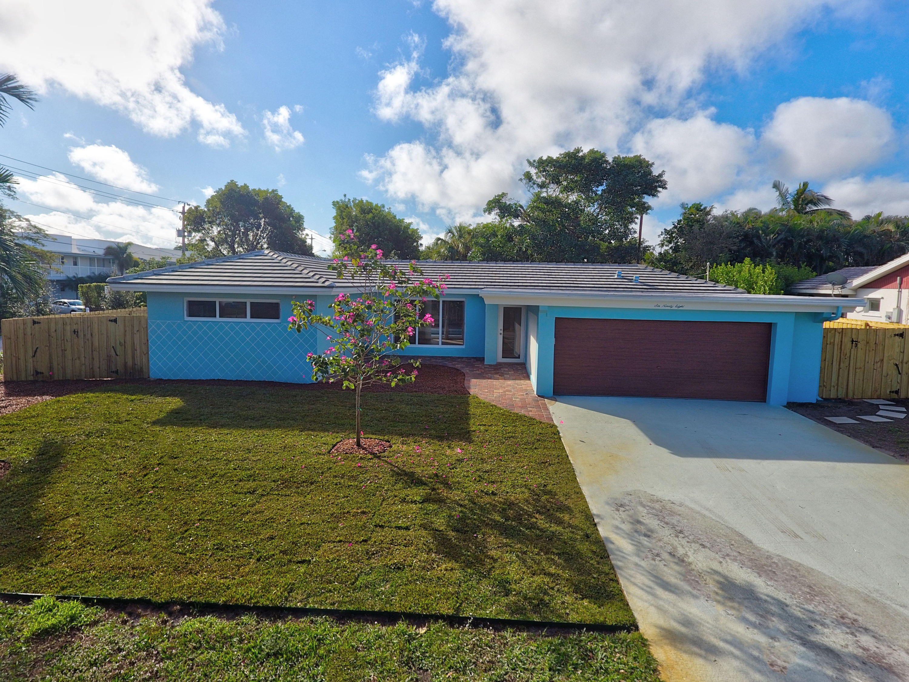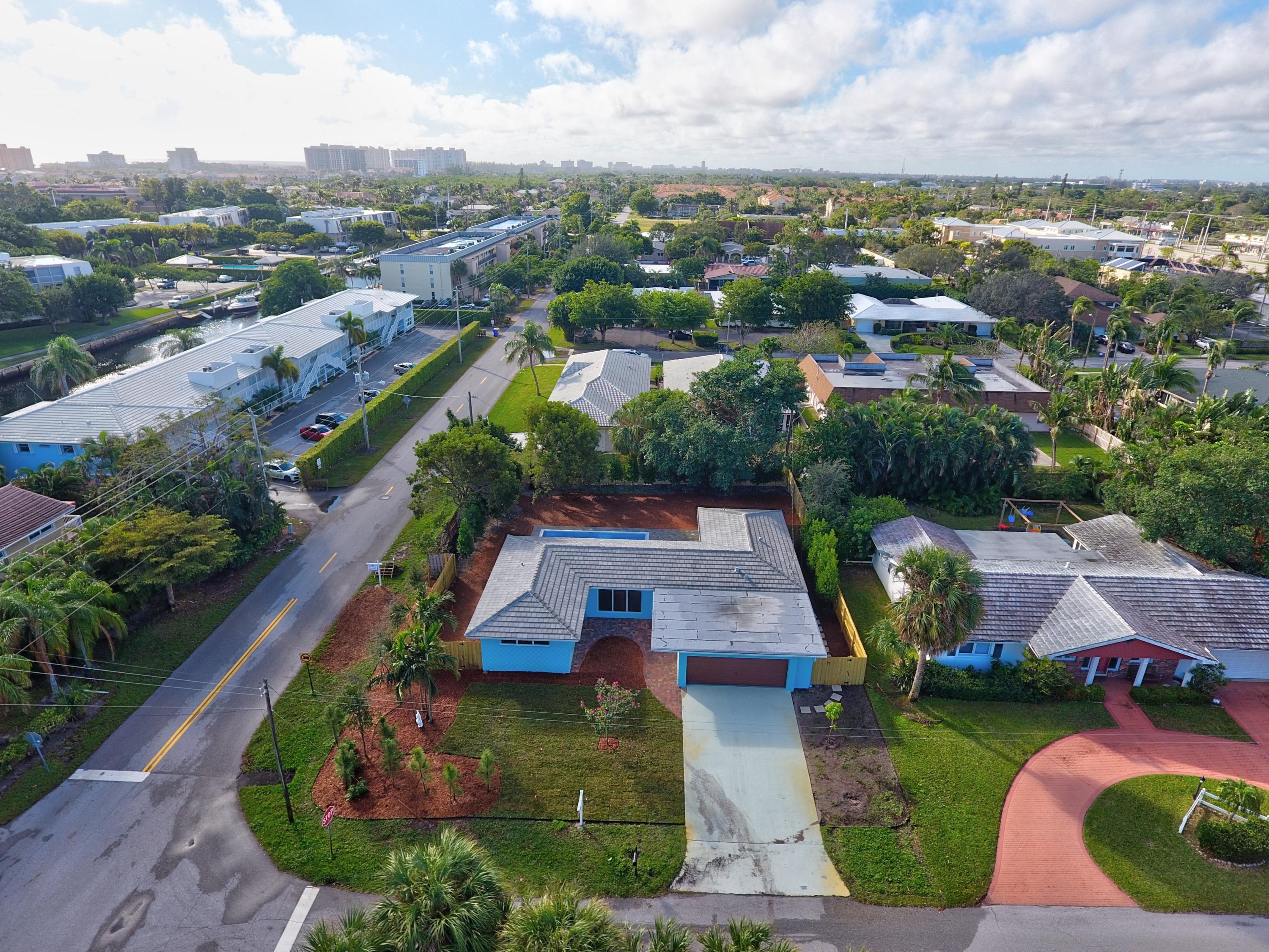 BEACH access only a 6 minute drive from this beautiful renovated home. Rare to find in South Florida, double (1/4 acre) lot - EAST side of Federal Hwy - Large saltwater pool - with NO H.O.A. restrictions or rules. Quick access to I-95, Atlantic Ave in Delray or Mizner Park in Boca. This stunning home upgraded w everything new or rebuilt New flooring, NEW duct-work, AC, Hot-water Heater, custom sprinklers run off well water saves $, custom kitchen with high end soft close cabinetry, and gorgeous counters and tile back-splash, NEW roof, NEW Impact windows, Impact french doors with custom Phantom retractable screens, garage door w/ oversized 2.5 car space. This home boasts a split bedroom plan AND features thousands of dollars in new landscaping & walkways, privacy in multi million $ area