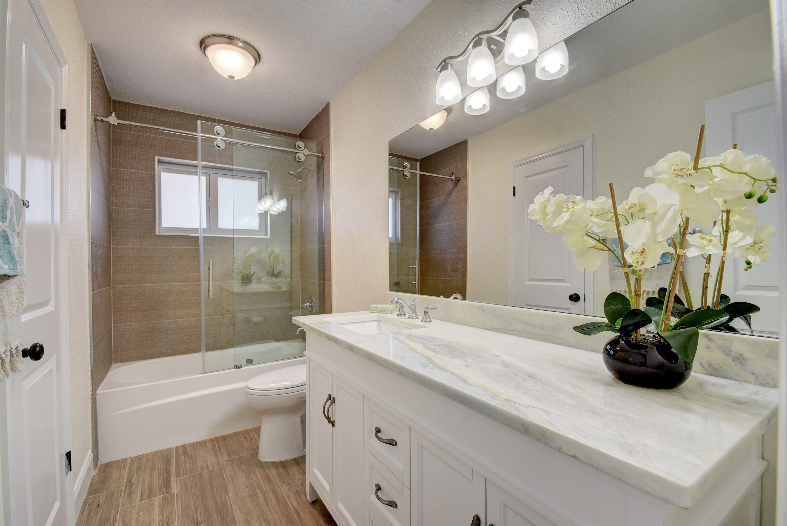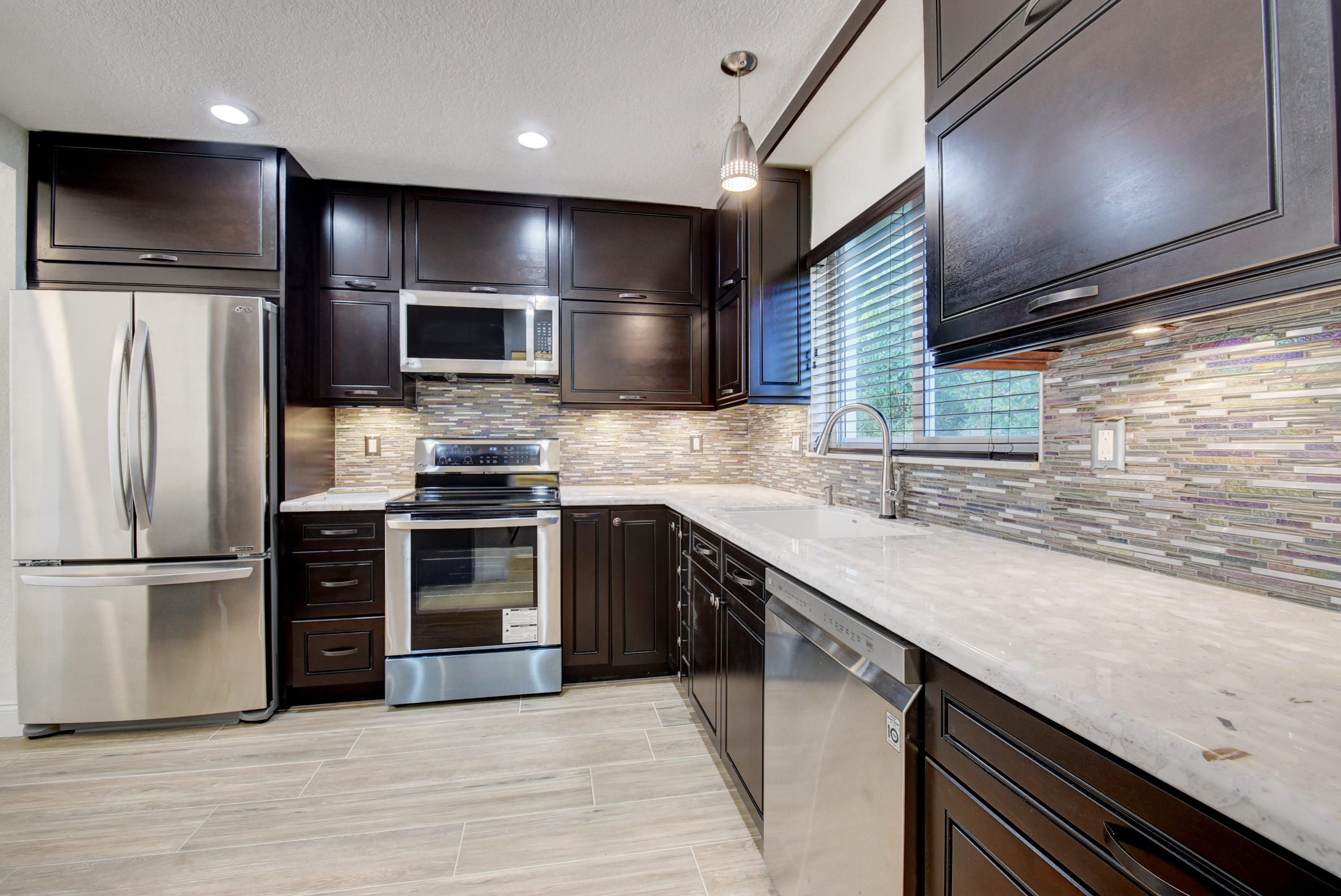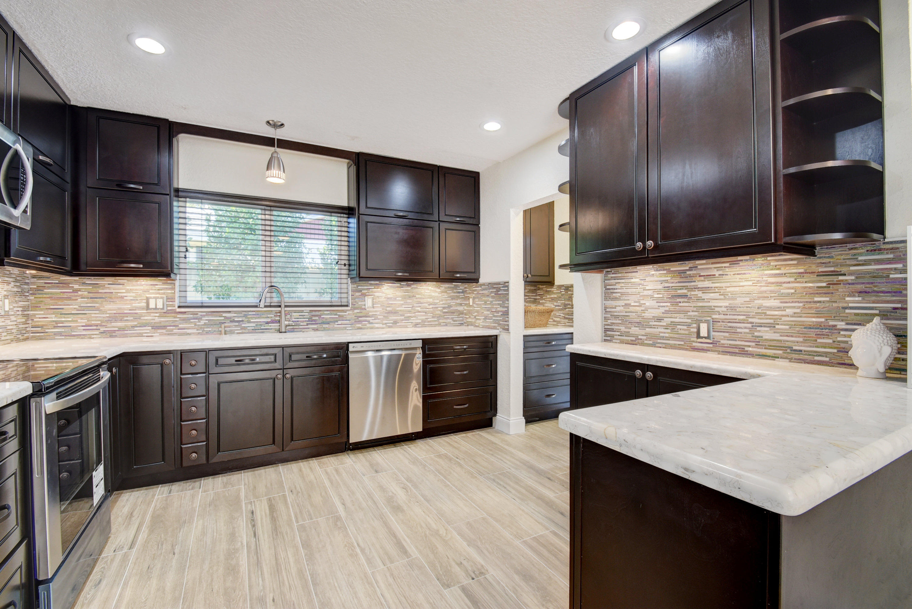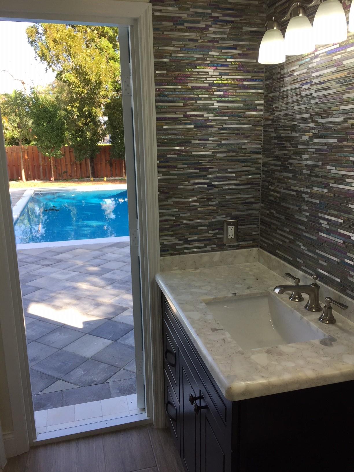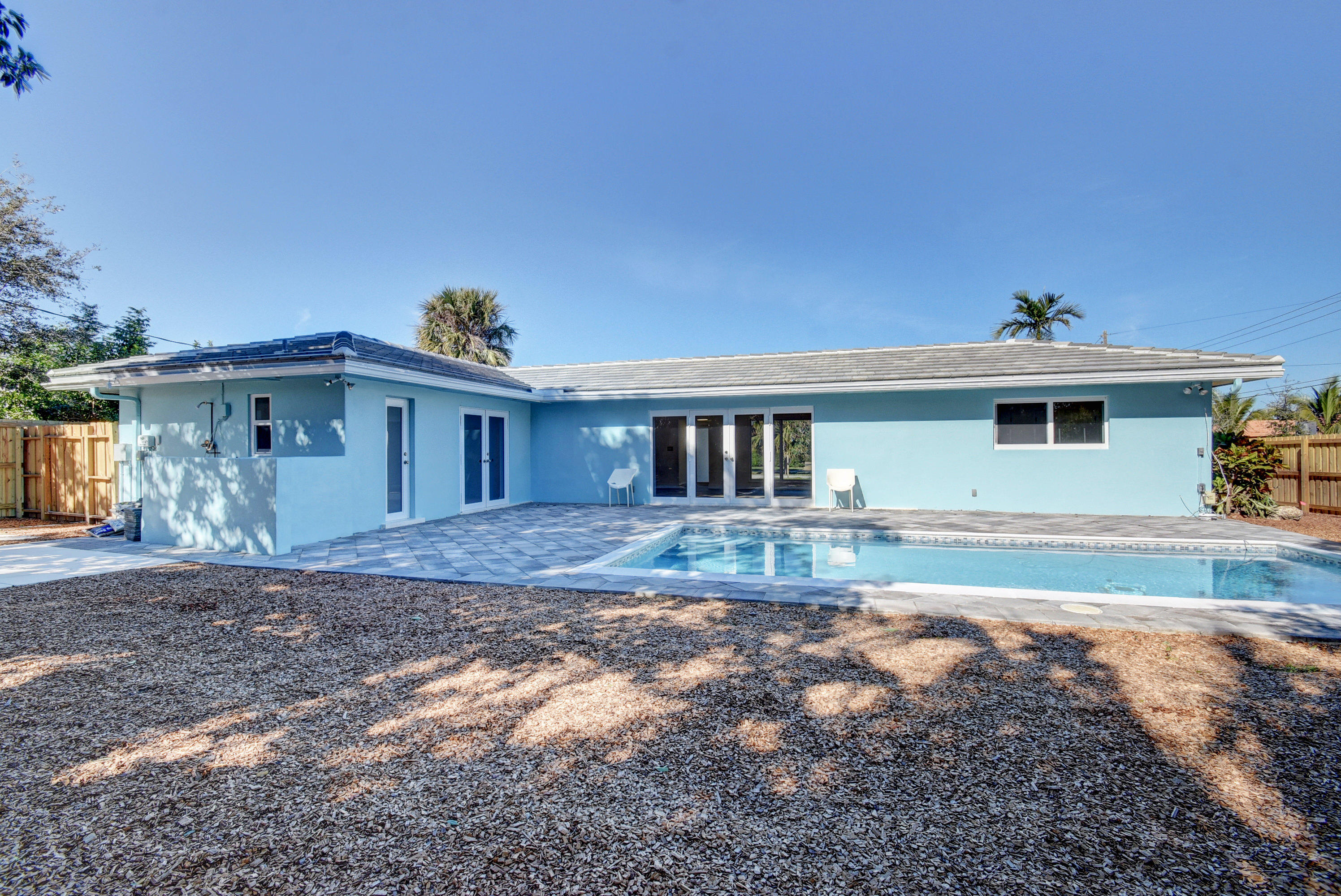 BEACH access only a 6 minute drive from this beautiful renovated home. Rare to find in South Florida, double (1/4 acre) lot - EAST side of Federal Hwy - Large saltwater pool - with NO H.O.A. restrictions or rules. Quick access to I-95, Atlantic Ave in Delray or Mizner Park in Boca. This stunning home upgraded w everything new or rebuilt New flooring, NEW duct-work, AC, Hot-water Heater, custom sprinklers run off well water saves $, custom kitchen with high end soft close cabinetry, and gorgeous counters and tile back-splash, NEW roof, NEW Impact windows, Impact french doors with custom Phantom retractable screens, garage door w/ oversized 2.5 car space. This home boasts a split bedroom plan AND features thousands of dollars in new landscaping & walkways, privacy in multi million $ area