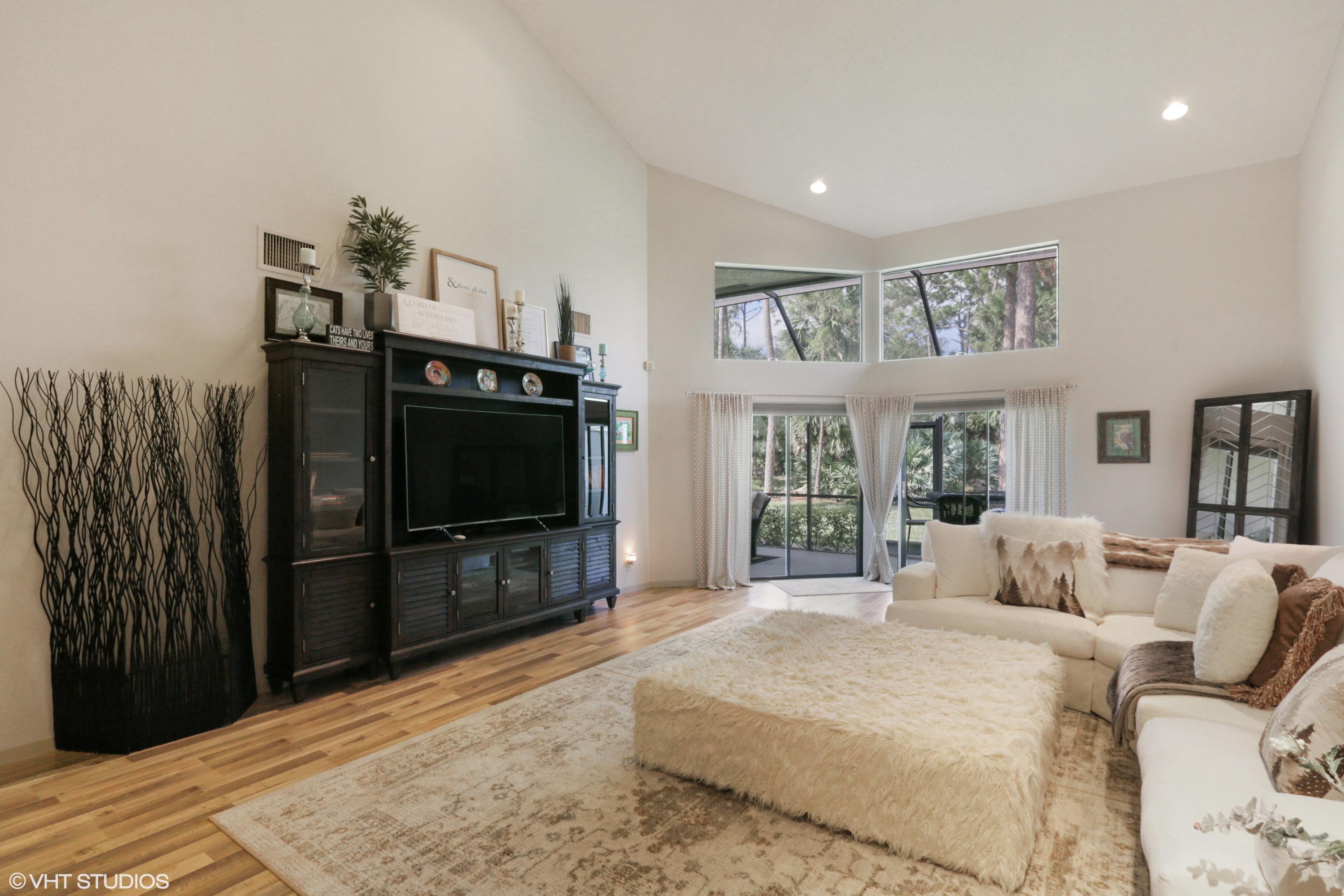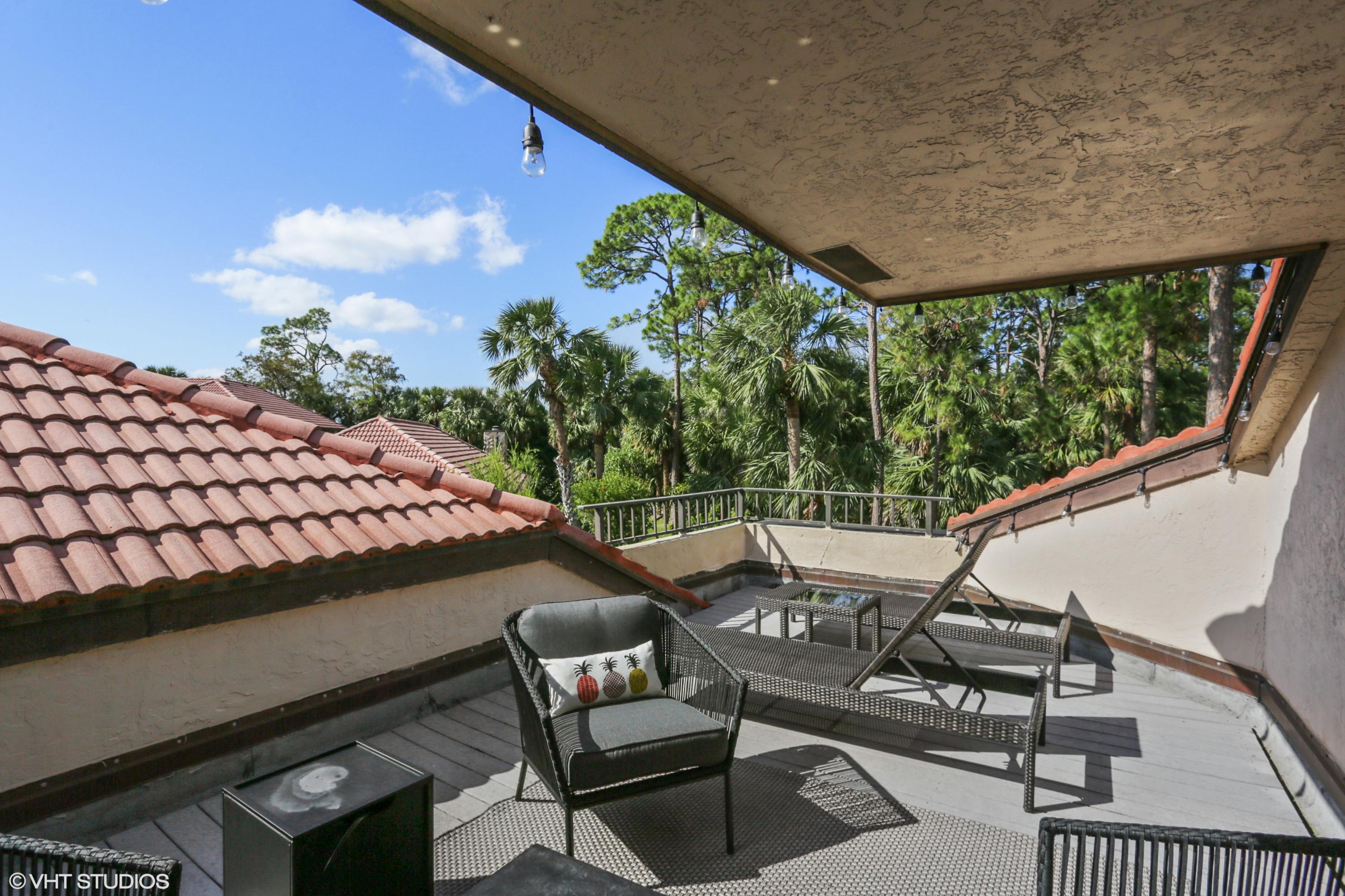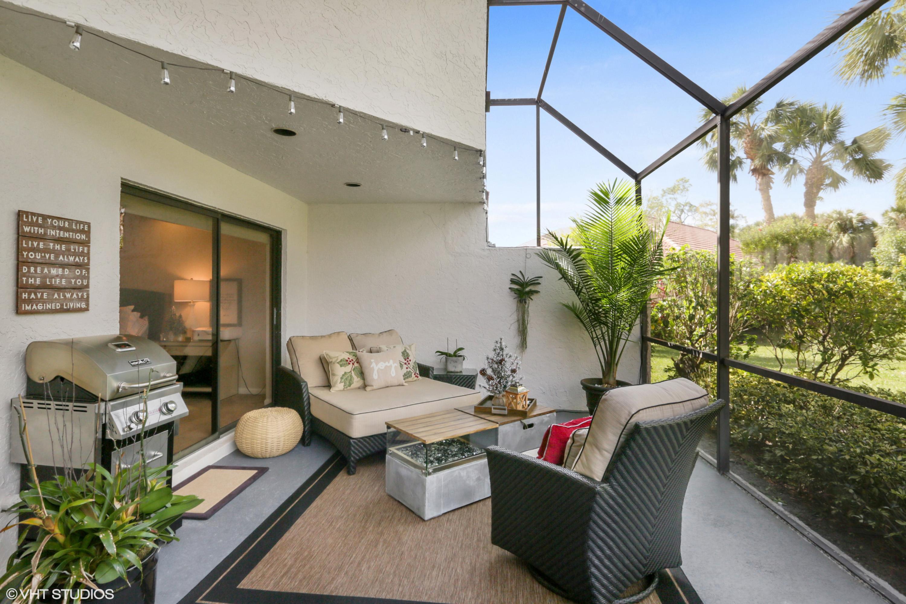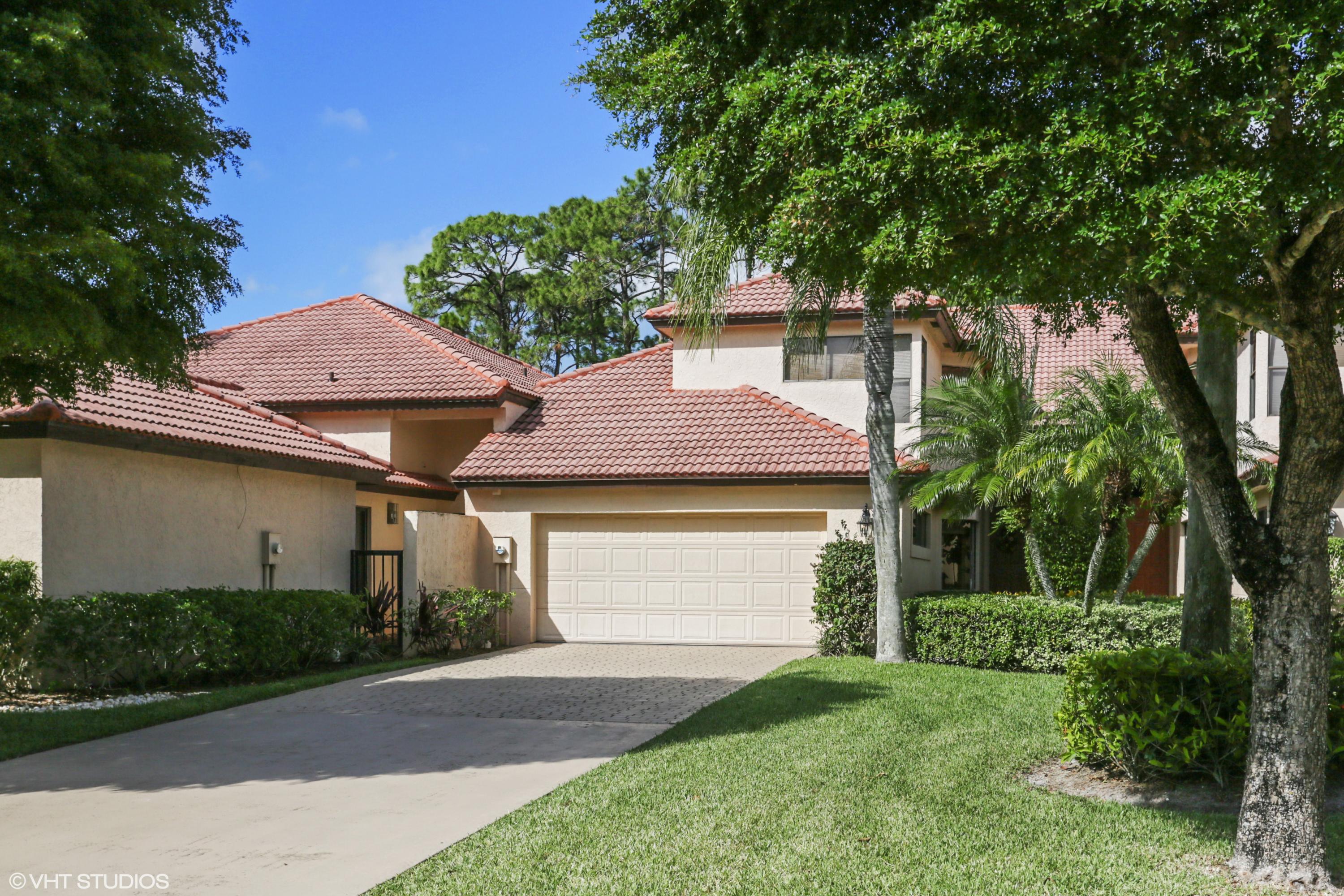 Spacious Breakers West townhouse with 3BR, 2.5 BA, 2-car garage and amazing privacy. Recently updated with new kitchen, flooring, & baths in popular grey and white palette. Dramatic Great Room with sliding doors & transom windows above opens to screened patio overlooking open space, towering palms and pines. 1st floor Master suite has tray ceiling, sliding doors to patio, His and Her closets. Updated Master Bath with white cabinetry, quartz counters and chrome plumbing fixtures. 2 Guest BR upstairs share updated bath. Bedroom 2 opens to rooftop deck. HOA includes landscaping, security, alarm monitoring, basic cable, roof & exterior maintenance, and ext building insurance. Also avail for annual unfurn lease @ $3,200/mon. Breakers West has club memberships available but are NOT mandatory.