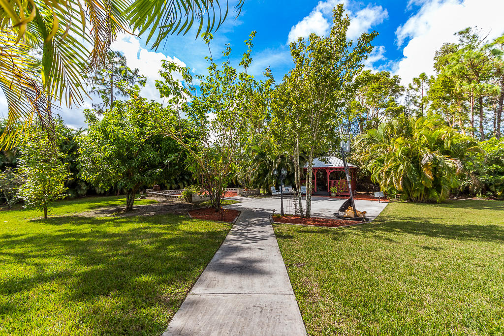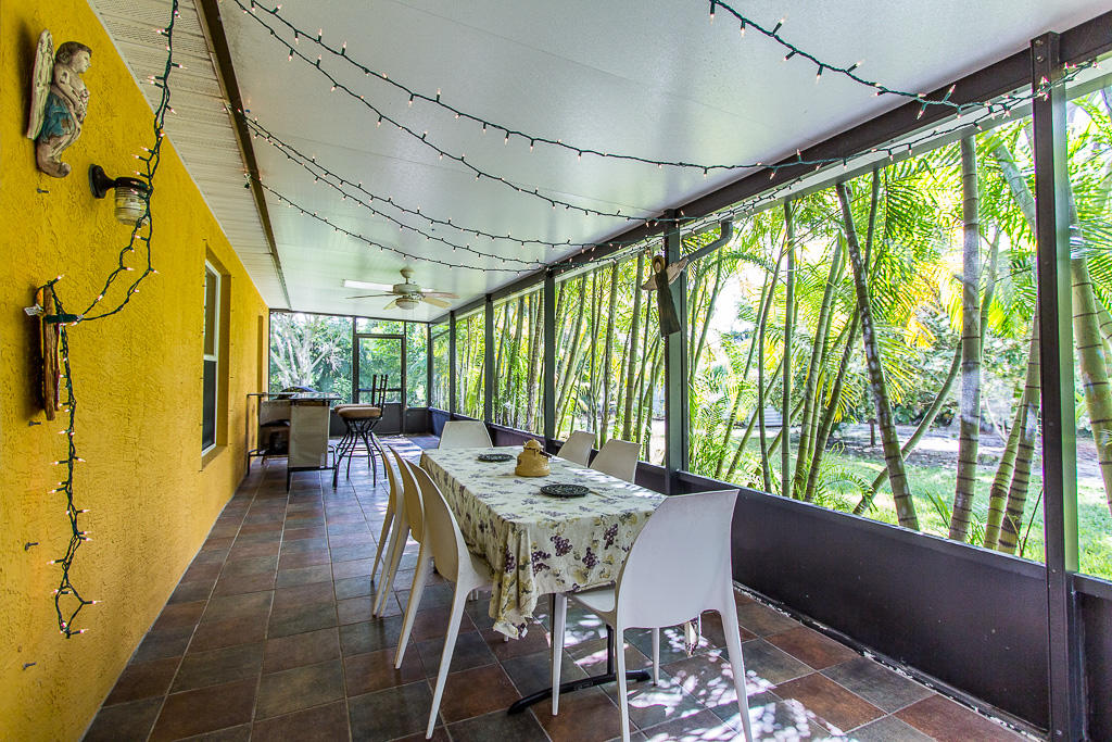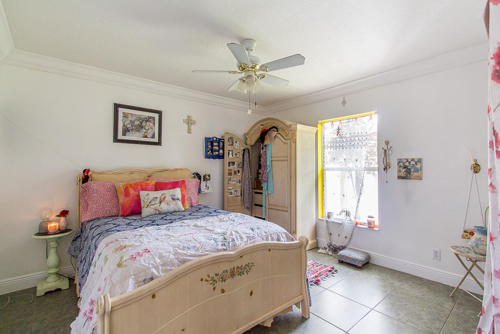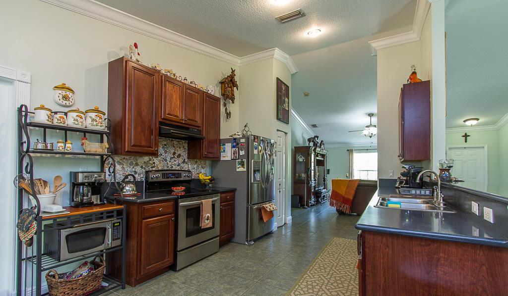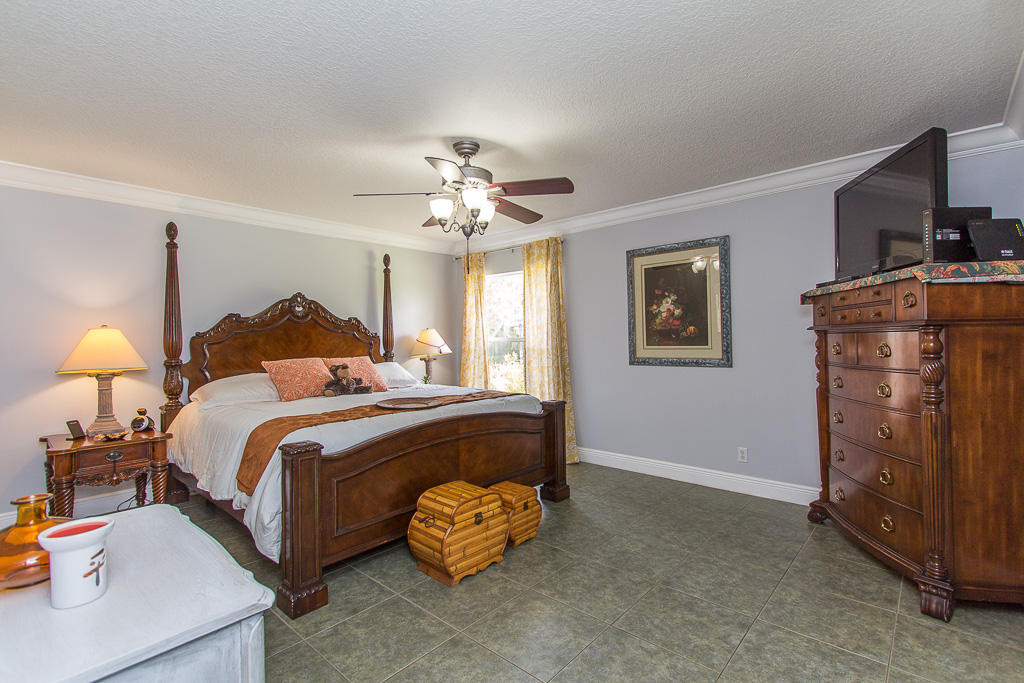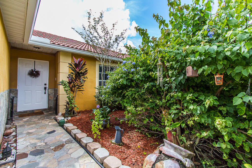 Absolutely amazing home with wonderful landscaping... on a paved road! Enjoy the gated approach to your home as you take in the barrel tile roof, lush privacy by the trees. Once you walk in, you will find tile and crown molding throughout the entire home! The kitchen bartop has river rock wall covering that ties in all of the colors as well as the stainless appliances, granite tops and wood cabinetry! The backyard with sprinkler system has a secluded and private patio and deck, or you can enjoy your covered and screened patio right from the main home. This is quiet, quaint charming living!