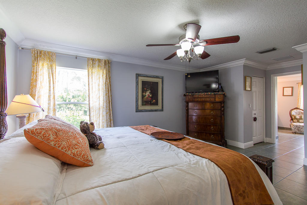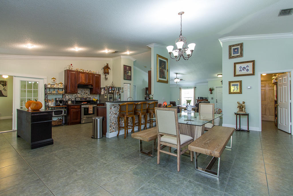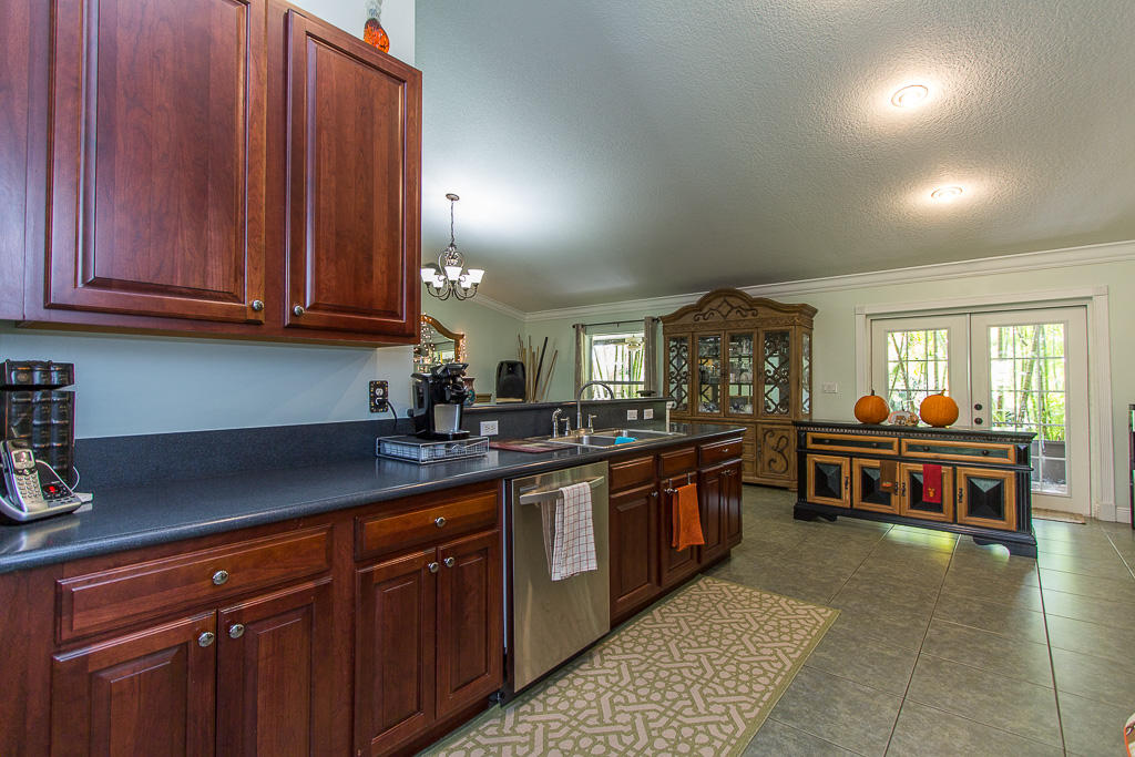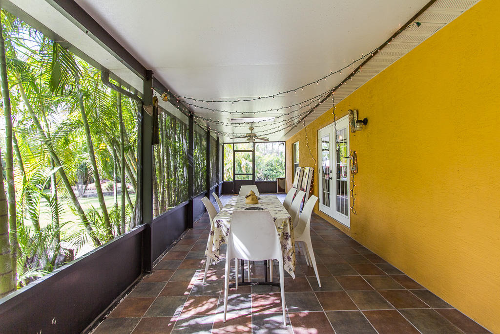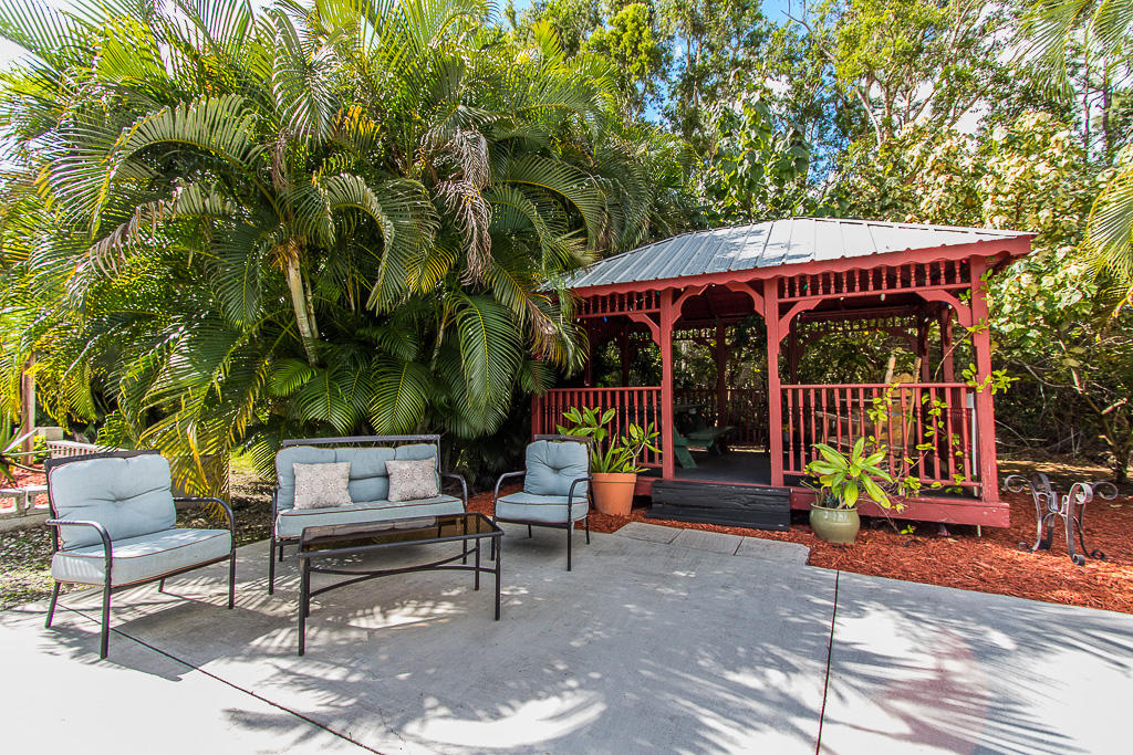 Absolutely amazing home with wonderful landscaping... on a paved road! Enjoy the gated approach to your home as you take in the barrel tile roof, lush privacy by the trees. Once you walk in, you will find tile and crown molding throughout the entire home! The kitchen bartop has river rock wall covering that ties in all of the colors as well as the stainless appliances, granite tops and wood cabinetry! The backyard with sprinkler system has a secluded and private patio and deck, or you can enjoy your covered and screened patio right from the main home. This is quiet, quaint charming living!