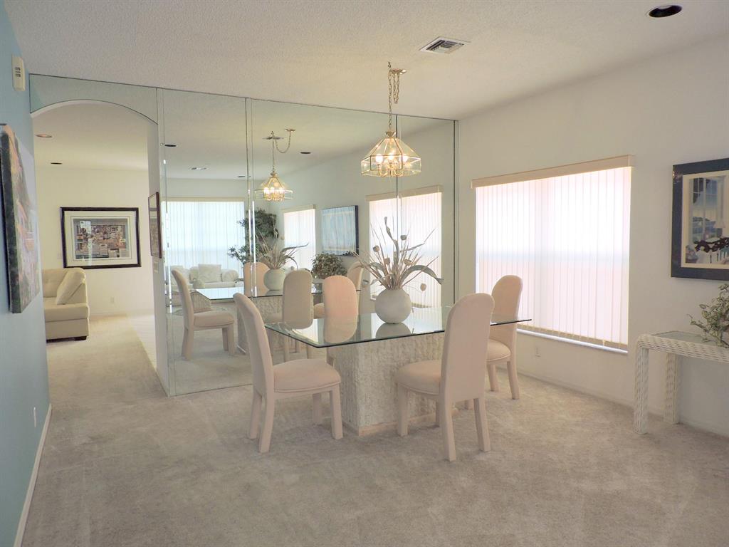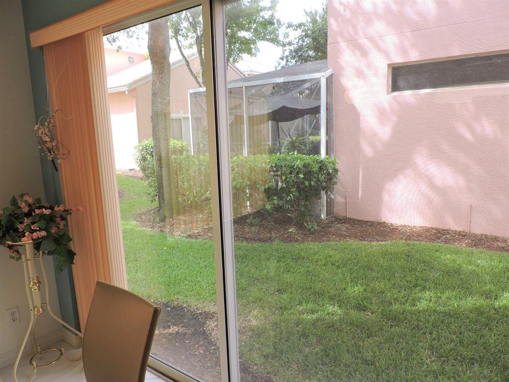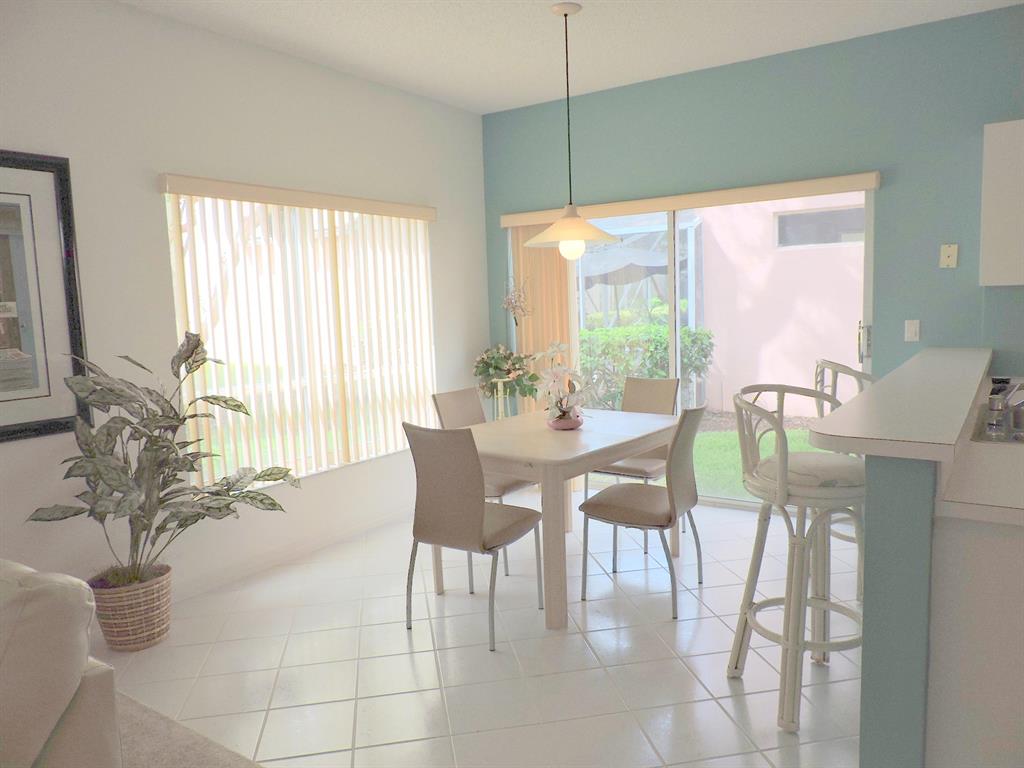 Lovely 4 bedroom 2 1/2 bath free standing condo w/ large family room off kitchen.Living ,dining ,kitchen ,laundry ,family & breakfast rooms on main floor + 1/2 bath + 1 car garage. 4 large bedrooms + 2 full bathrooms upstairs. Tranquil garden view from large screened patio. Short stroll to community pool. Boca Pointe is a Class A full service country club with many non-mandatory membership options , but not required.