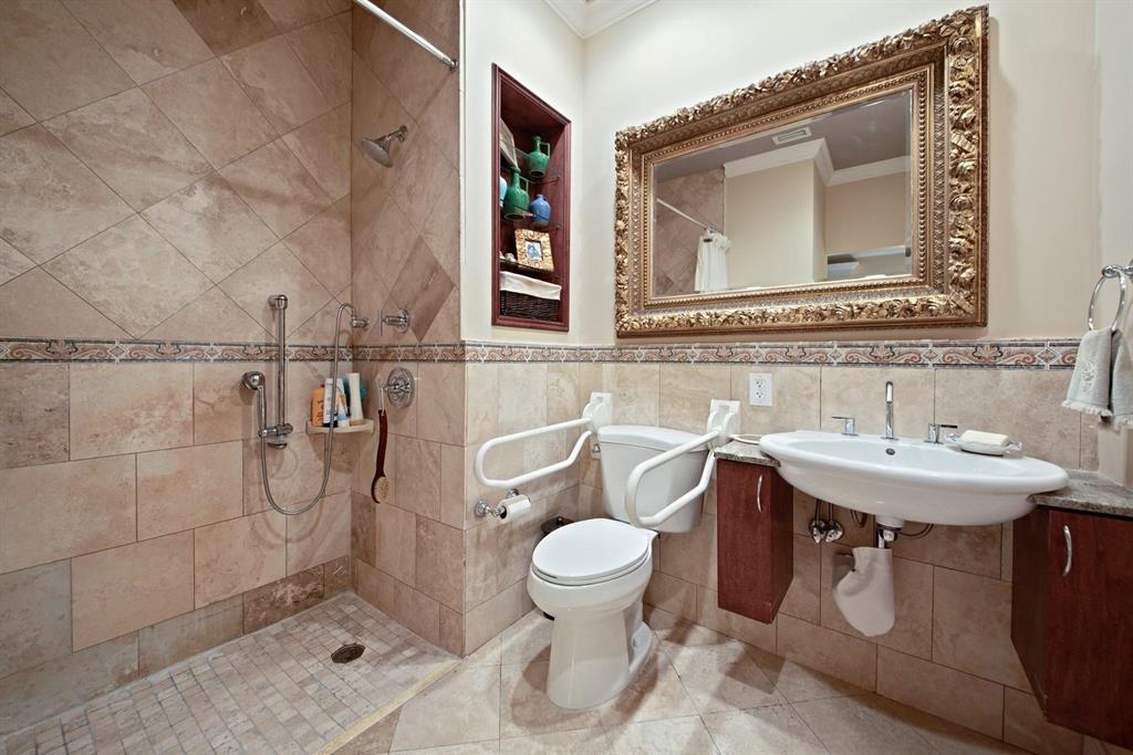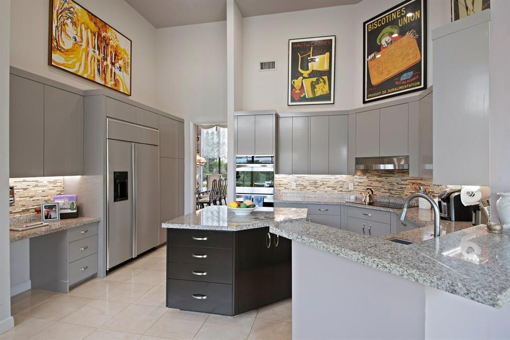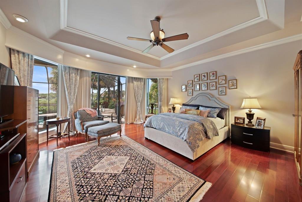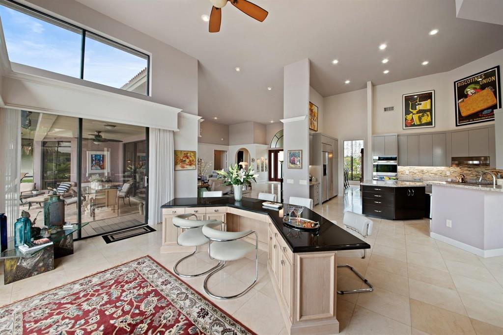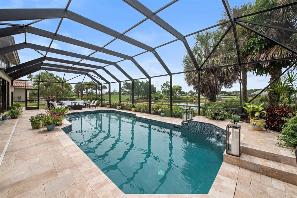 Magnificent leaded glass front doors open to reveal a spacious, open floorplan, volume ceilings and gorgeous views of the double lake lot. This meticulously-maintained 3-bedroom, 3.5 bath residence offers a new eat-in kitchen, gracious entertaining areas, marble and mahogany wood floors, a spacious master suite with 2 outfitted walk-in closets and large bathroom, and a handsome home office detailed with built-ins and granite-topped desk. The oversized salt water, heated pool is screened and is surrounded by a huge travertine deck ideal for outdoor entertaining.The entire home is handicap accessible, and all bedrooms are ensuite. This is a MUST SEE beauty!