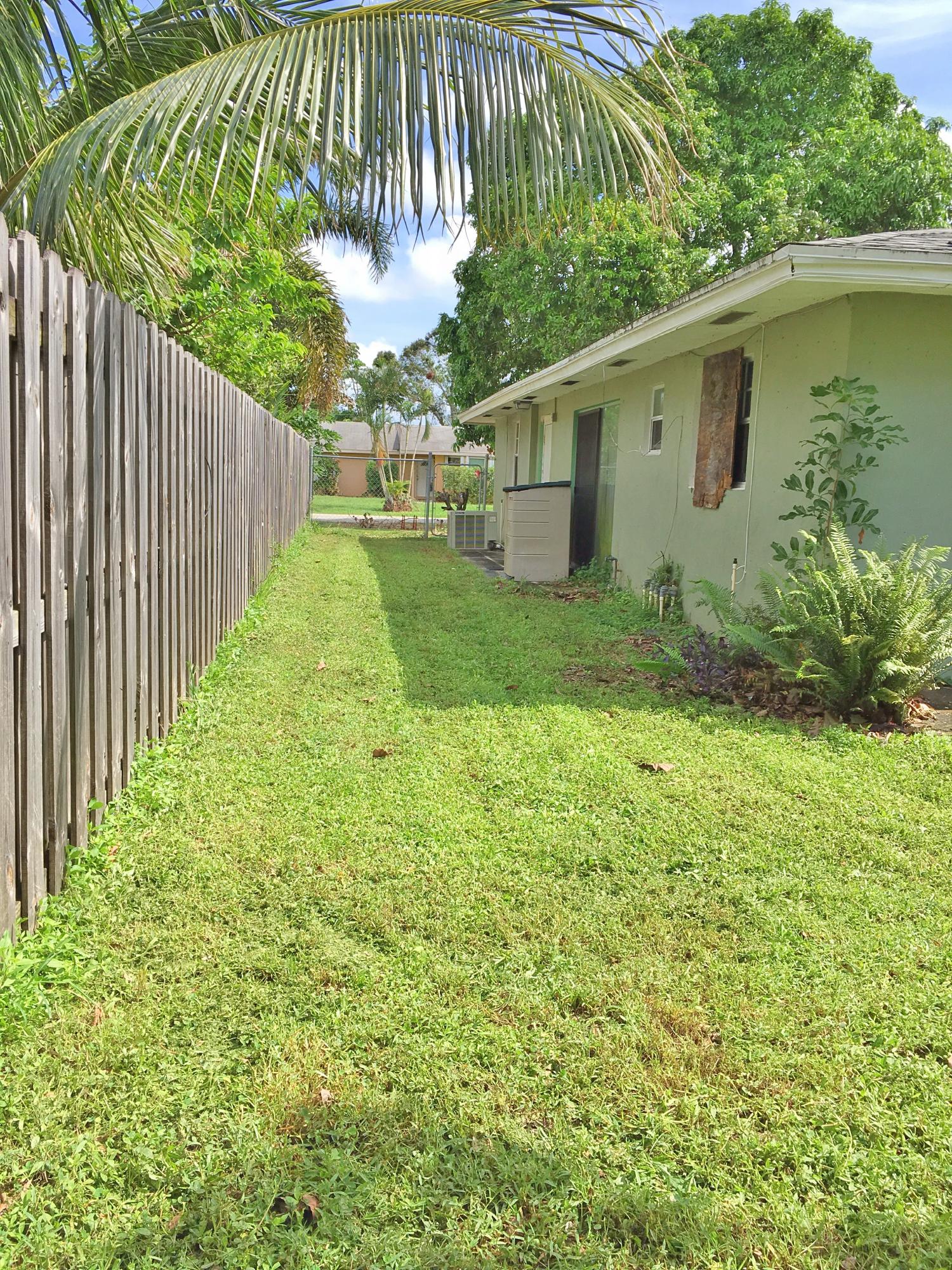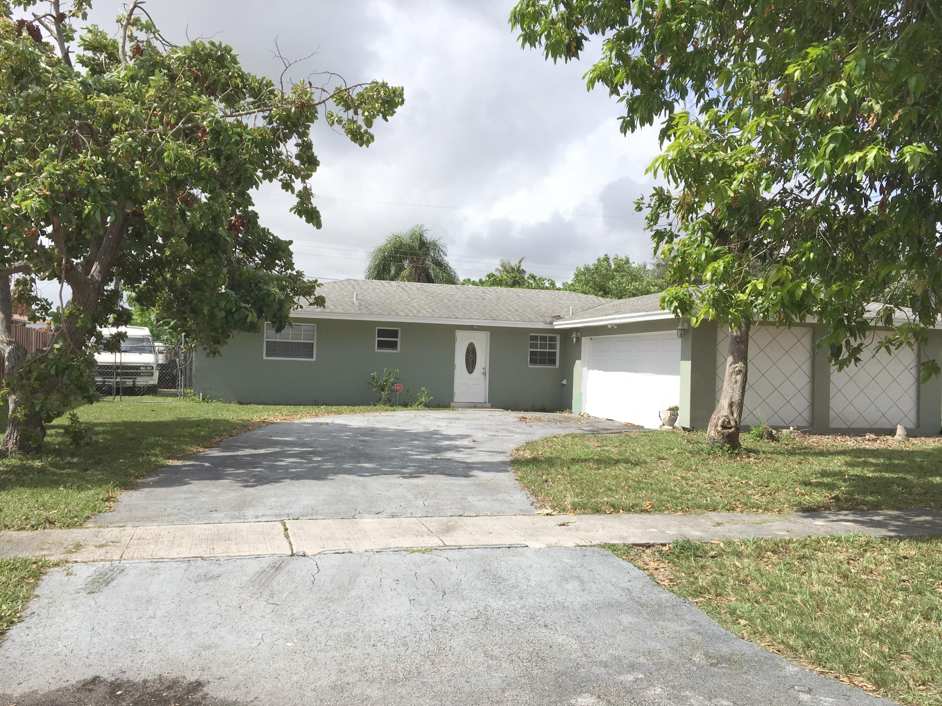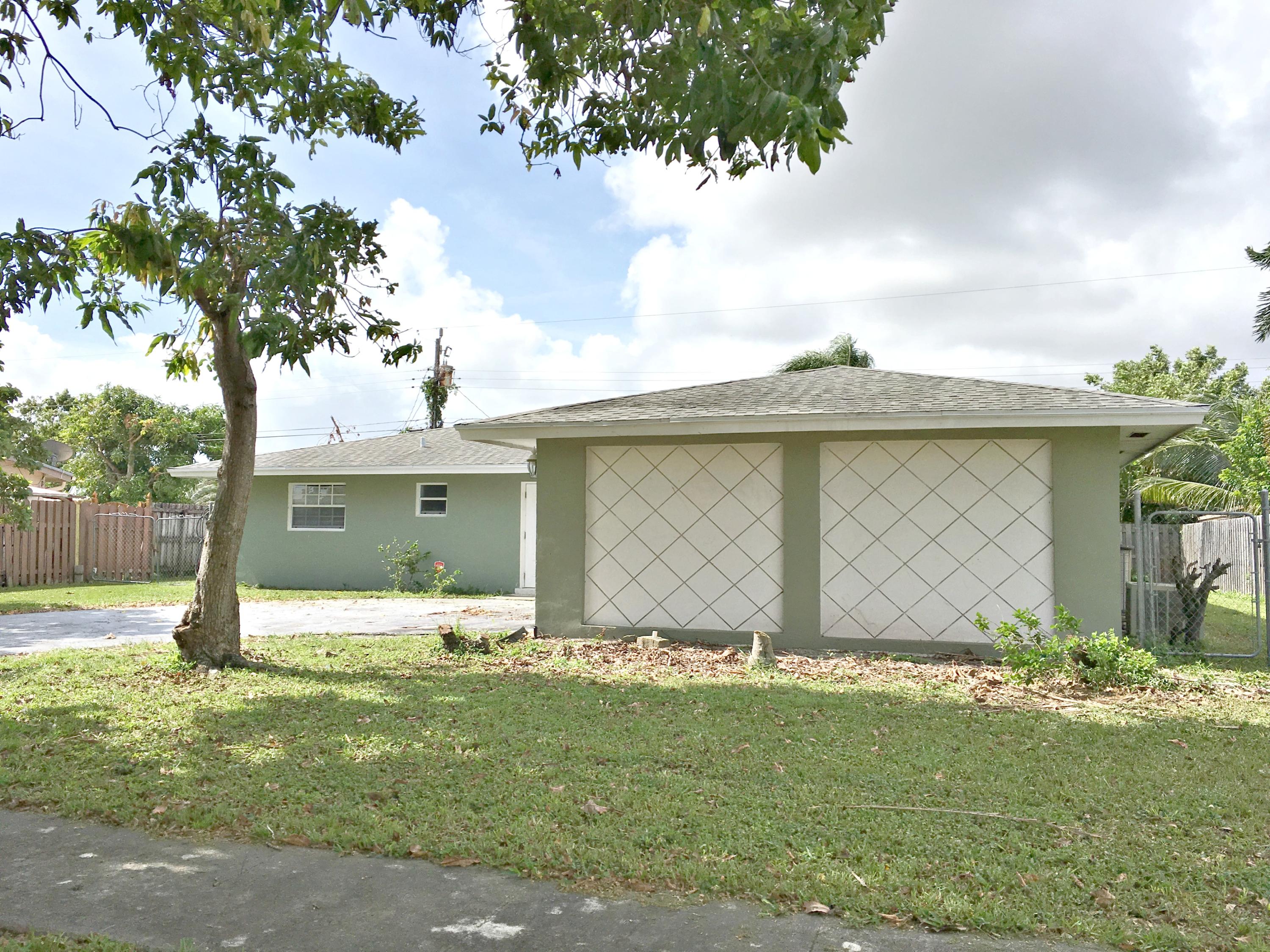 This great mid-century modern home is a 4 bedroom 2 bath (finished/enclosed garage). Close to the Turnpike, Okeechobee Blvd. and Belvedere Rd. Minutes from the ocean, shopping at the Outlets, and nightlife in Downtown West Palm Beach. 4BR/2BTH! Open floorplan and lots of sunlight. Located on a sizable lot surrounded by landscaped yard, a young live oak tree, and mature fruit trees (2 mango and 1 avocado). This South Florida home has a large living room, eat-in kitchen, dining room, a split bedroom plan with large closets. Expansive backyard patio, carport and a utility room with washer and dryer. Large back yard with room for pool and spa. Privately fenced and lushly landscaped.
