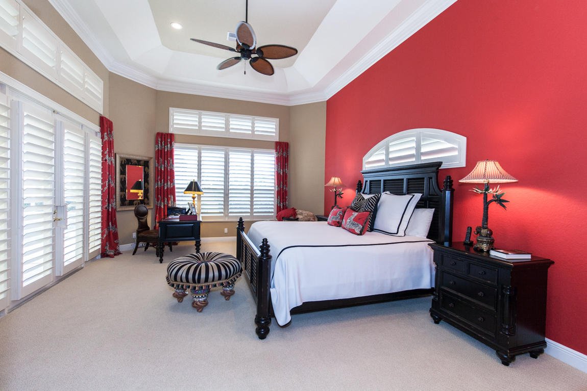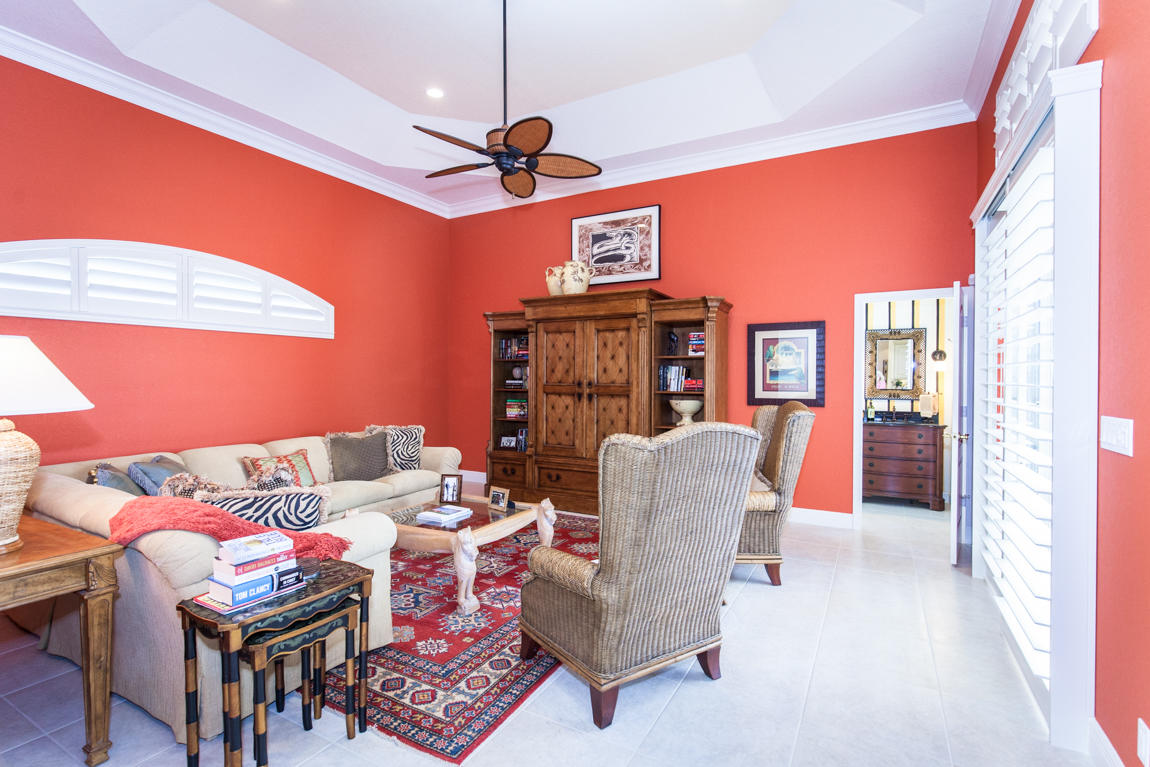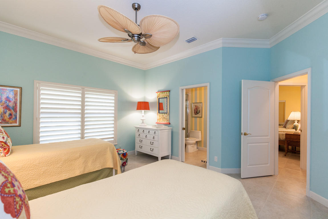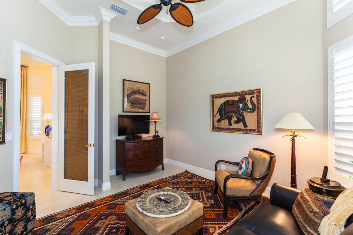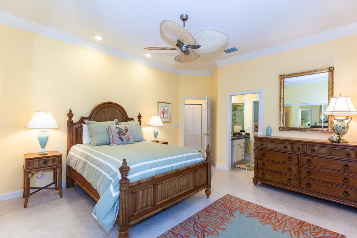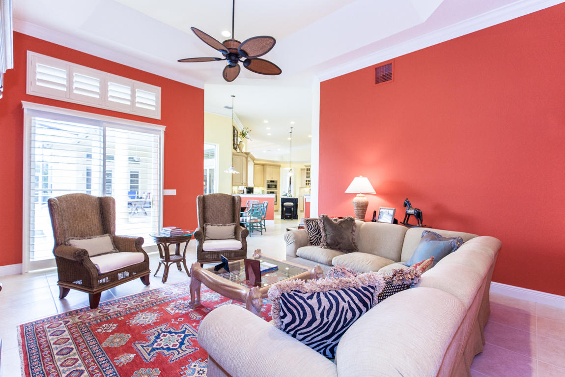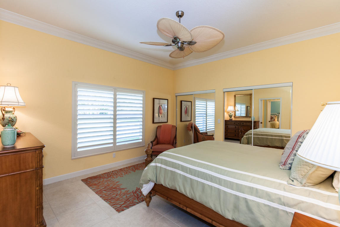 Beautiful home with panoramic golf & water views. This 3 BR home + office or 4 BR shows pride of ownership from driving up the long shimmering marble driveway to the recently remodeled kitchen. One of the newer homes in the Estate section. All Ac's & mechanicals have been replaced in the last 4 years. Remodeled laundry room, plantation shutters & garage cabinetry as well as a tiled garage floor. All new marble decking around the pool & patio. Dozens of LED hi hat lights. MacKenzie child kitchen light & bathroom & kitchen cabinet hardware. Stately entrance featuring a Porte cochere. 1 acre lot featuring majestic palms as well as Mango, banana, citrus & avocado
