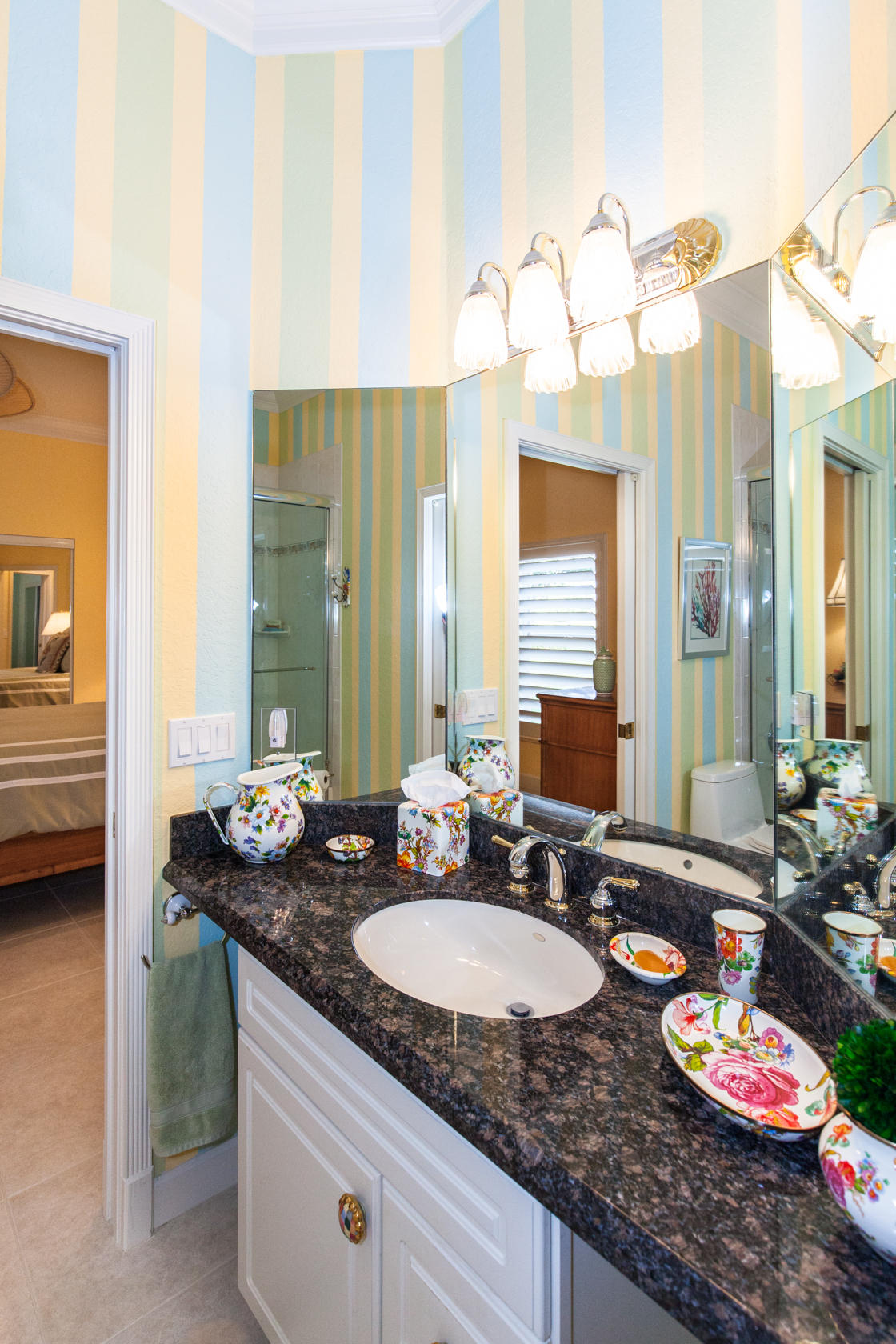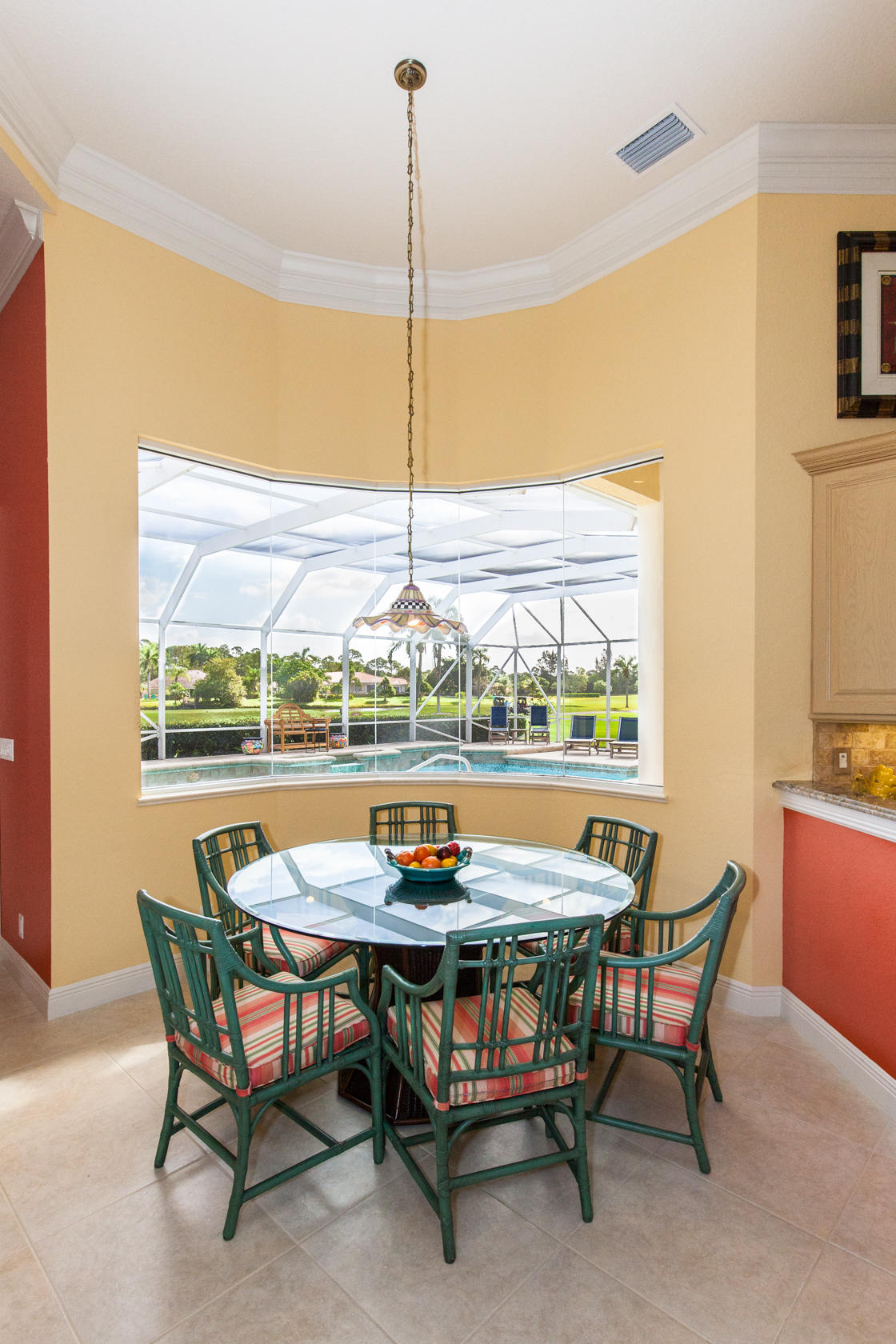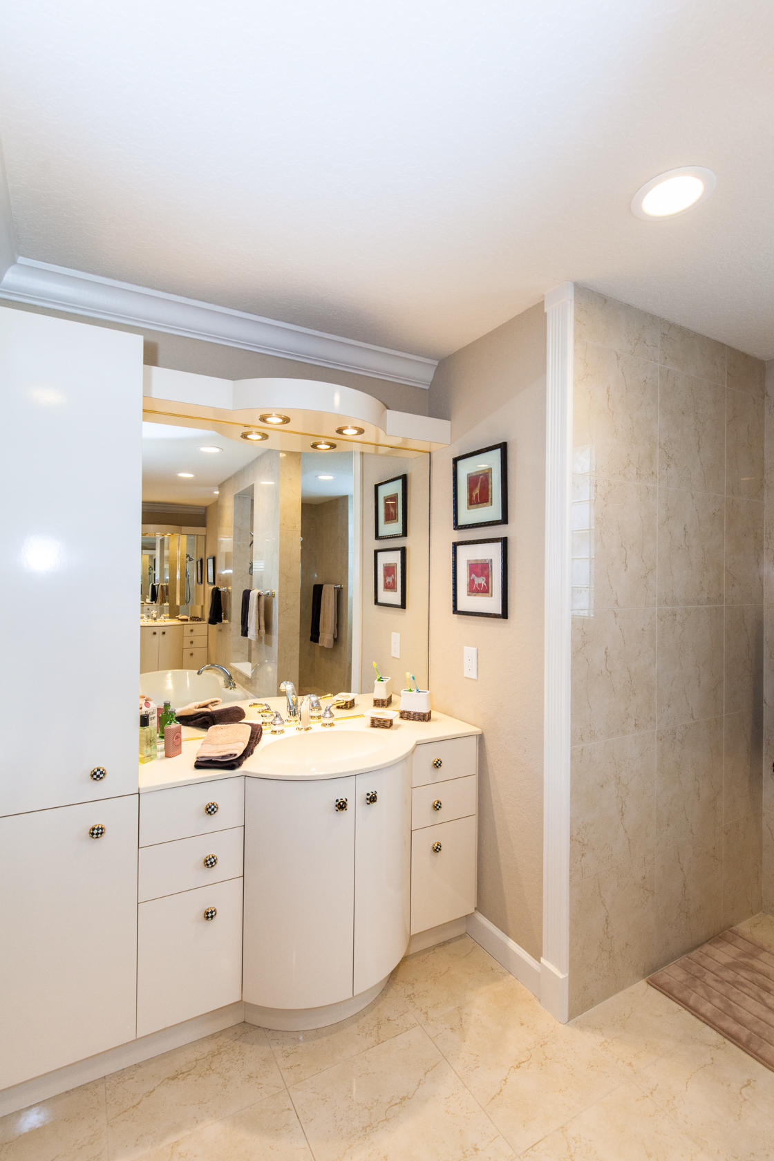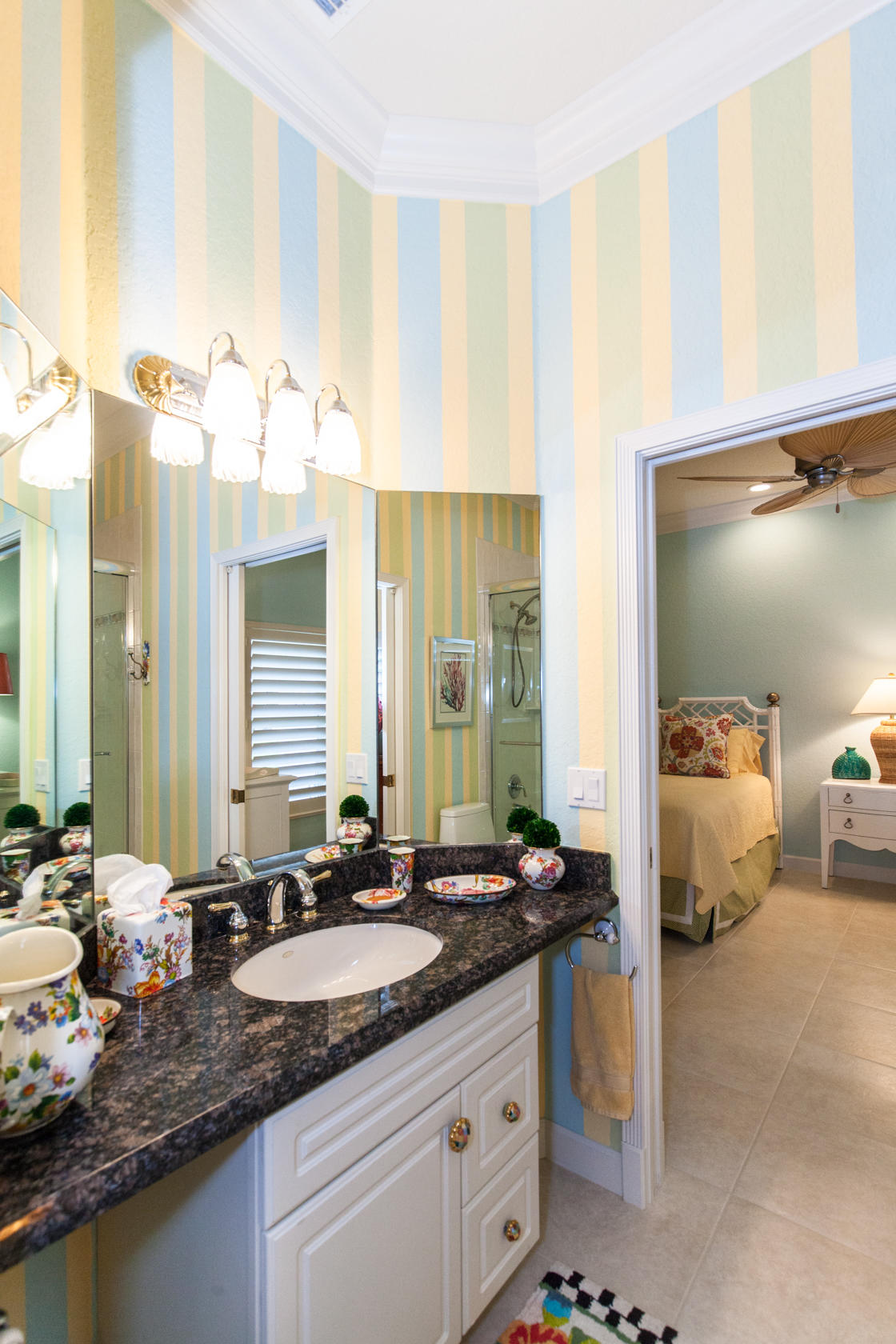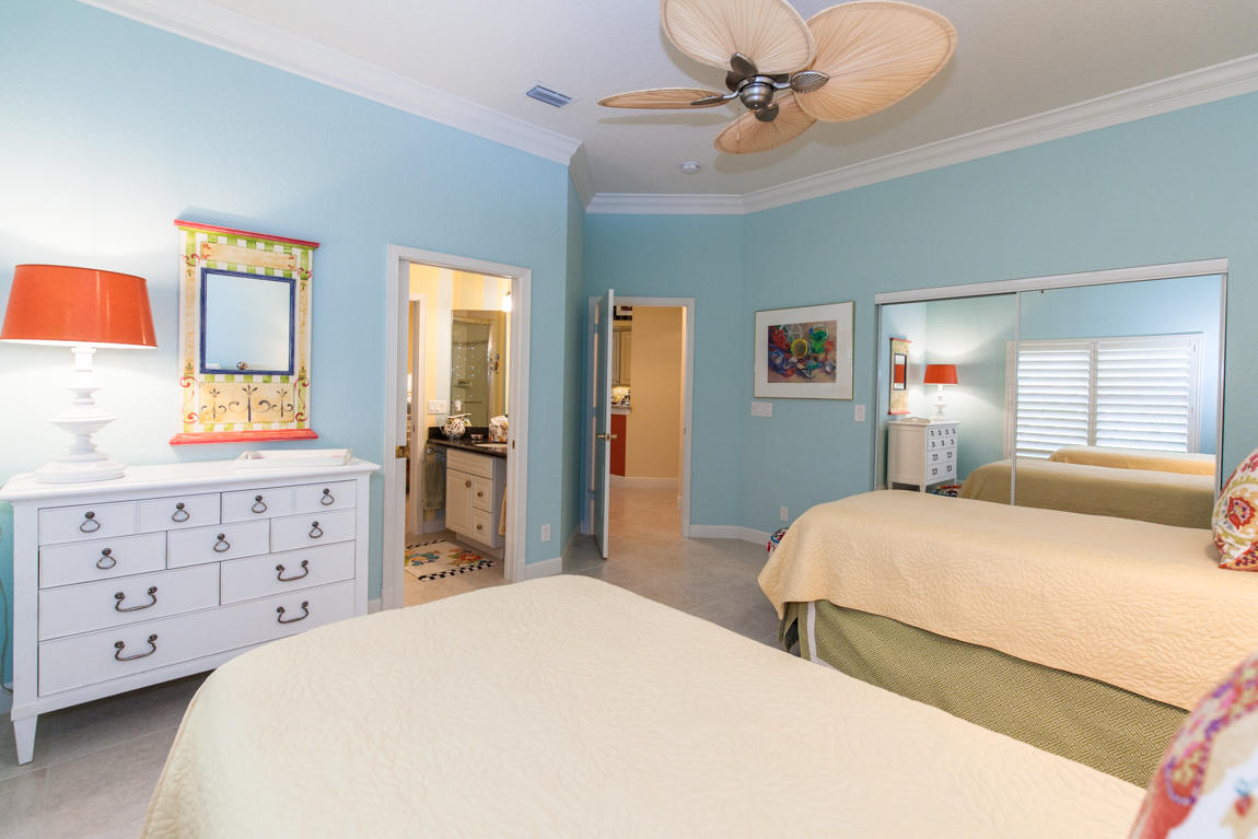 Beautiful home with panoramic golf & water views. This 3 BR home + office or 4 BR shows pride of ownership from driving up the long shimmering marble driveway to the recently remodeled kitchen. One of the newer homes in the Estate section. All Ac's & mechanicals have been replaced in the last 4 years. Remodeled laundry room, plantation shutters & garage cabinetry as well as a tiled garage floor. All new marble decking around the pool & patio. Dozens of LED hi hat lights. MacKenzie child kitchen light & bathroom & kitchen cabinet hardware. Stately entrance featuring a Porte cochere. 1 acre lot featuring majestic palms as well as Mango, banana, citrus & avocado