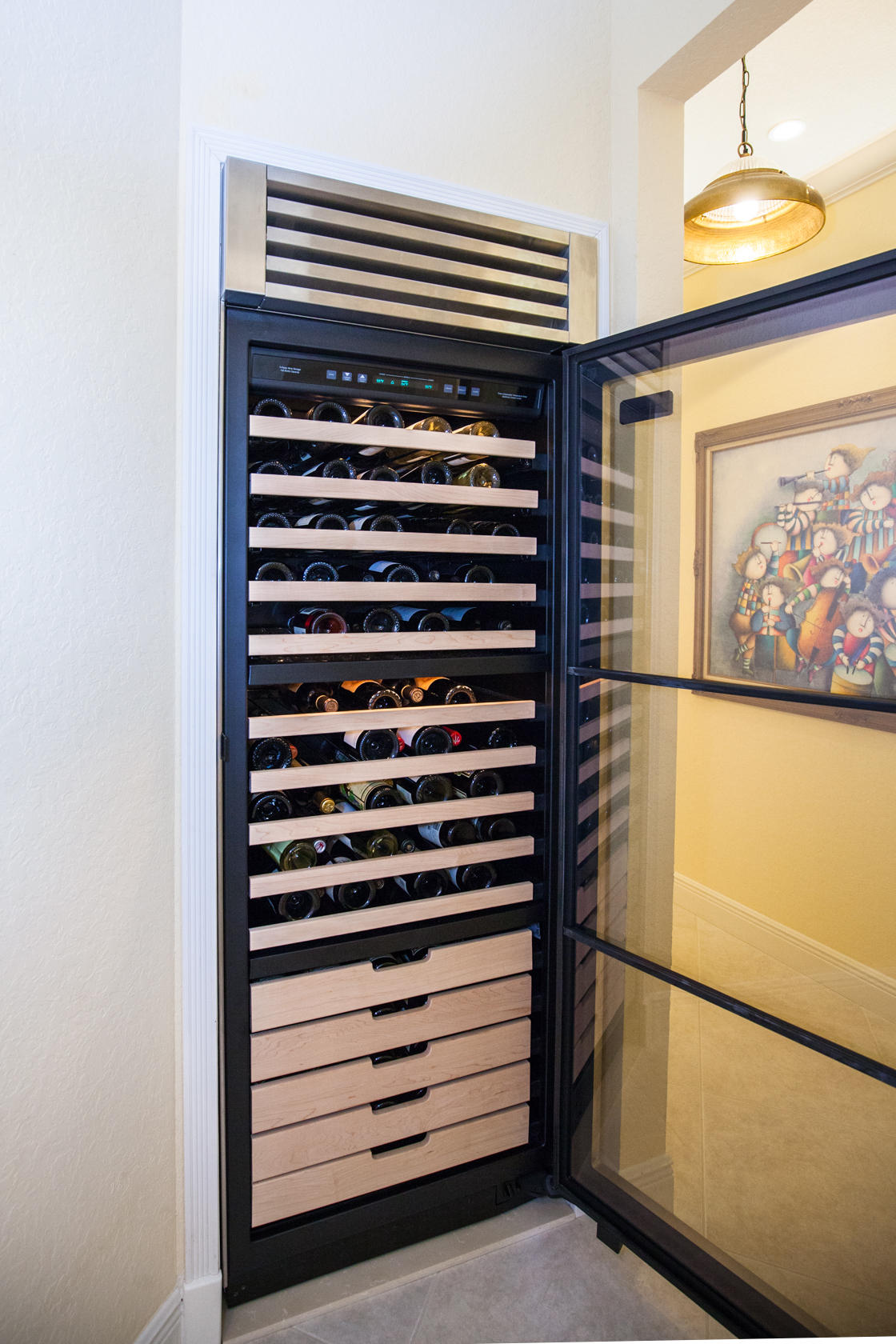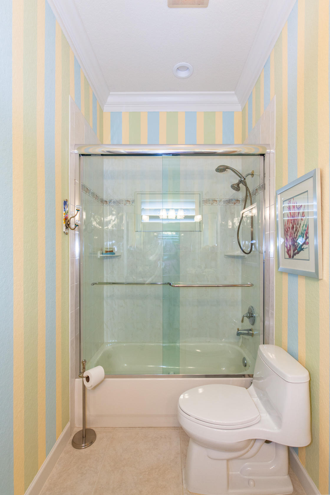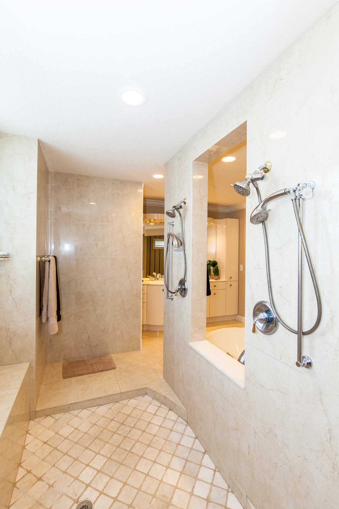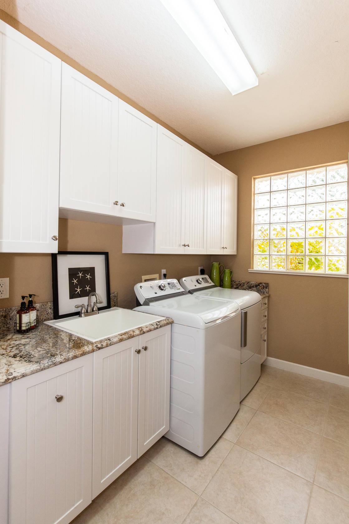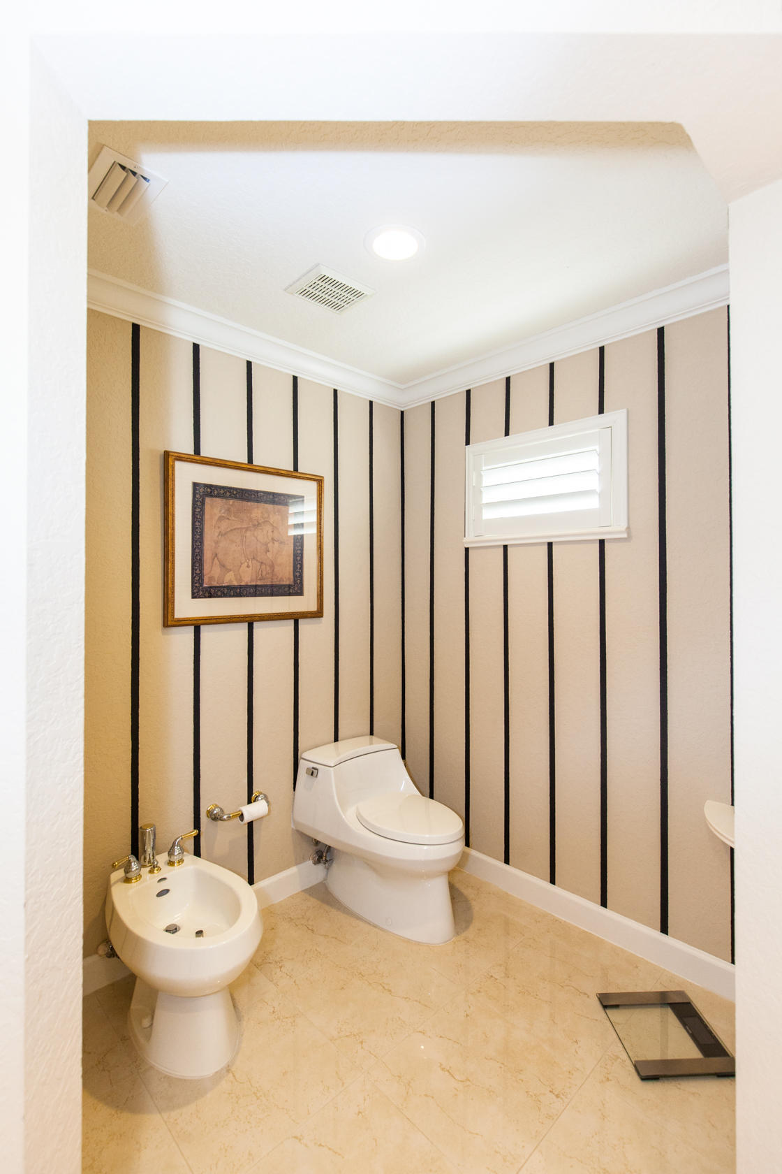 Beautiful home with panoramic golf & water views. This 3 BR home + office or 4 BR shows pride of ownership from driving up the long shimmering marble driveway to the recently remodeled kitchen. One of the newer homes in the Estate section. All Ac's & mechanicals have been replaced in the last 4 years. Remodeled laundry room, plantation shutters & garage cabinetry as well as a tiled garage floor. All new marble decking around the pool & patio. Dozens of LED hi hat lights. MacKenzie child kitchen light & bathroom & kitchen cabinet hardware. Stately entrance featuring a Porte cochere. 1 acre lot featuring majestic palms as well as Mango, banana, citrus & avocado