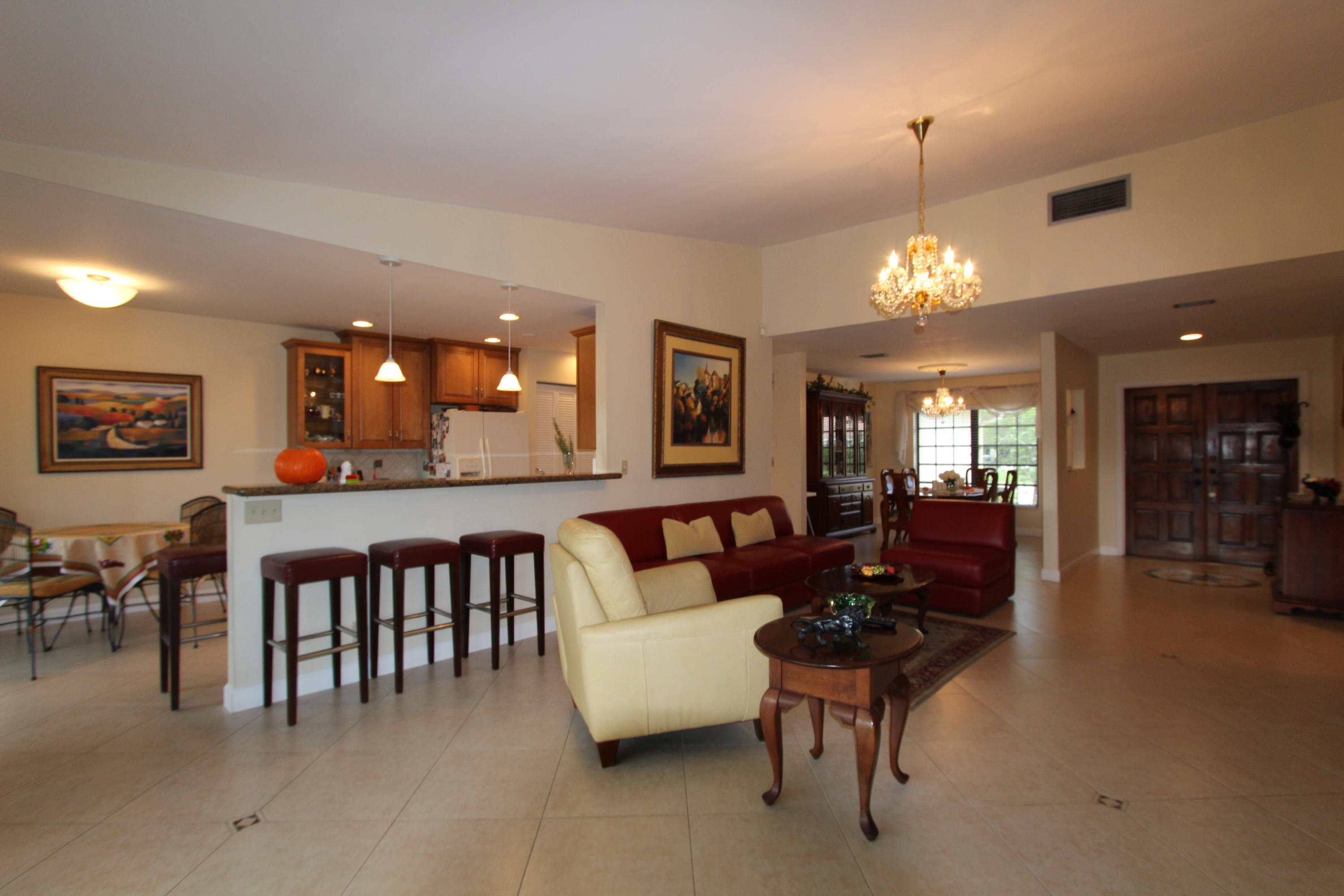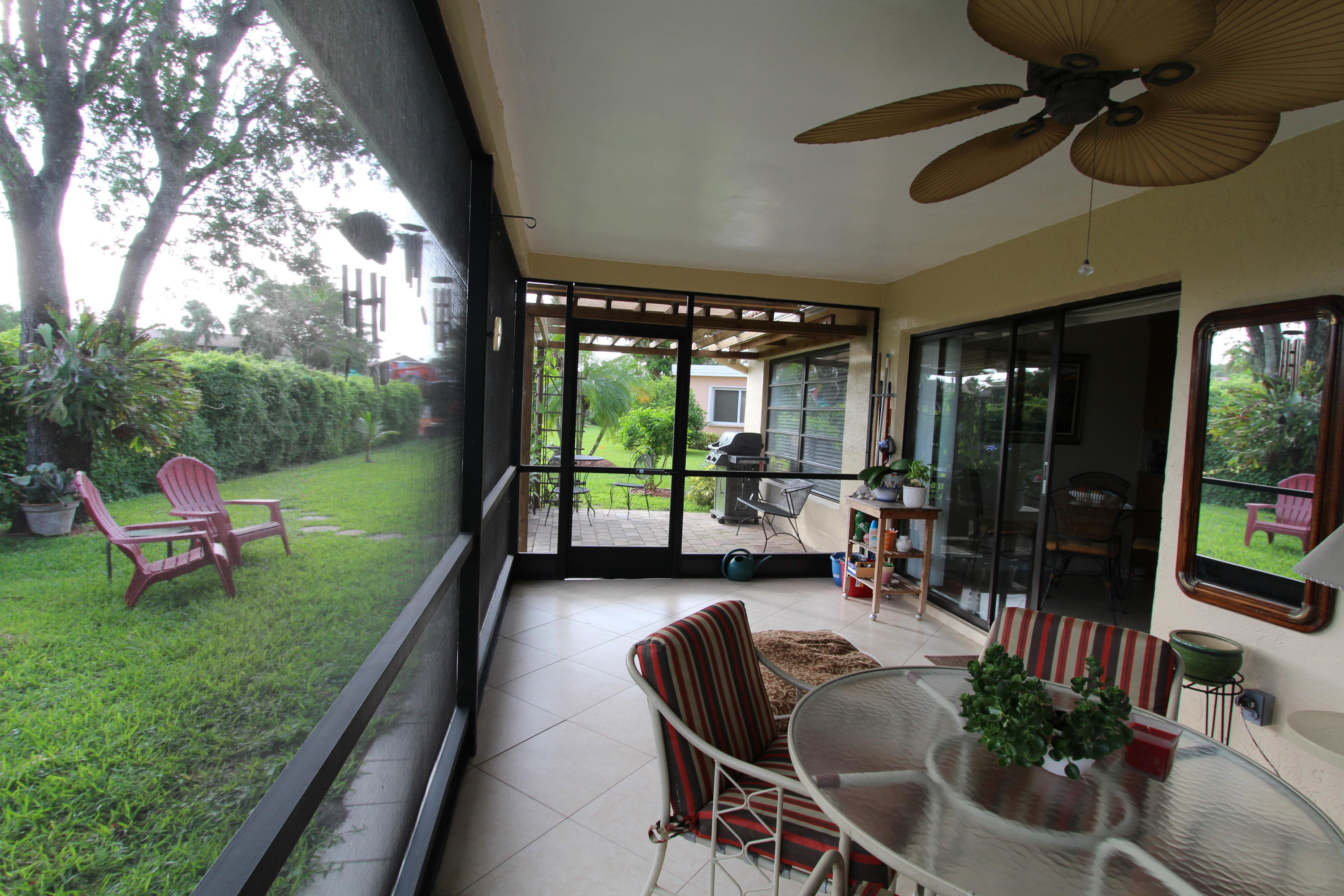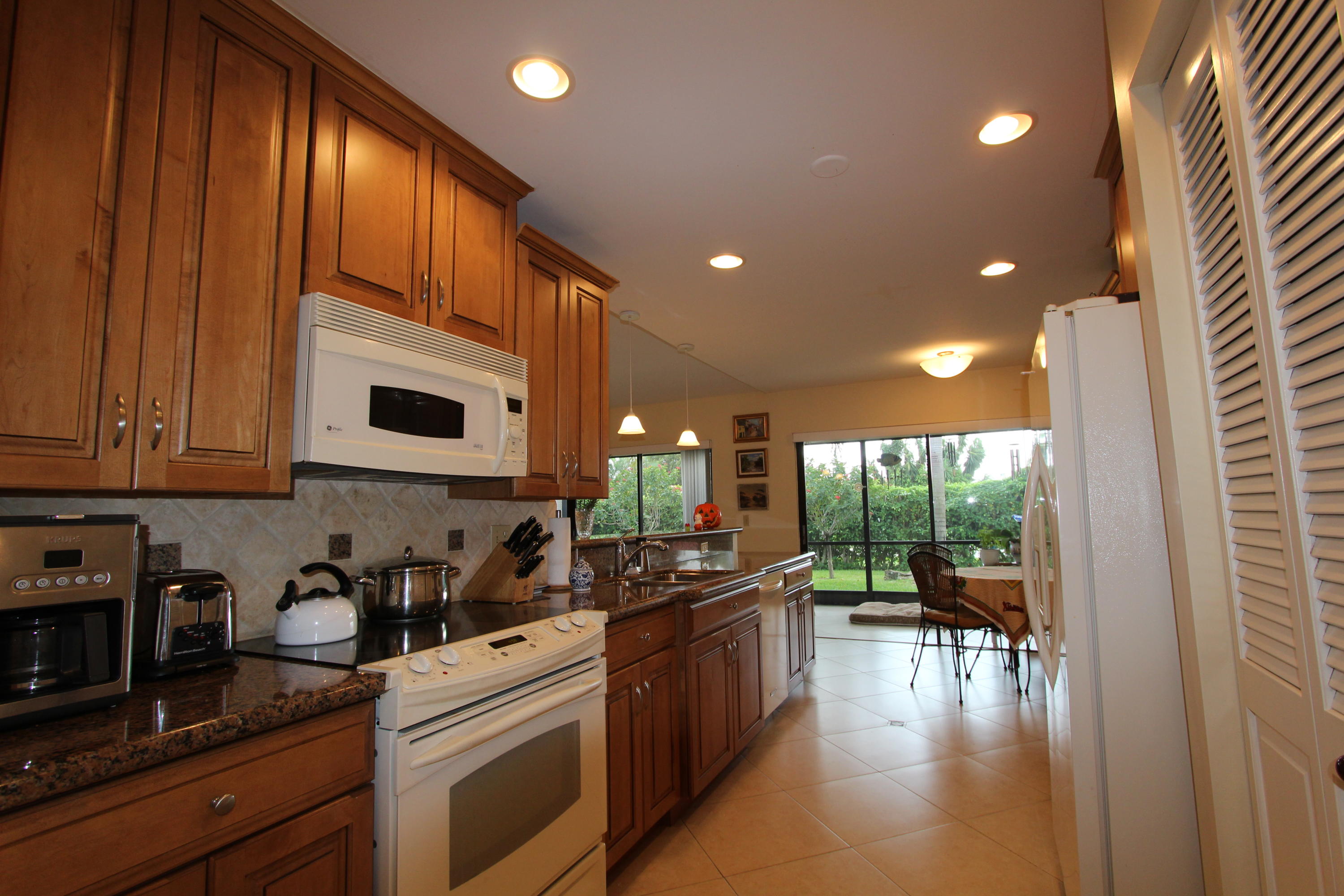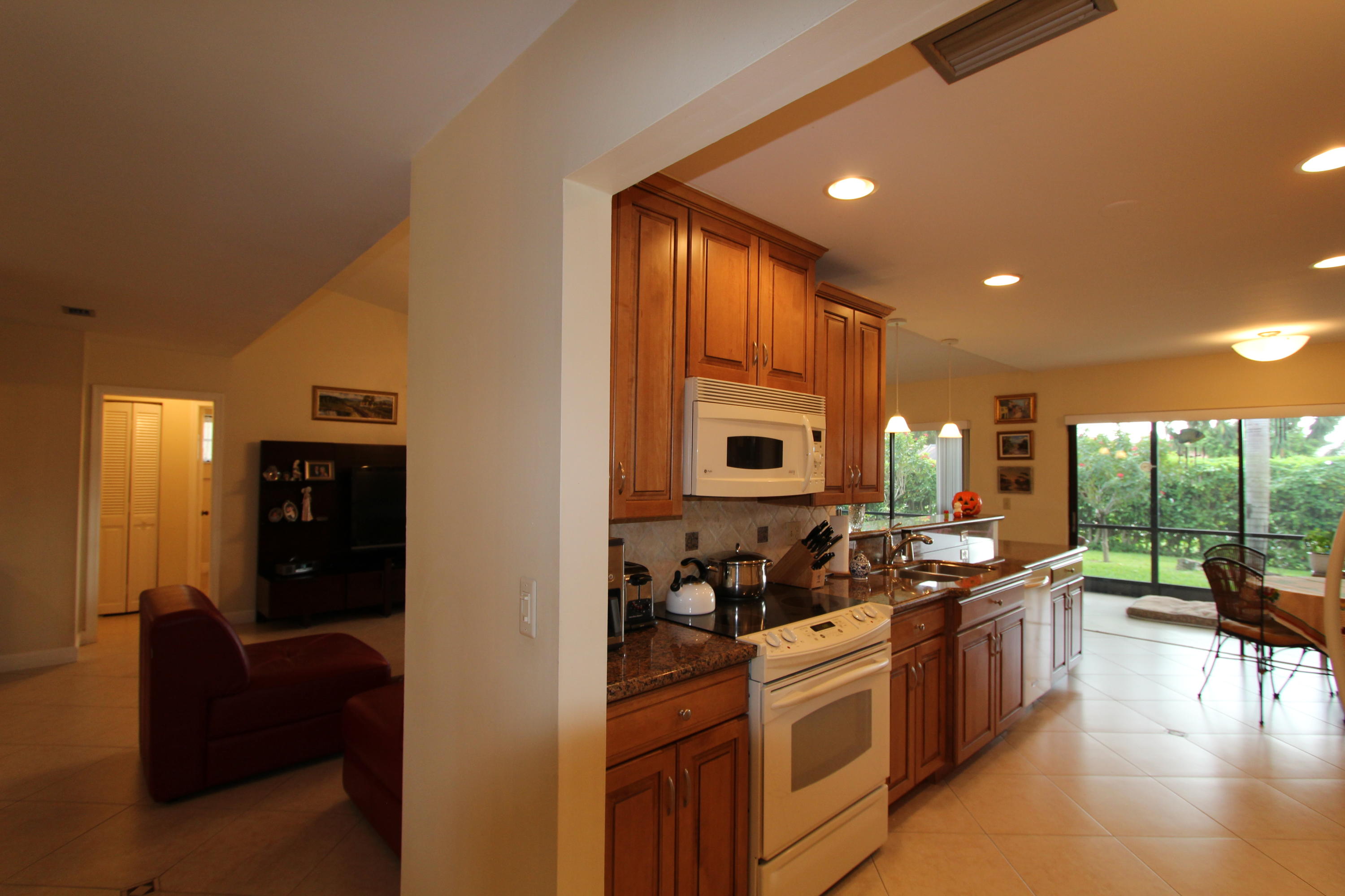 Great location! Move in ready! Comfortable, updated home, solid wood kitchen granite counter tops, porcelain tile thru-out the whole house laid diagonally! Low maintenance includes landscaping, pool, pressure cleaning and painting. Oversized screened patio, private back yard. This is 55+ community in heart of Boca Raton!Close to everything!!