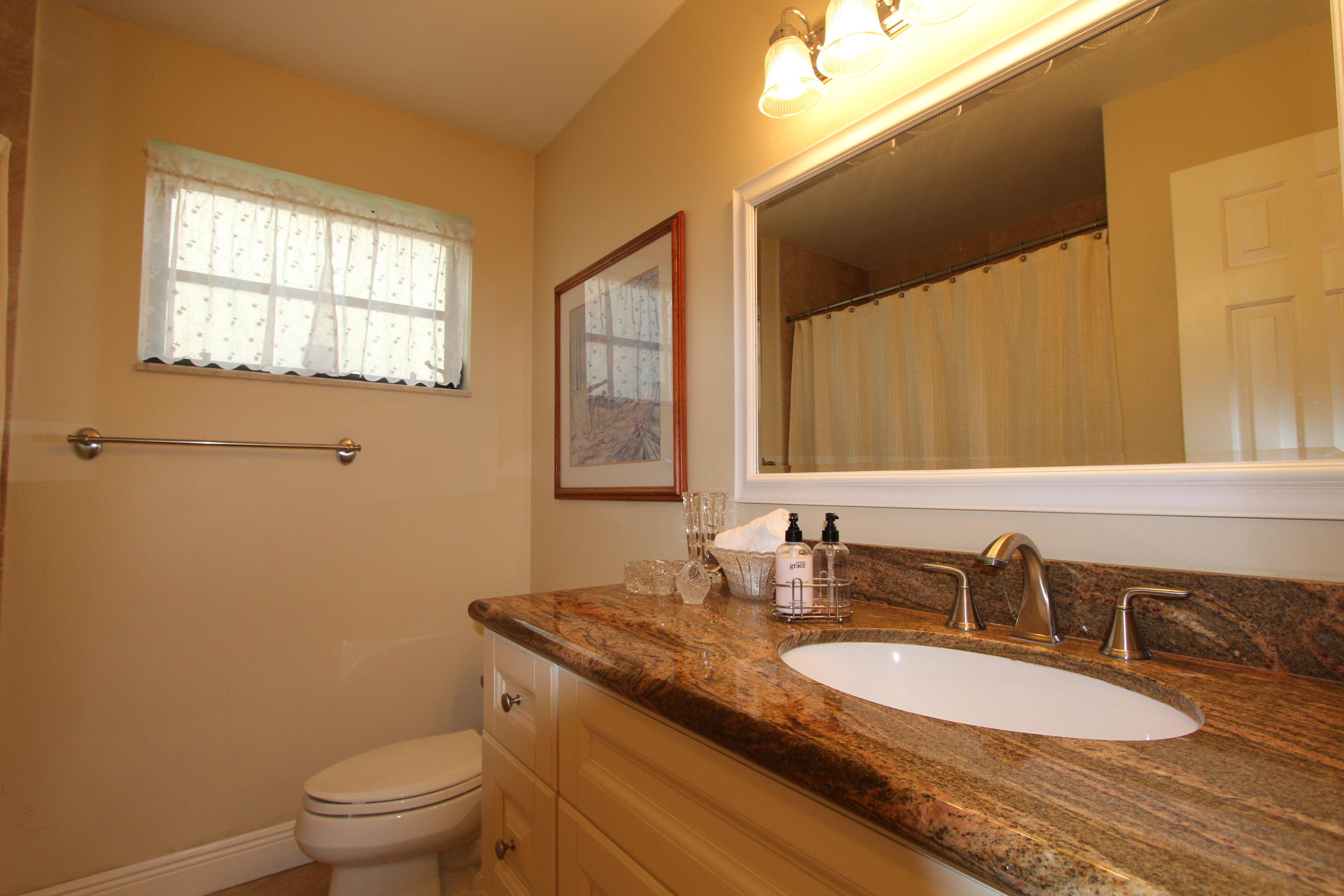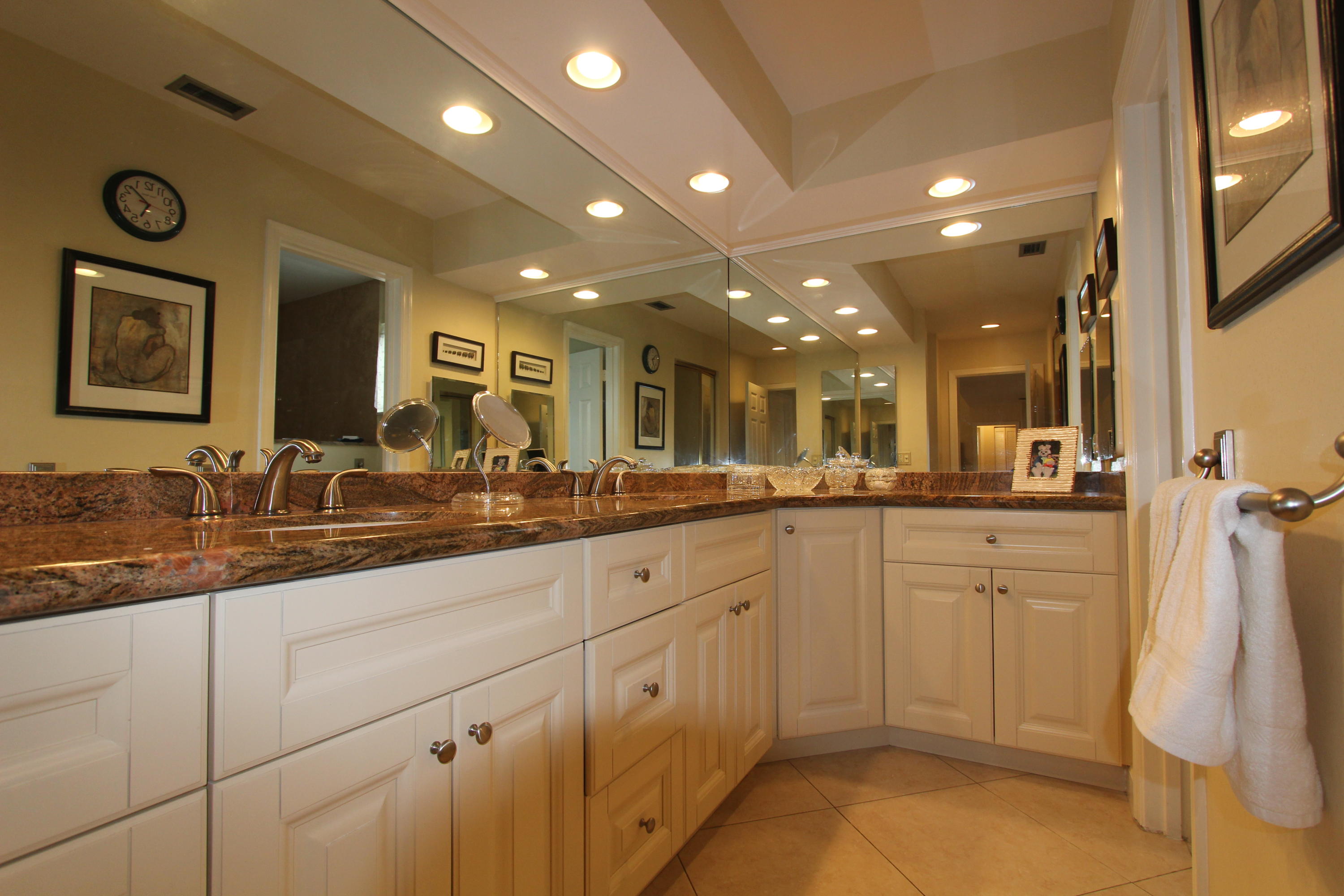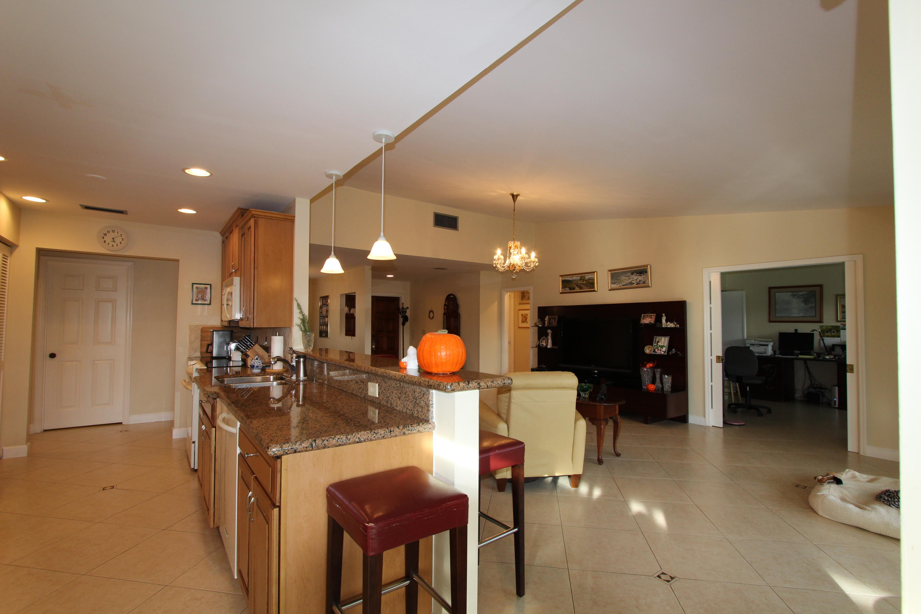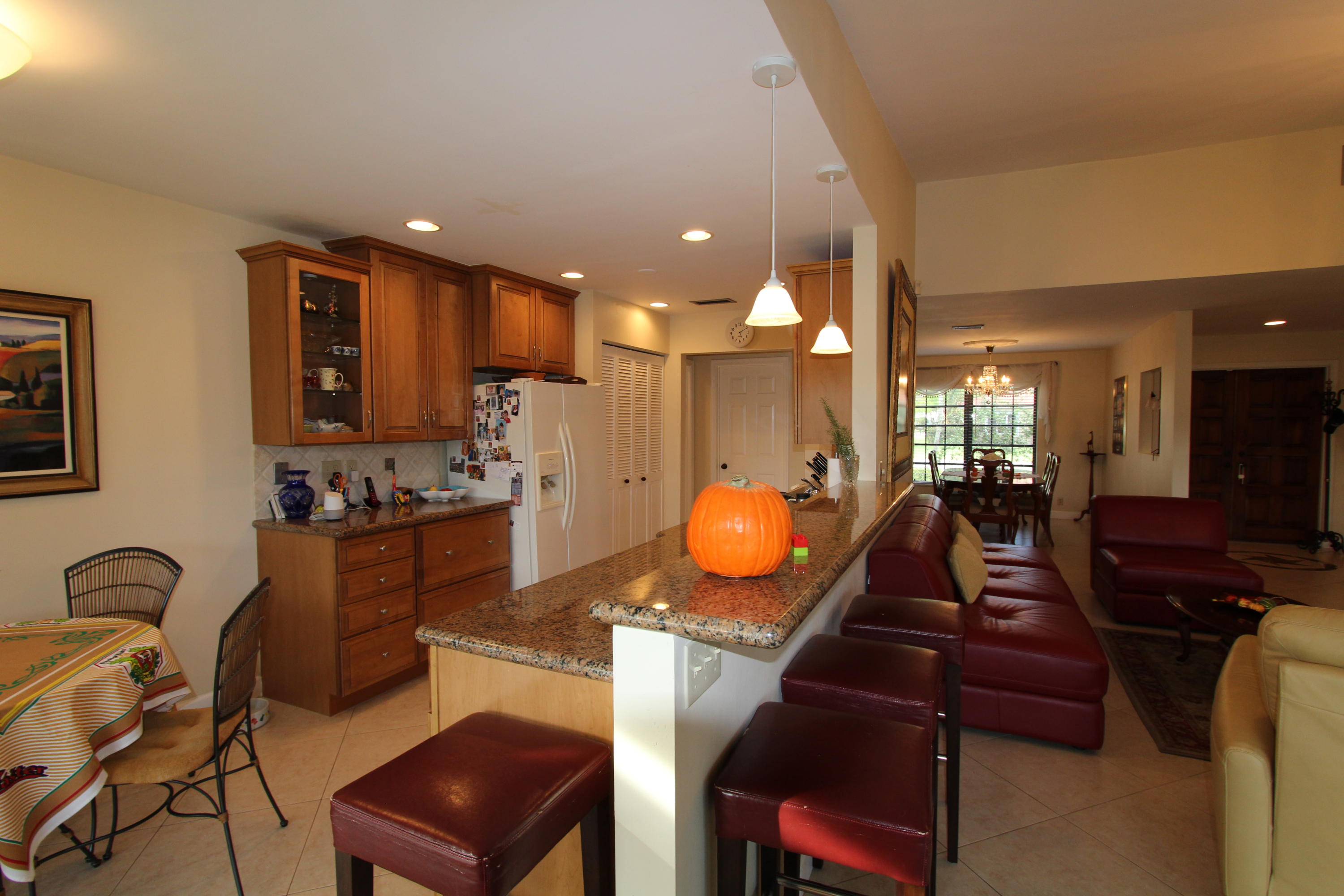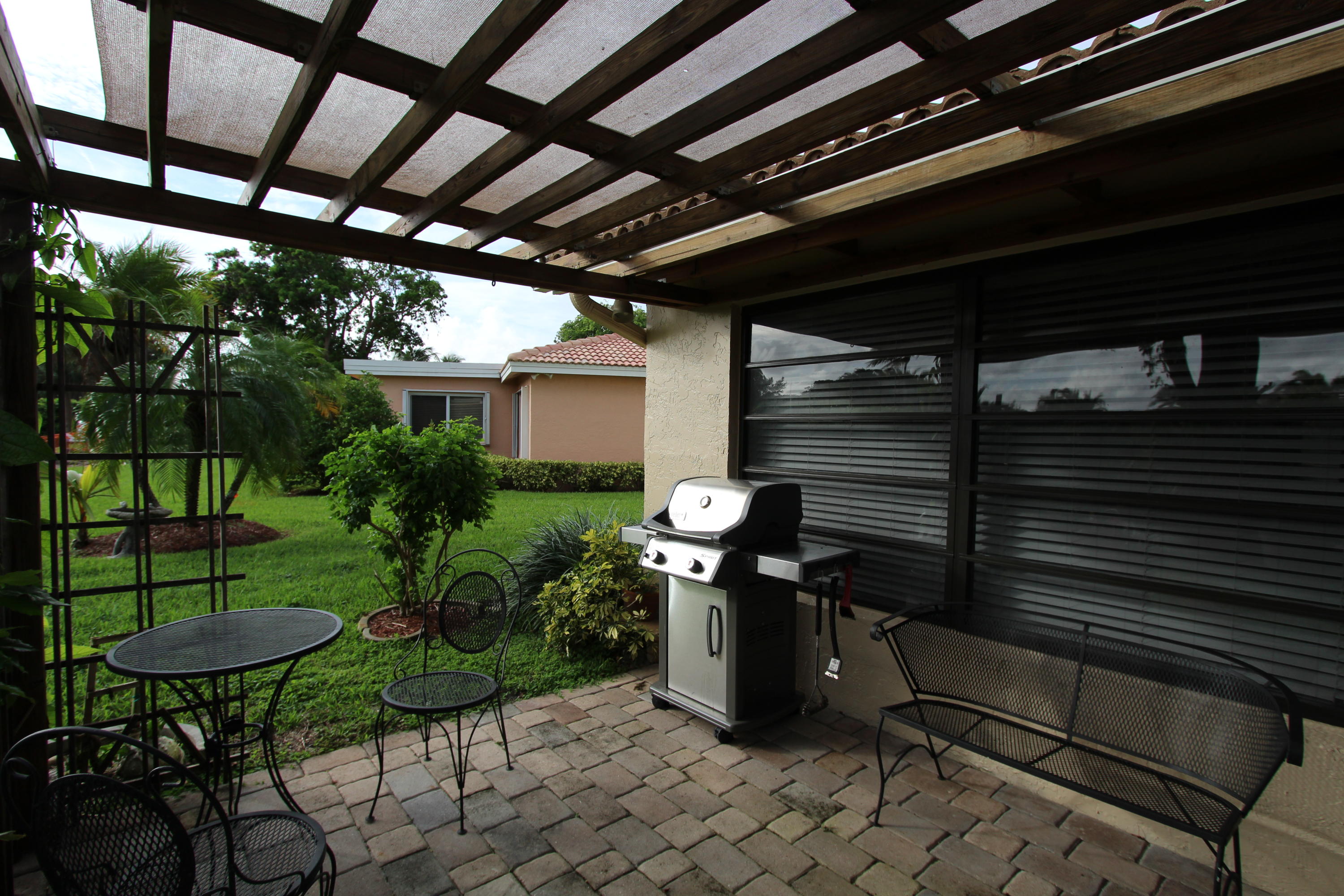 Great location! Move in ready! Comfortable, updated home, solid wood kitchen granite counter tops, porcelain tile thru-out the whole house laid diagonally! Low maintenance includes landscaping, pool, pressure cleaning and painting. Oversized screened patio, private back yard. This is 55+ community in heart of Boca Raton!Close to everything!!