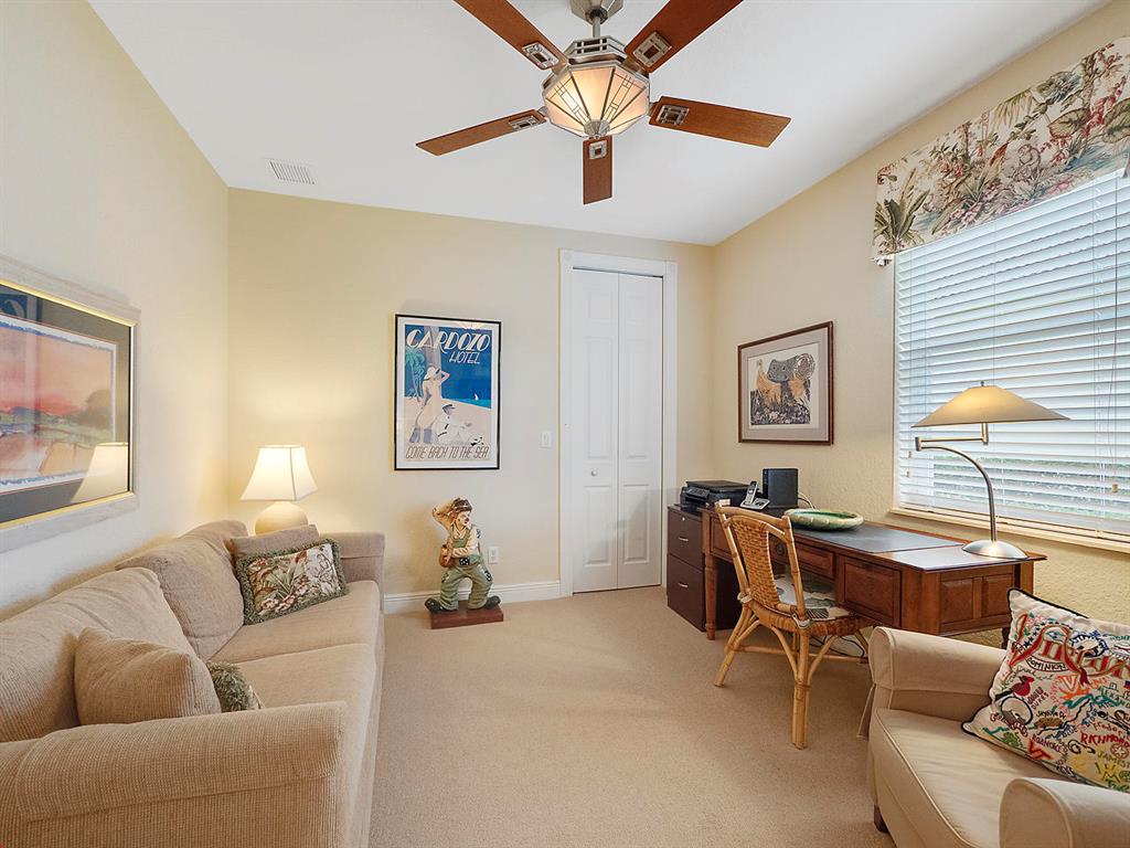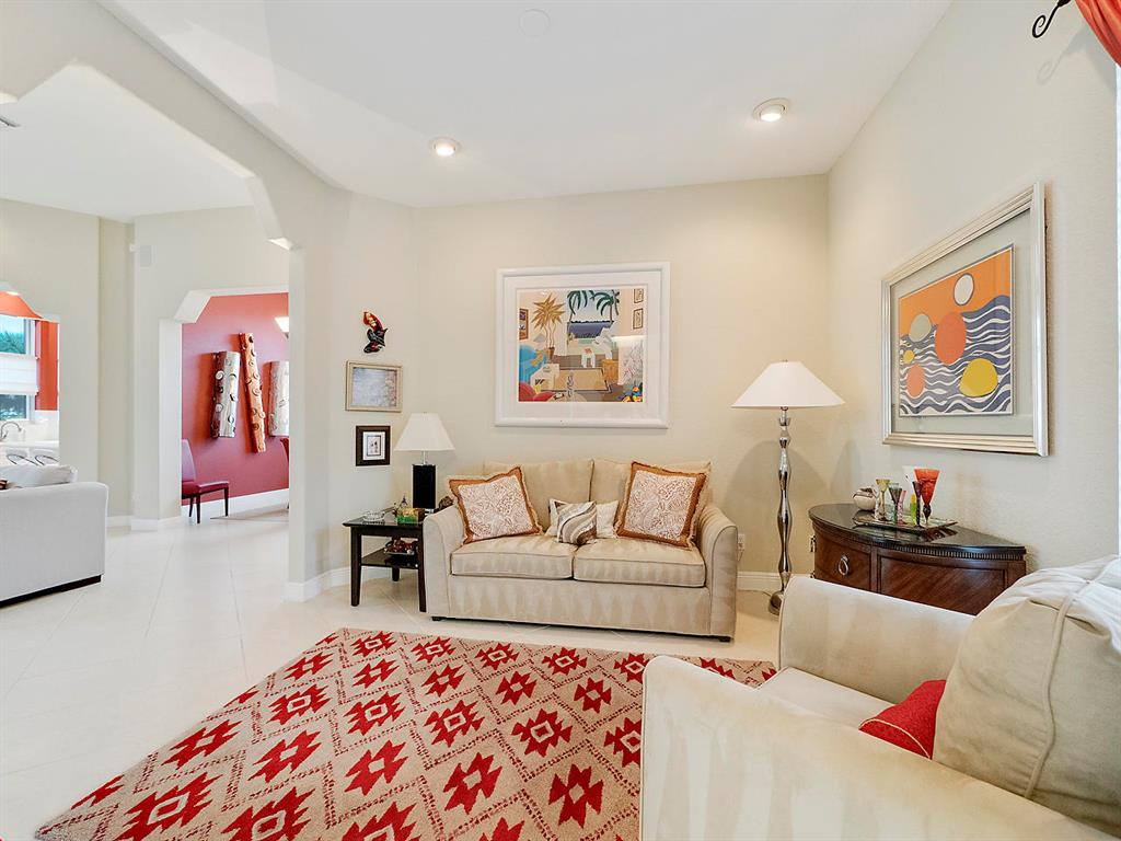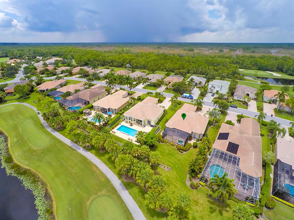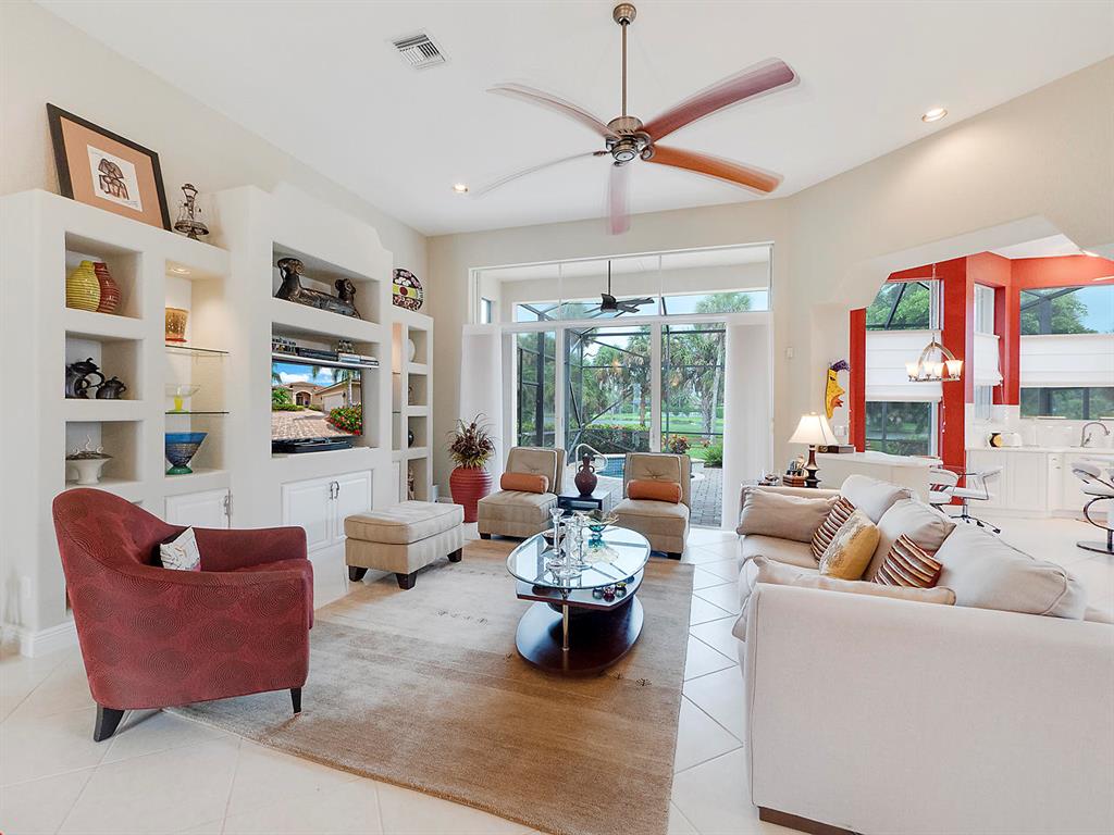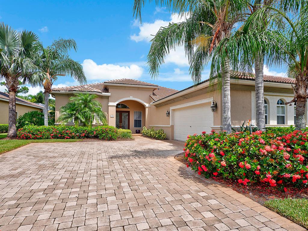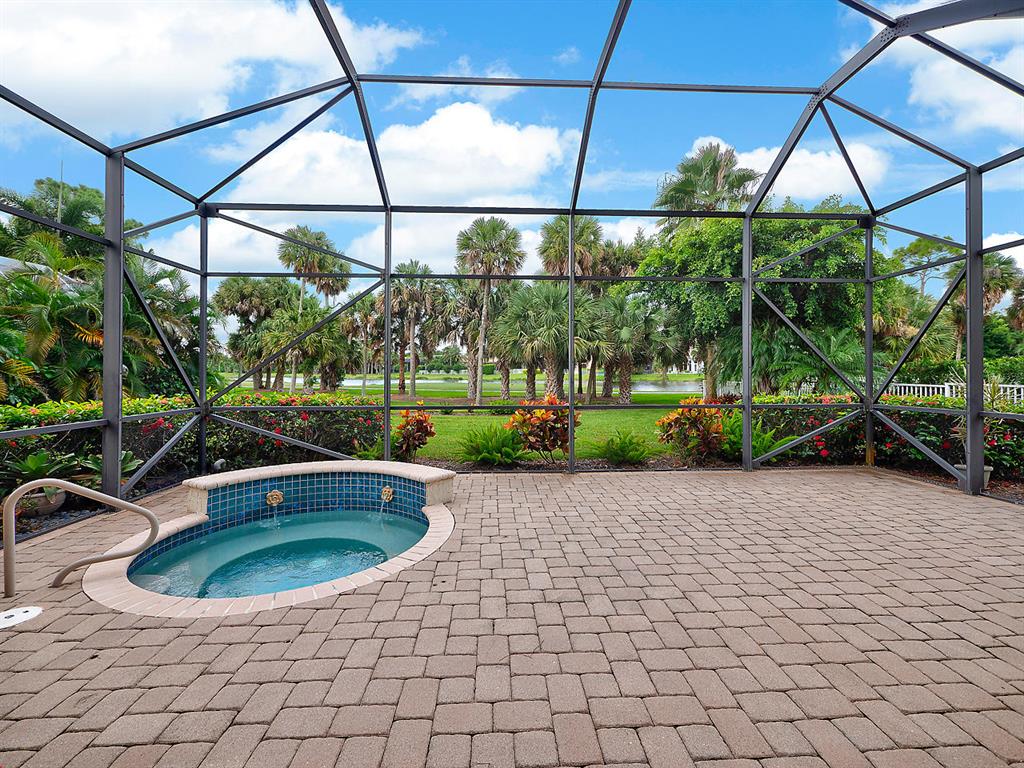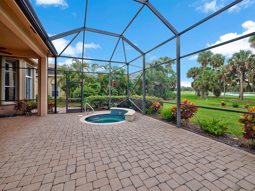 This beautiful modified Encino Model Home features three bedrooms, two and half baths and full size 2 1/2 cargarage. This home, which has 2,446 square feet under air with a total living space of 3,099 square feet offers abeautiful lake view of the Arthur Hills Signature designed golf course.The outside of the house includes a large, brick paved driveway and a screened in Patio with a heated spa. InAddition, the size of the lot offers the possibility for brand new a pool.THE ENTRANCEThe entrance to this home feature a double glass door entry way. As your enter this home you will find a lightand bright open floor plan, which is enhances both your living and entertaining Florida life style. Theentrance, which features tiled flooring and provides you with a feeling of a very beau