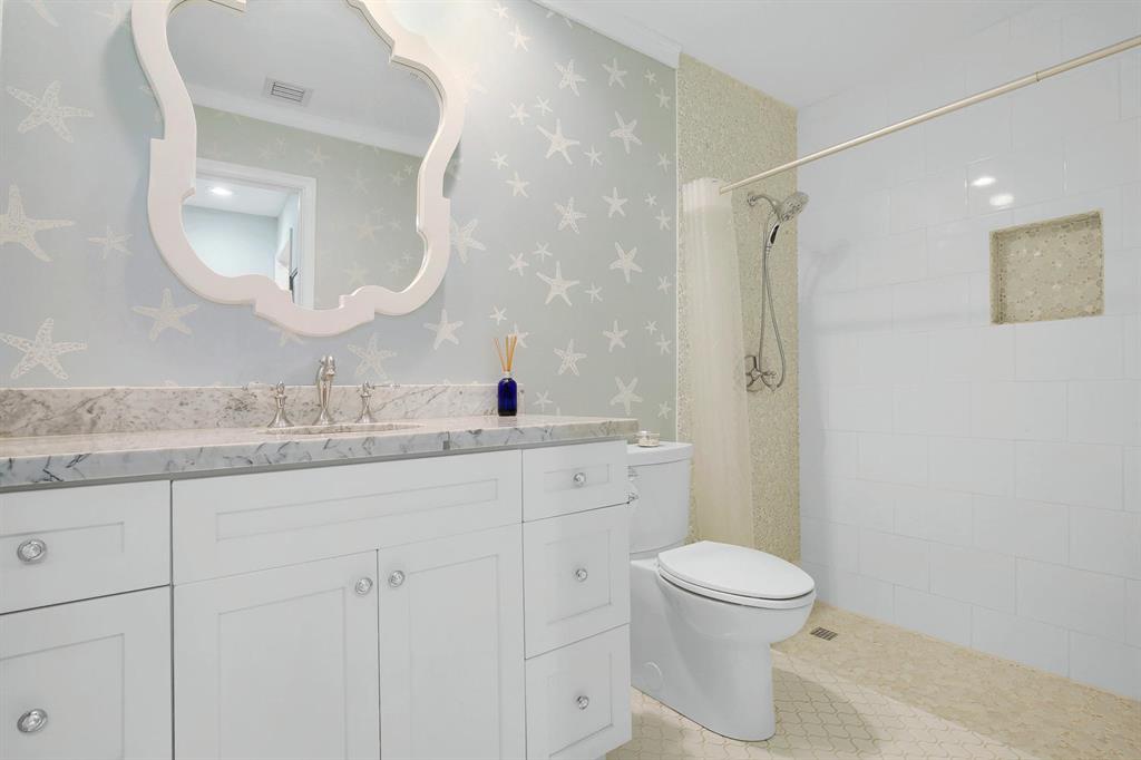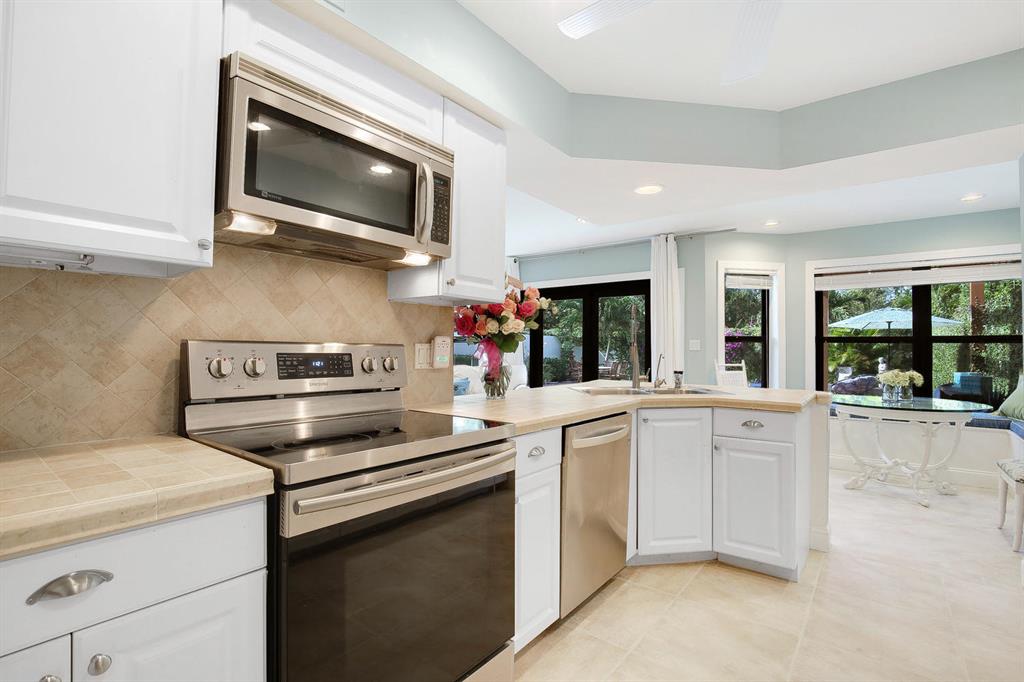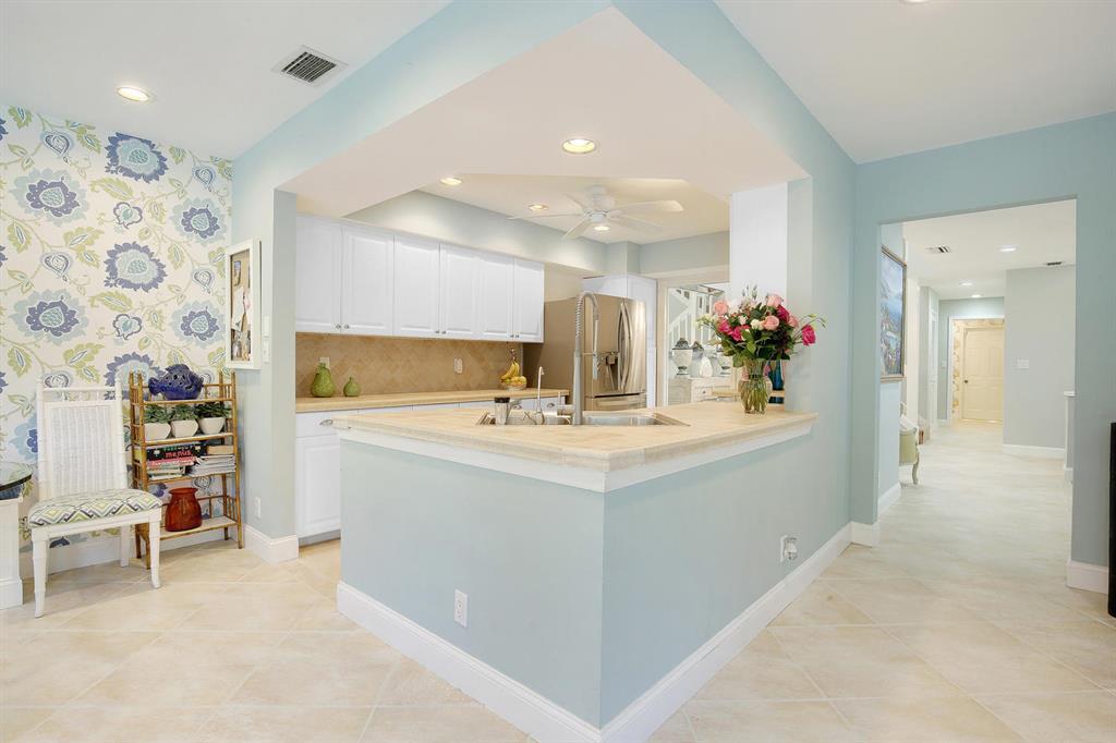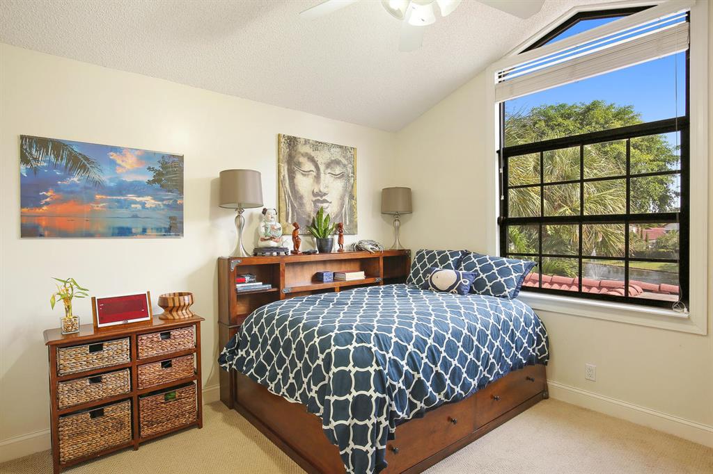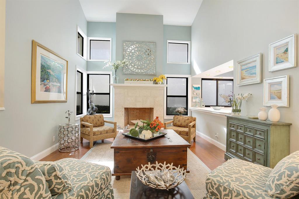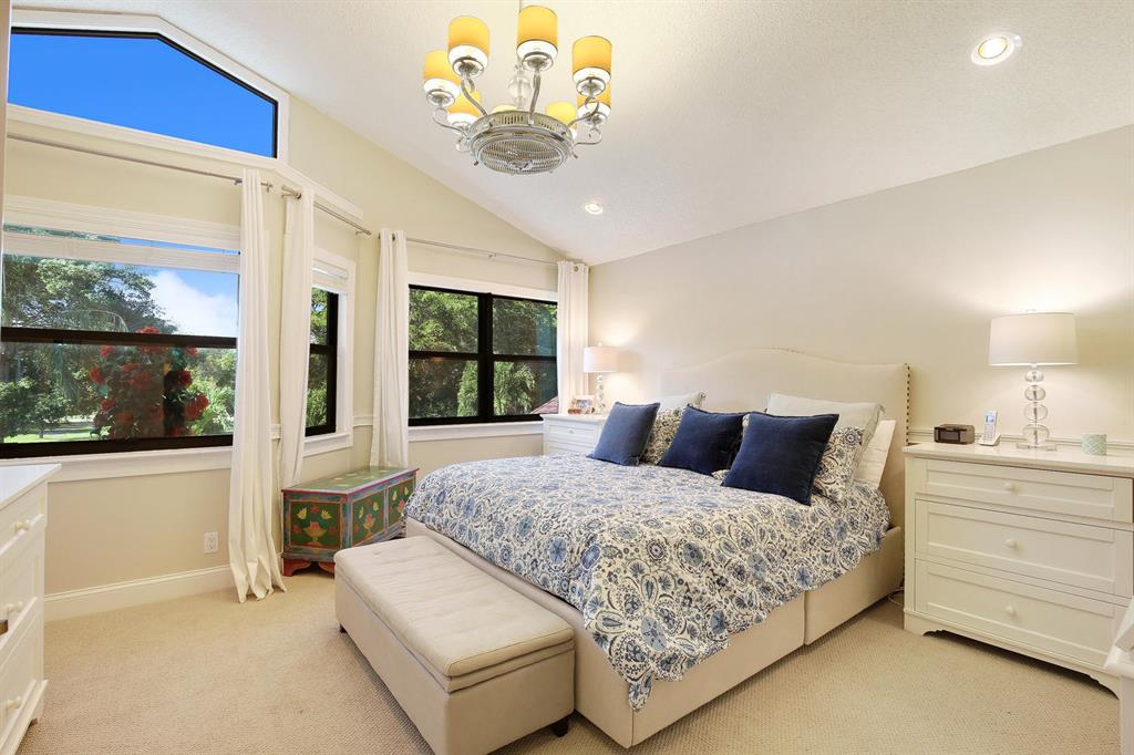 Situated on one of the best private lots in the community this beautifully updated coastal inspired home faces a serene lake & backs to a lush quiet park. Beautiful formal living room offers soaring ceilings & coral fireplace. Updated kitchen with breakfast area overlooks sparkling pool & oversized patio perfect for added outdoor living space and entertaining. Updated stainless appliances. Full bedroom & bath down. Light and bright master suite offers vaulted ceilings & pool views. Gorgeous updated master bath with marble top double vanity, separate soaking tub & shower. All guest baths updated with marble vanities. IMPACT DOORS/WINDOWS.