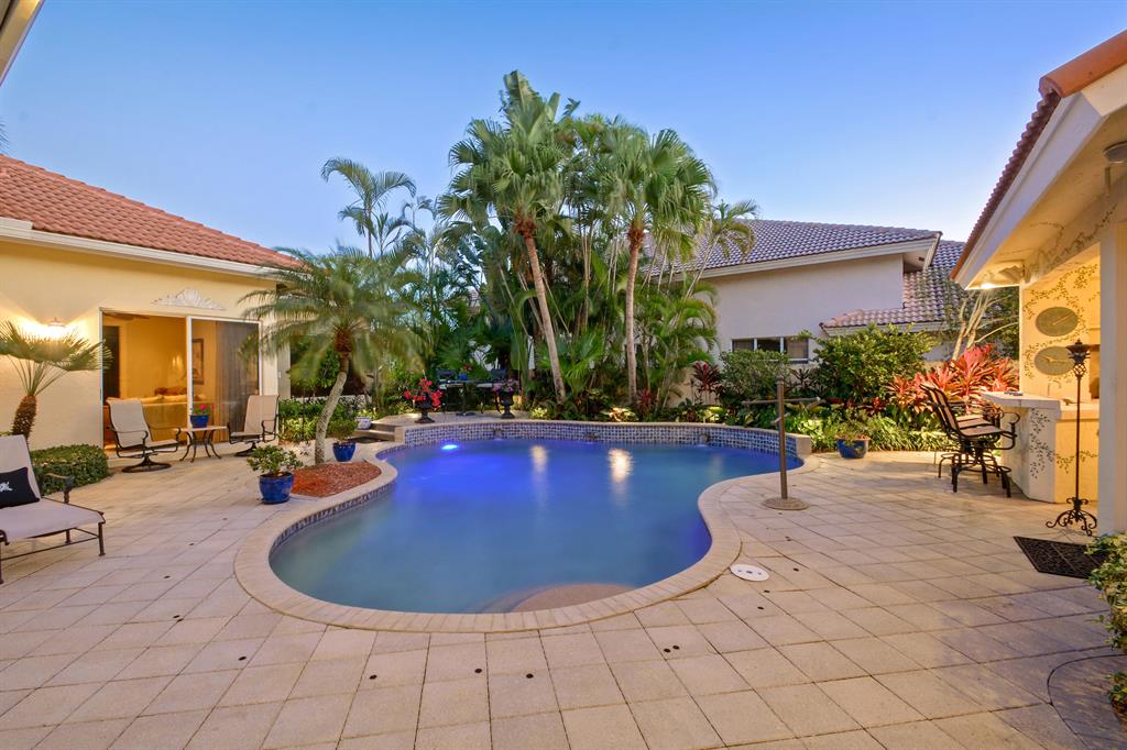 REDUCED!! NEW ROOF!! Beautiful meticulously maintained 5 bedroom home plus office! Huge spectacular courtyard with gorgeous redone heated saltwater pool. Updated kitchen with stainless steel appliances, white cabinets and black granite counter tops. Wood flooring and crown moldings throughout living areas. Serene lake views from formal dining room, living room and master suite. Lovely private guest house with plantation shutters. Freshly painted exterior (2016), new main A/C, new refrigerator. Lush tropical landscaping. Seasons has an active tennis program, fitness center, heated community pool, playground, basketball and 24 hour manned guard gate. A perfect central Boca Raton location