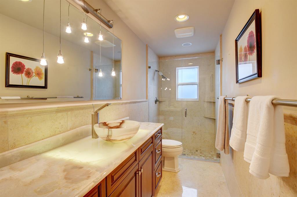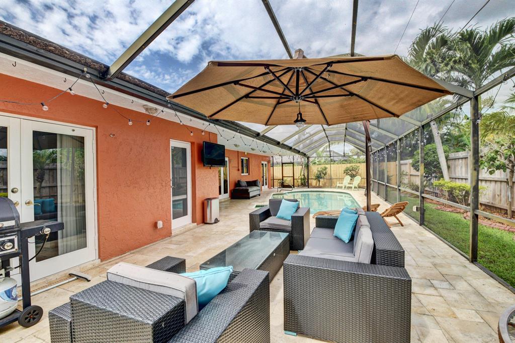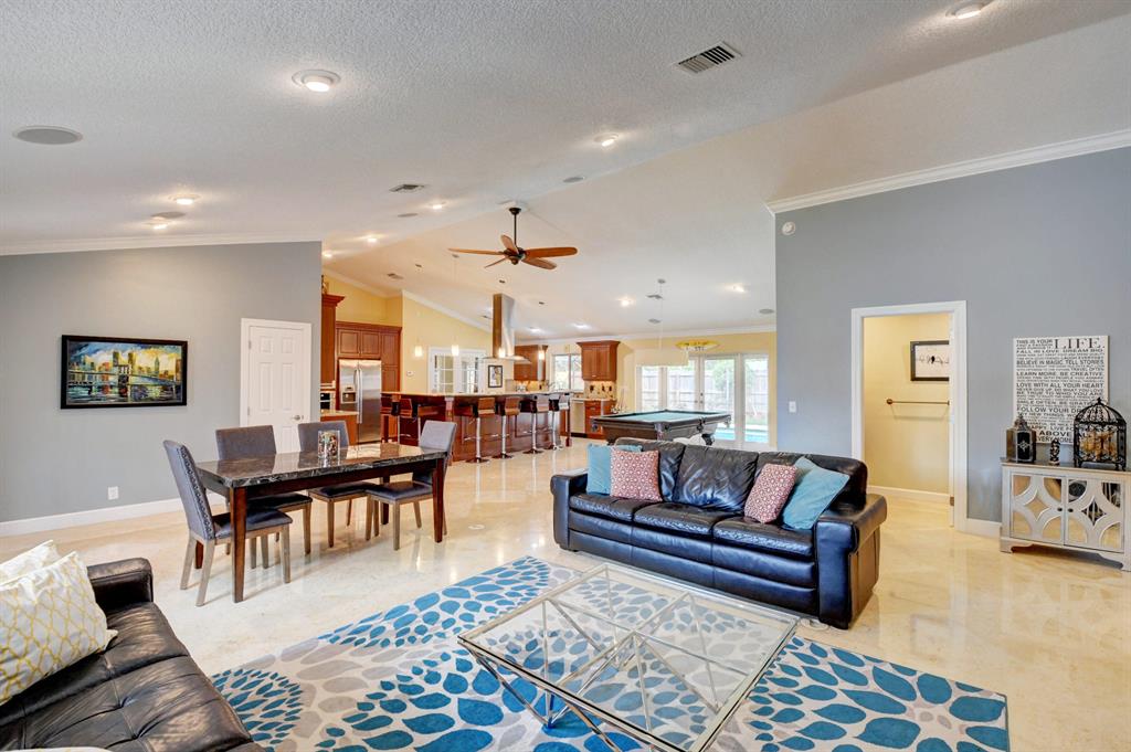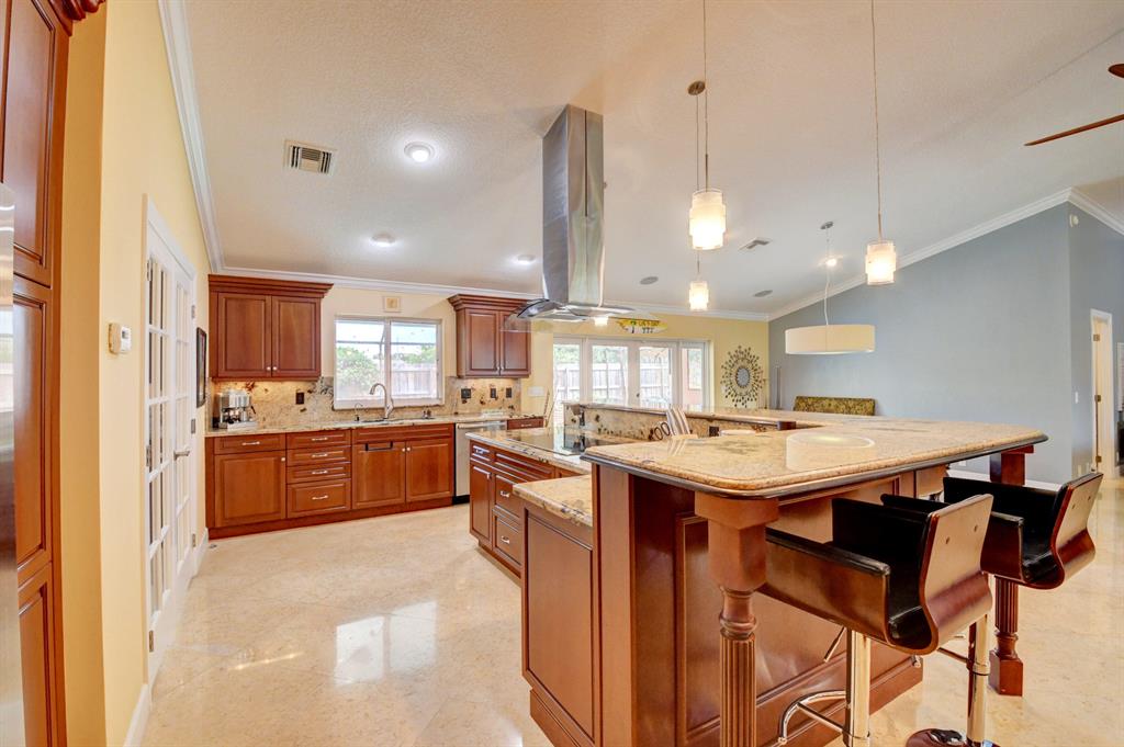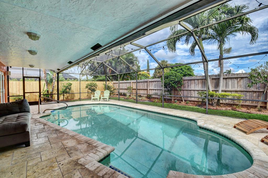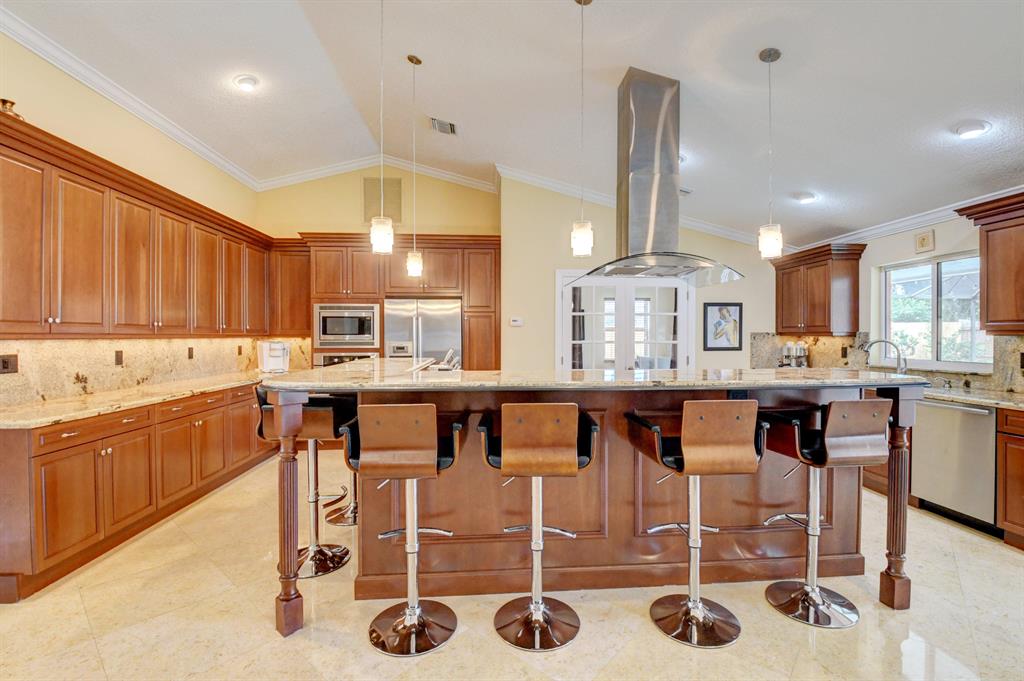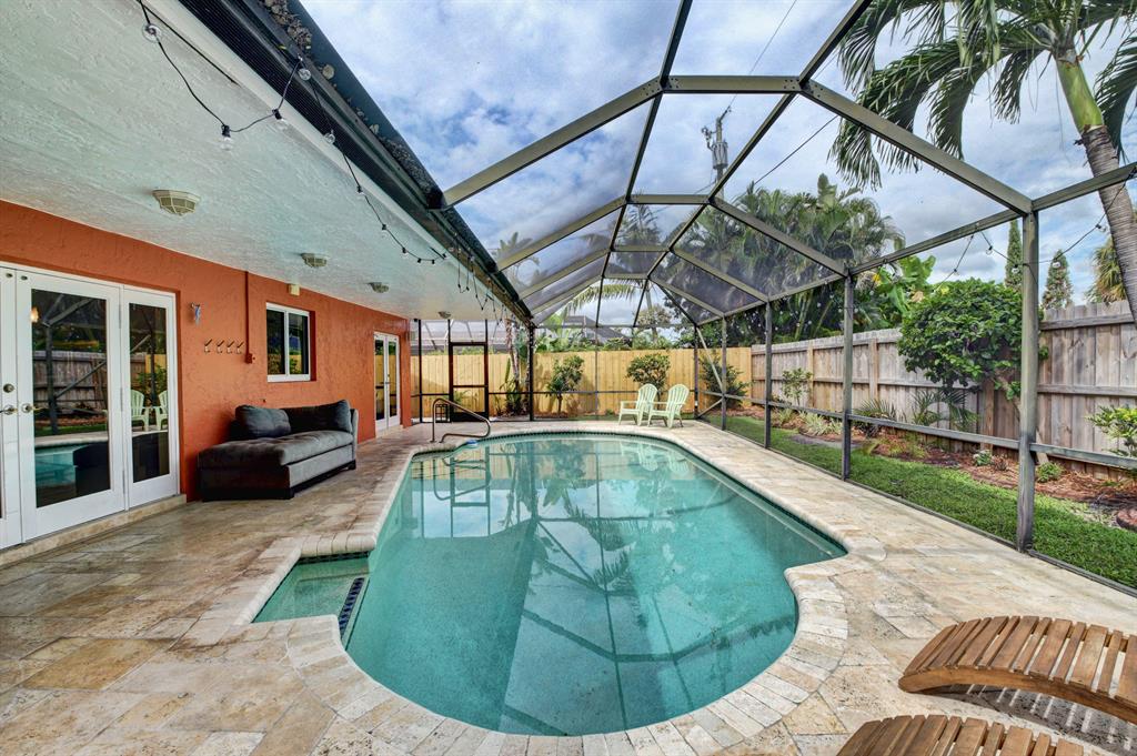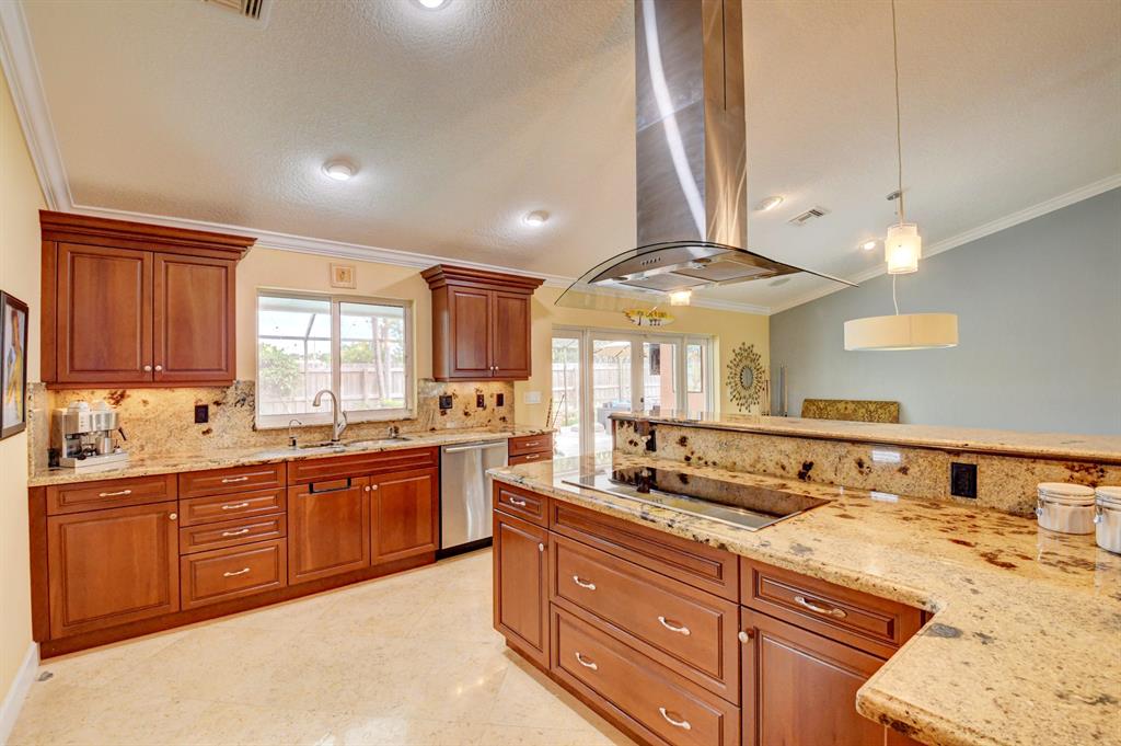 Beautiful remodeled 2 bedroom, 2-1/2 bath pool home with den. Dramatic soaring ceilings, open floor plan, marble flooring thru-out living areas and wood floors in bedrooms. Spacious sq. ft. making for large rooms, 3rd bedroom converted to a dressing room off master, plus den/office/bedroom off living areas. Kitchen boasts Bosch stainless steel appliances, HUGE center island, beautiful granite and new cabinets. Wine closet. Bathrooms updated with top on the line Kohler, upscale cabinetry, granite and quartz counter tops. Screened pool, patio, travertine pool deck, driveway and walkways. 1 of the AC 2017, new side fencing, tropical landscaping, heated floors in master bath, central vac, security system & central speakers. IMPACT GLASS COMPLETE!!!!! Light & bright.