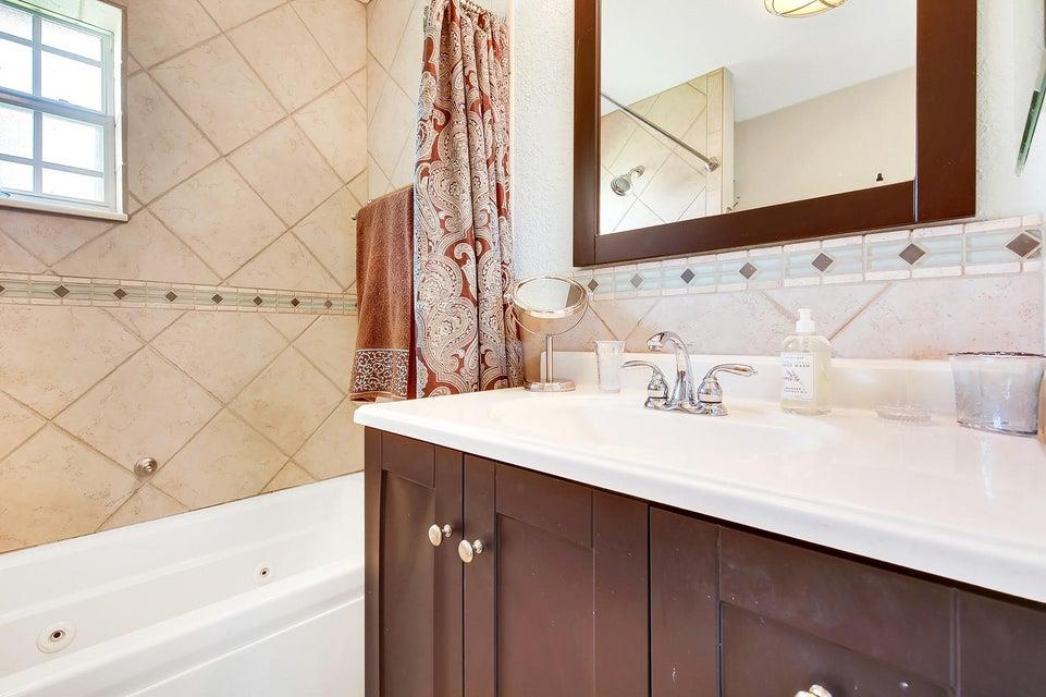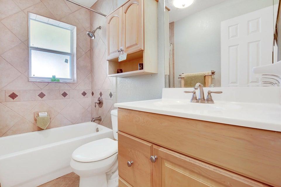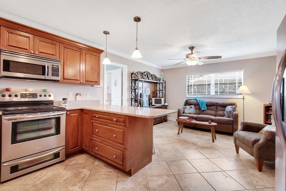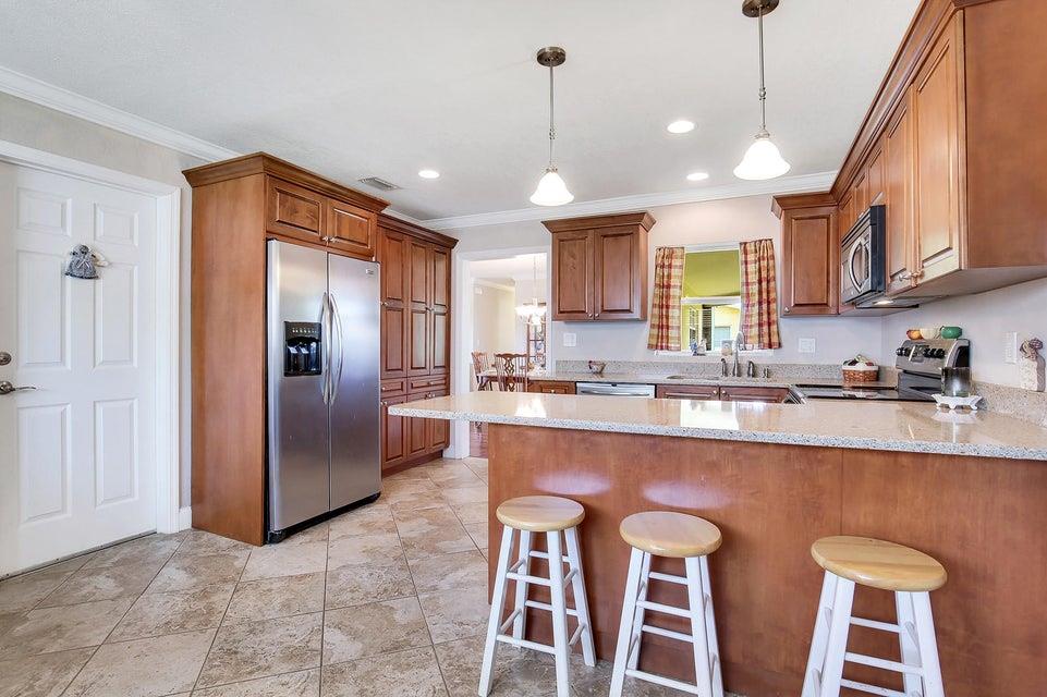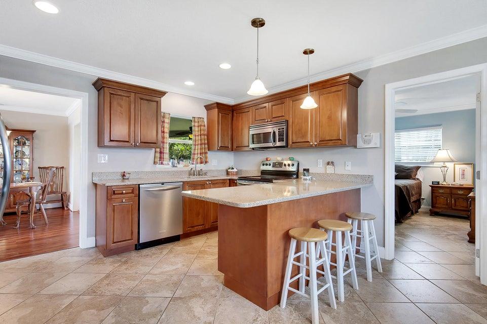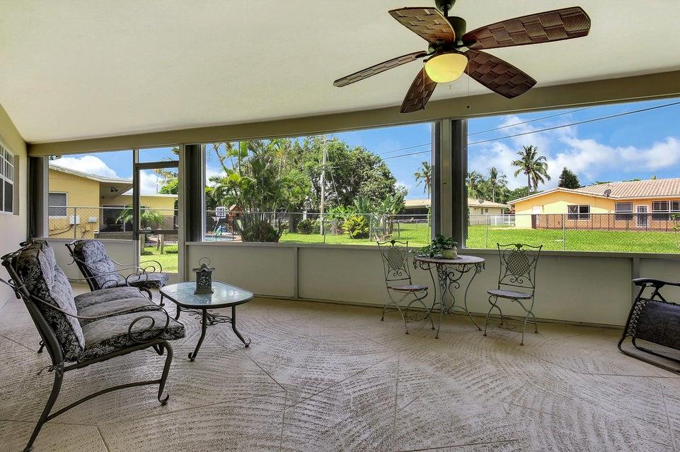 Don't let this one get away! East Boca charmer with a large fenced yard (room for pool) & 2 car garage. ''S'' tile roof adds style. Extra long driveway (great for party guests)leads up to the front walkway. Step inside to an open living and dining room w/lots of light, French Doors and crown molding. Remodeled kitchen w/custom wood cabinets,pot drawers, corner cabinets, pull-out trash, double pantry & cambria counters. Stainless steel appliances include smooth top range w/double oven, microwave, dishwasher + counter depth refrigerator w/ice & water dispenser. Breakfast bar overlooks the Family Room. Master Suite has crown molding, walk-in closet,linen closet, French doors, jetted tub & wood vanity. Split bedroom plan for extra privacy. Large screened porch.Impact windows.