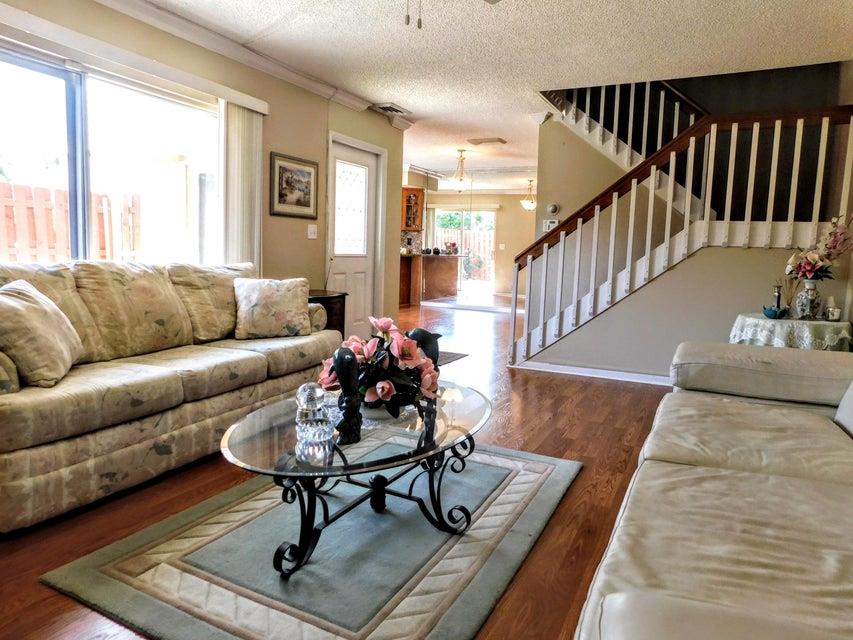 Clean, updated, bright and affordable home close to shopping, hospital, banks, major roads and zoned for top-rated public schools. Easy to maintain this well kept home with updated kitchen, newer appliances, laminate flooring and accordian shutters for storm protection. The association maintains common areas, roof, community pool and insurance on home. Enjoy the private, spacious fenced-in patio that leads to front of home. Convenient full bath on first floor with side-by-side clothes washer & dryer & plenty of room to relax & entertain in the open floor plan. Bedrooms upstairs have nice balconies overlooking the garden patio below, along with full bathroom, tub/shower.