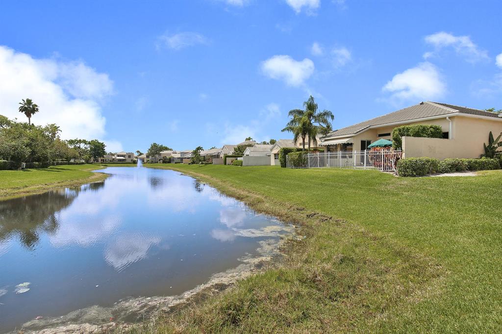 Have your own slice of paradise on the lake in the Palms - a cozy gated enclave,part of the larger Boca Pointe development where memberships are available but NOT mandatory. Very open & light with HIGH ceilings (NO POPCORN),clerestory windows, split bedroom plan PLUS a new roof and 2 skylights in 2014. Eat-in kitchen w/either a breakfast area or family room has plenty of counter & cabinet space, large pantry + picture windows to enjoy the lake view. Spacious Master Suite has oversized customized walk-in closet, a 2nd custom closet, linen closet, long vanity w/double sinks, a soaking tub & separate shower. Enjoy lakeside BBQ's, morning coffee with the sunrise or a glass of wine on the brick pavered patio. Yard is fenced. All ages welcome! Pet friendly too! Manned security gate.