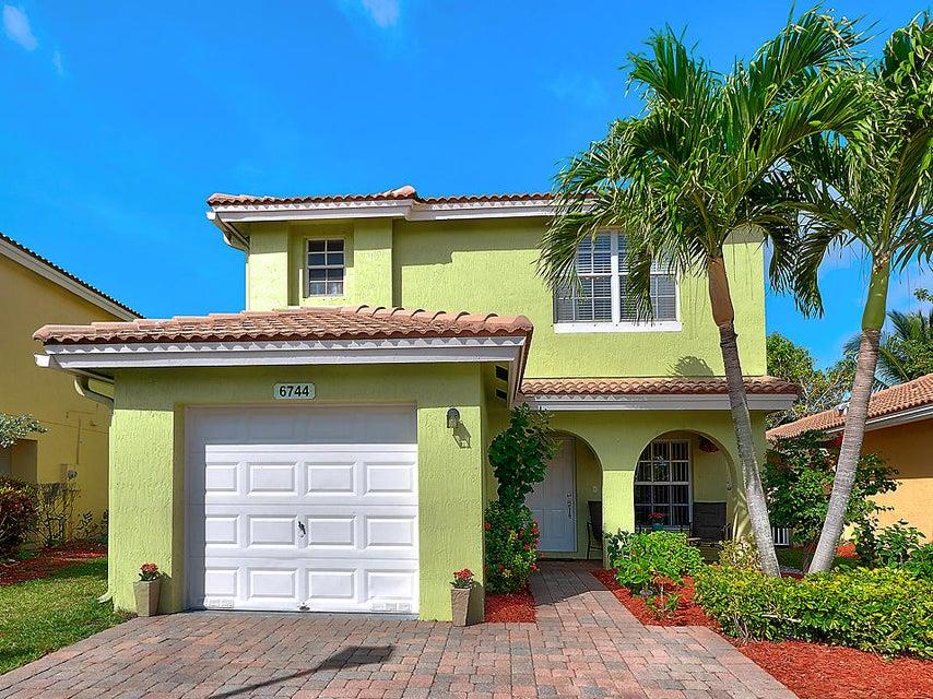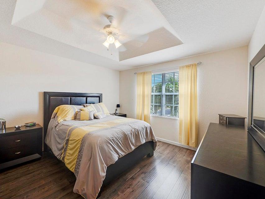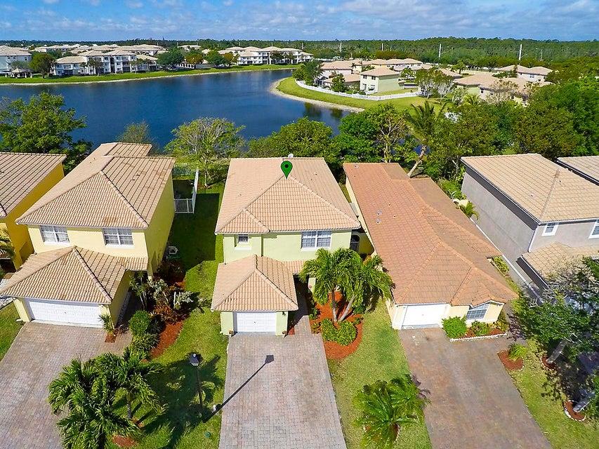 You'll fall in love with this spectacular lakefront home in Liberty Bay. Stunning water views from living, dining and bedrooms. Features include; 3 bedrooms, 2.5 bathrooms, 1 car garage, new wood laminate floors upstairs in bedrooms, newly carpeted staircase, neutral ceramic tile, all new stainless kitchen appliances, hurricane shutters, and above ground spa. Enjoy the bright and open living space with sliding doors leading to the paver patio. Relax in your own backyard paradise, complete with mature, flowering trees and lake view. Community amenities include; Clubhouse, Gym, Pool with beach style entry, Splash Park, Playground and 3 Tennis courts. Close to nature preserve, shopping, dining, turnpike and more.
