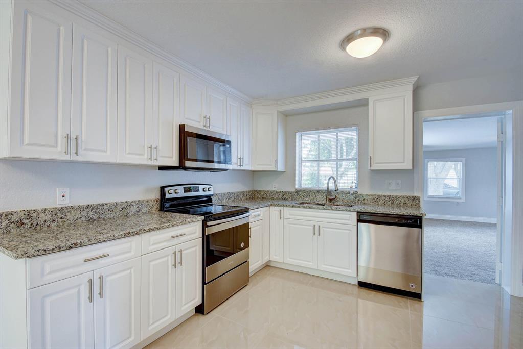 Beautifully Renovated 4 bedroom, 2 bath single family home centrally located in West Palm Beach. Kitchen features new white cabinetry, granite countertops and stainless steel appliances. Spacious floor plan with sizable bedrooms. Fourth bedroom can also be used as a Family room due to it's expansive square footage. Updated bathrooms with new vanities, fixtures and tile inlay in showers. New tile and carpet throughout. Freshly painted interior and exterior. Screened in patio opens out to a fully fenced backyard, perfect for entertaining. A great find, move in ready!
