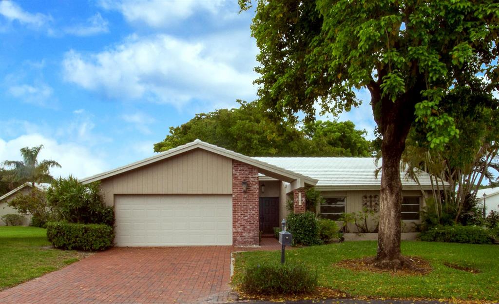 Rare 3 Bedroom 2 Bath Single Family home on cul de sac in Central Boca Raton. Beautiful lake view from screened covered patio. Tile throughout. Vaulted Ceiling in living/dining room with a working fireplace. Both Bathrooms have newer granite vanities. Lovely patio off kitchen. Knock-down throughout. No Popcorn ceiling! 2 Car Garage. Brand new electric panel. Hot Water Heater 1yr old. 2001 Concrete Tile Roof. Hurricane Shutters for entire house. 2 Community Pools. Low HOA Fees includes lawn care. Close to 95 & Tpke. Excellent Boca Schools.