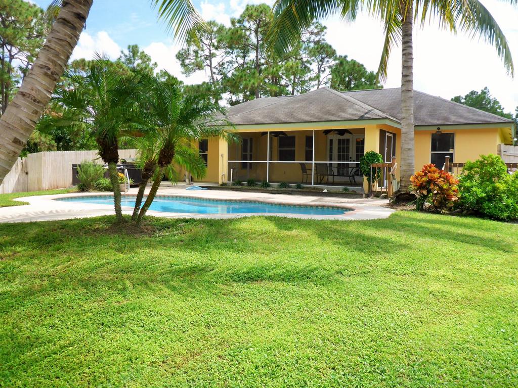 Sooo Nice !!! 3/2 Pool Home with Brand New Roof - New ceramic wood plank flooring thru out, new interior & exterior paint, new carpet beds 2 & 3. Home has Den / office, vaulted ceilings, newer kitchen cabinets, granite counters, tiled backsplash, stainless appls all overlooking lovely pool area. Sweet location just off Coconut on paved Temple Blvd, immaculate 1.19 acres lot with fruit trees (avo, key lime, grapefruit, lemon & tangerine), storage shed, sweet summer kitchen & more...