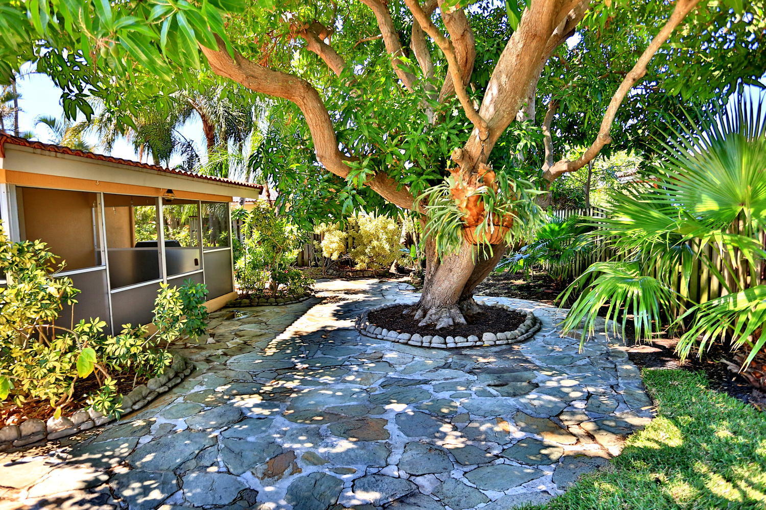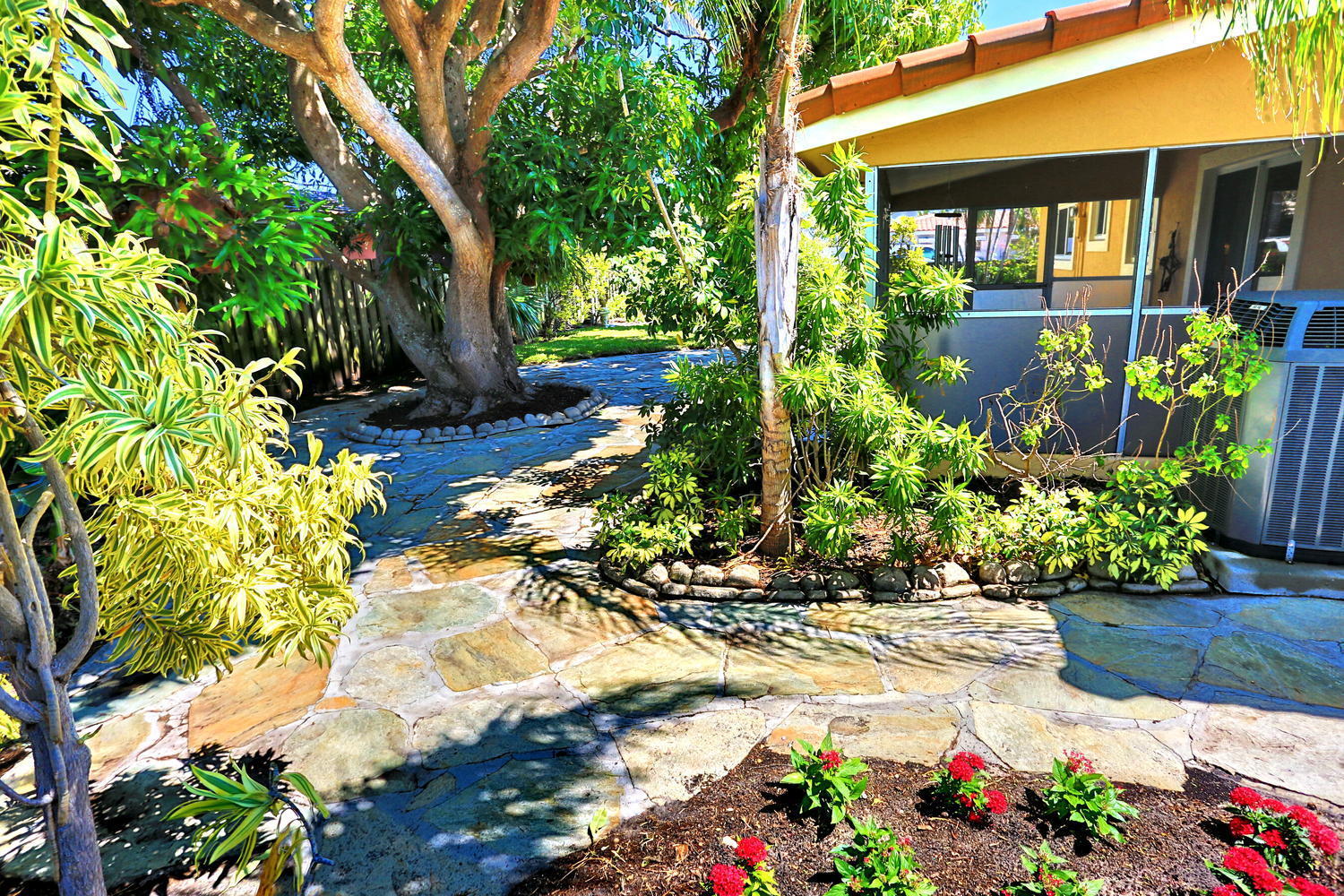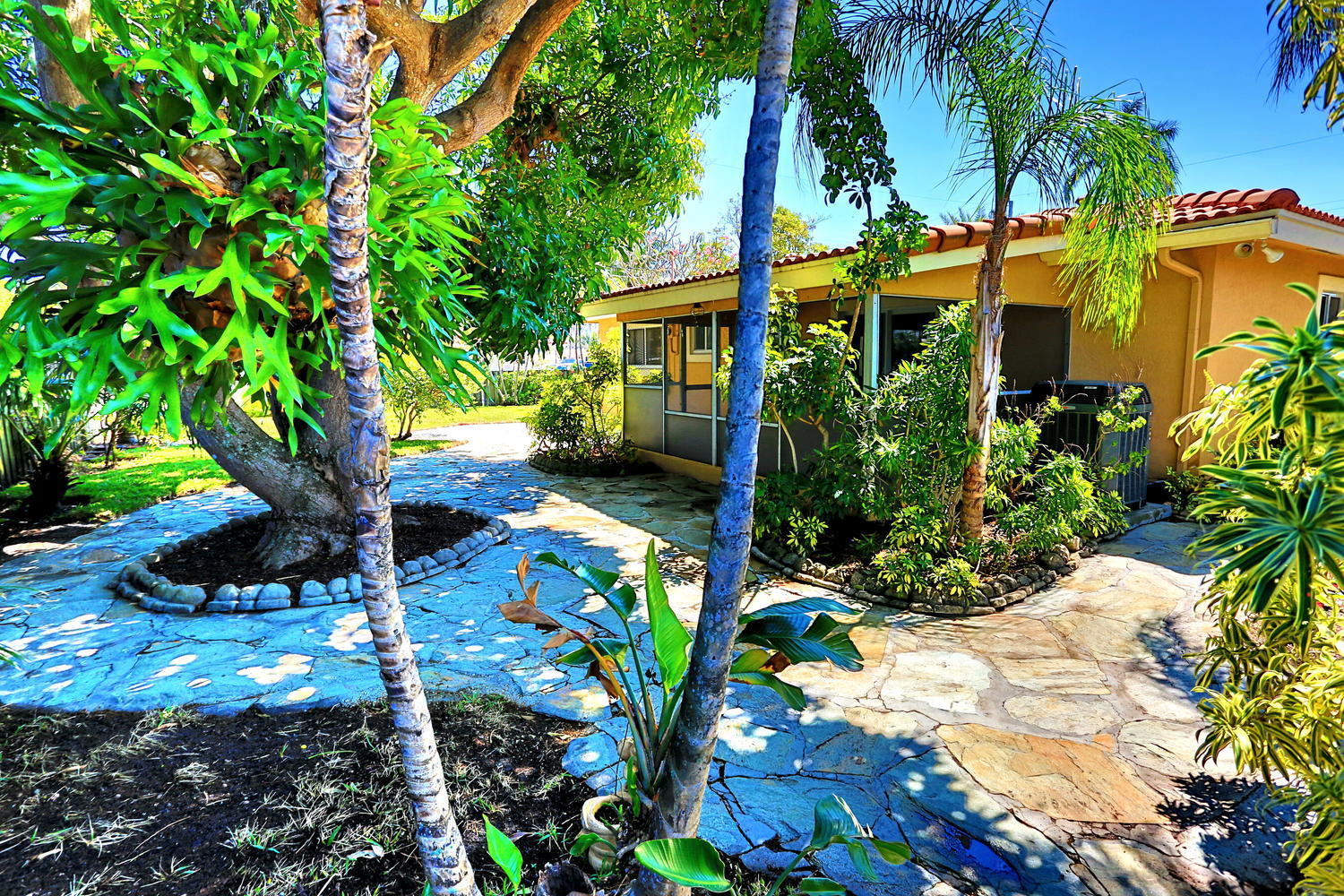 Adorable two bedroom, two bath Cottage home in one of the most desirable neighborhoods in Pompano Beach. As you enter through the custom signature impact front door you will be met with marble floors and baseboards throughout, spacious living room, separate dining area, large kitchen area great for entertaining. Sizable master bedroom, travertine walls with onyx inlay in master bathroom and shower, wood vanity with gold fixtures. New exterior stucco and paint, impact windows with marble sills, tropical landscaped yard with mango tree, butterfly garden, flagstone patio and walkway, exterior sensor lighting, new plumbing and electrical panel. Ceramic tile in the Florida room and utility room. New sod and sprinkler system, shadowbox fence around yard with stuccoed shed. Home security system.
