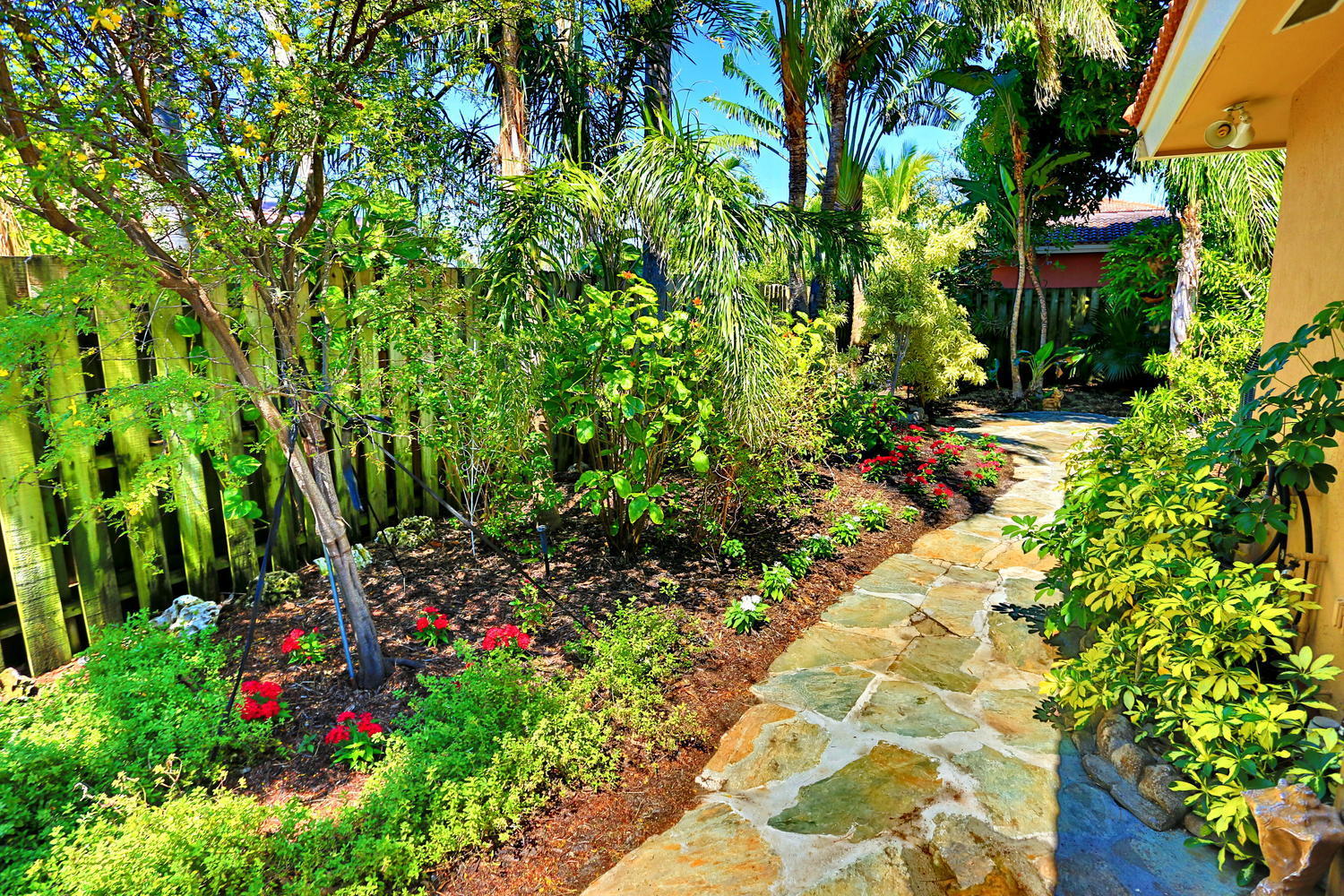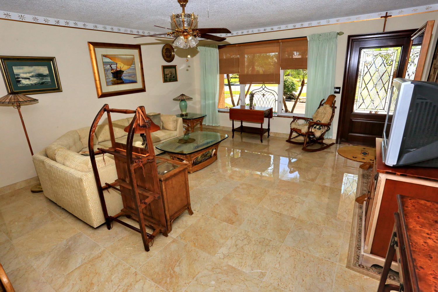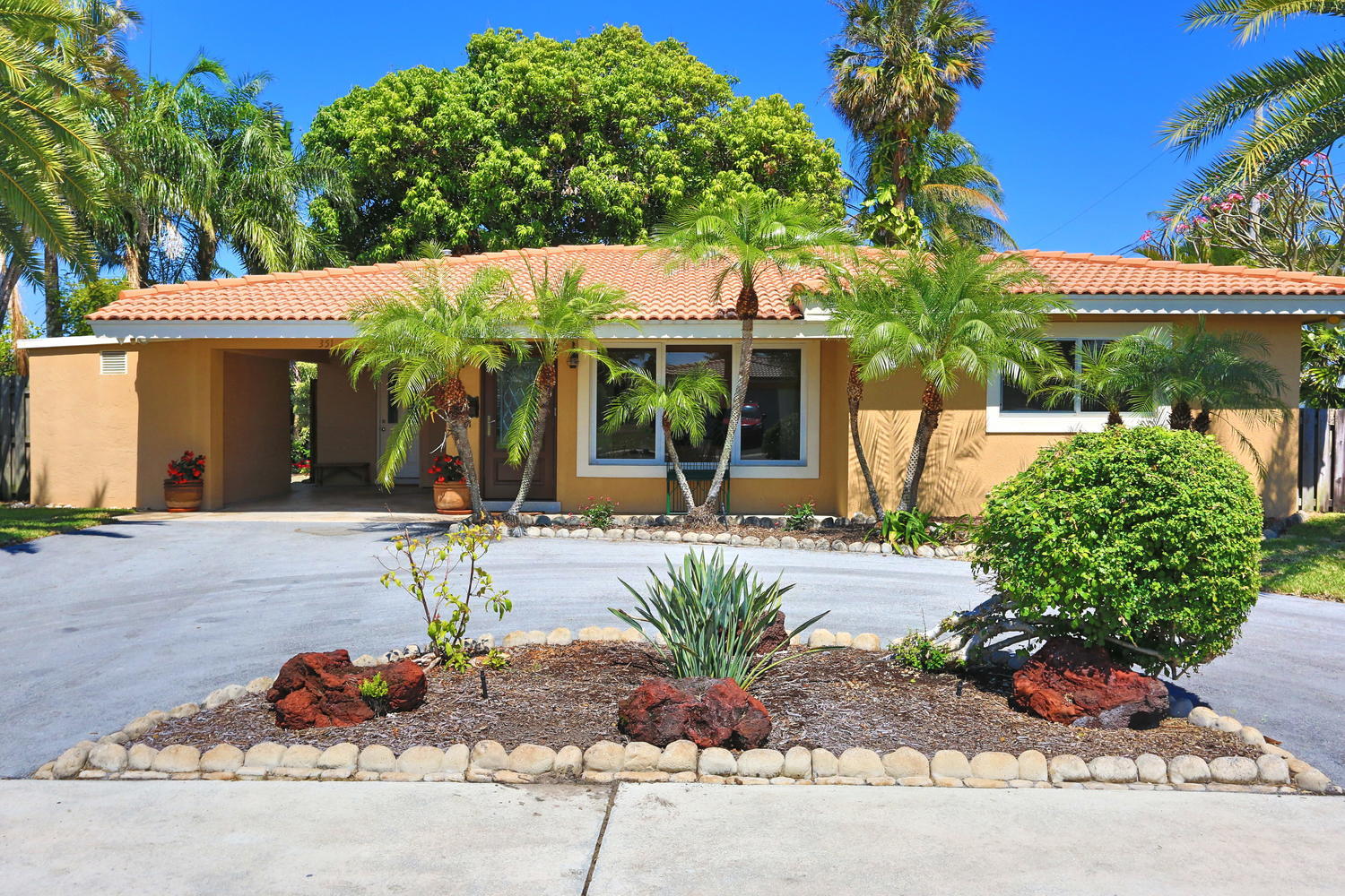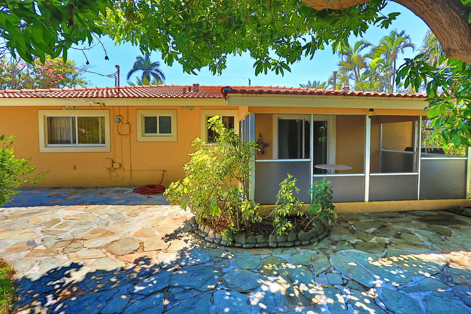 Adorable two bedroom, two bath Cottage home in one of the most desirable neighborhoods in Pompano Beach. As you enter through the custom signature impact front door you will be met with marble floors and baseboards throughout, spacious living room, separate dining area, large kitchen area great for entertaining. Sizable master bedroom, travertine walls with onyx inlay in master bathroom and shower, wood vanity with gold fixtures. New exterior stucco and paint, impact windows with marble sills, tropical landscaped yard with mango tree, butterfly garden, flagstone patio and walkway, exterior sensor lighting, new plumbing and electrical panel. Ceramic tile in the Florida room and utility room. New sod and sprinkler system, shadowbox fence around yard with stuccoed shed. Home security system.