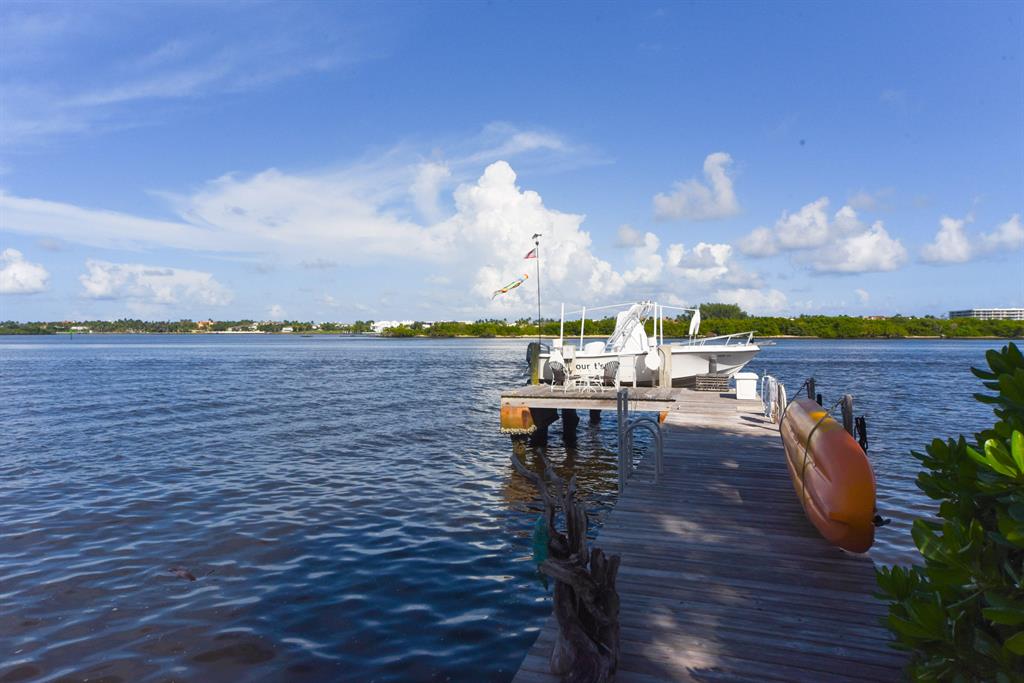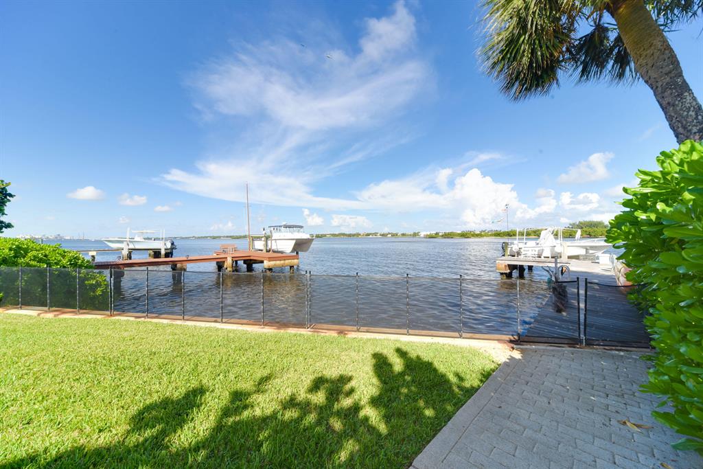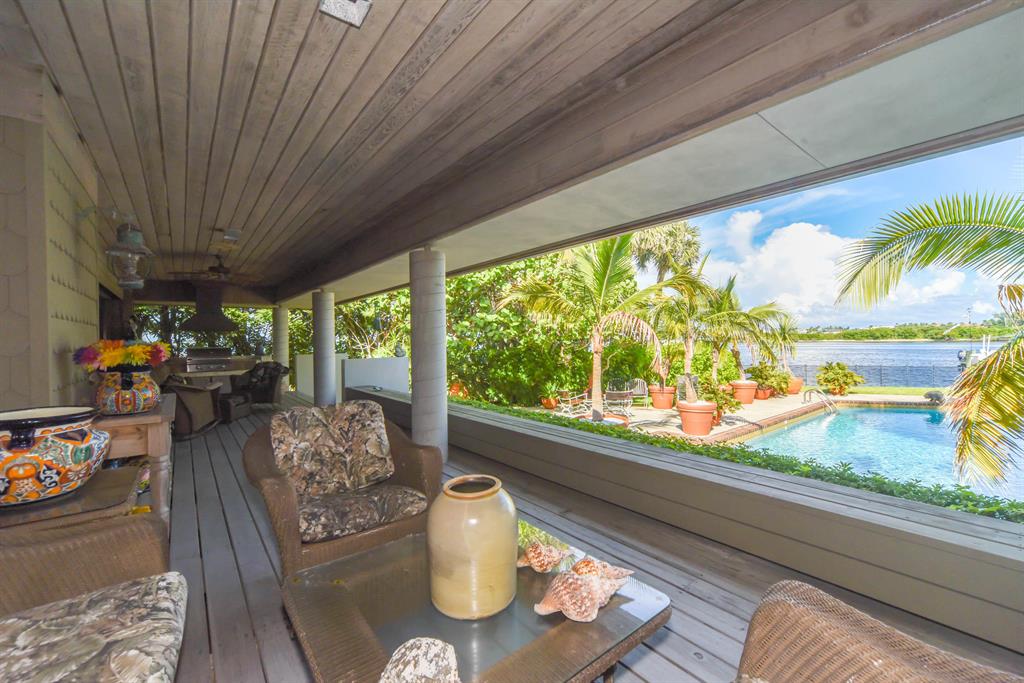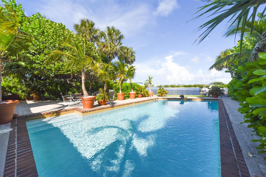 Direct intracoastal South Florida Tropical home with contemporary flare in the exclusive South End neighborhood. There are only 20 properties on direct open intracoastal in the South End. These are premier properties that are NOT in the flight path. Enjoy ocean breezes and intracoastal views from the private back porch of this custom designed home. The family room has 18ft vaulted ceilings overlooking the back porch, pool and expansive views of the intracoastal and Palm Beach. The remainder of the home has 91/2 ft ceilings. Master and two bedrooms are on the first floor and additional room above the garage. All rooms complete with en-suite baths and walk in closets.