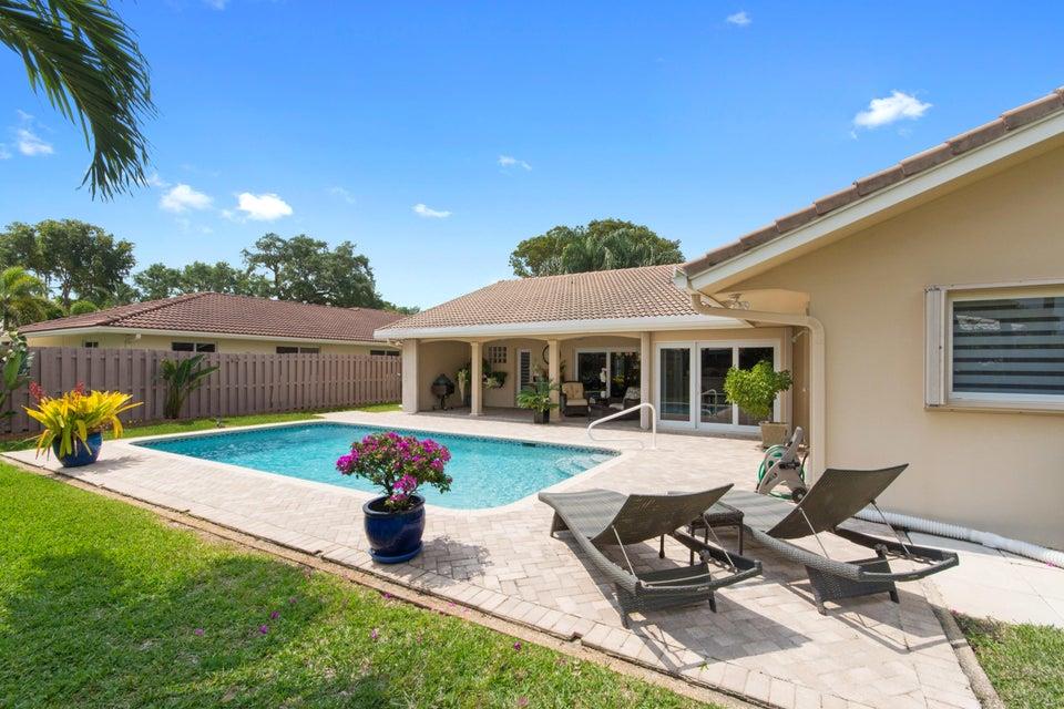 CARRIAGE HILL BEAUTY! QUALITY RENOVATION AND MAINTAINED TO PERFECTION. PRISTINE 4 BEDROOM, 2.5 BATHROOM, 2 CAR GARAGE, POOL HOME. THIS RESIDENCE BOASTS GORGEOUS HARDWOOD FLOORING THROUGHOUT THE MAIN LIVING AREAS, CUSTOM KITCHEN WITH GRANITE COUNTER TOPS AND SS APPLIANCES, CROWN MOLDING, BUILT INS, SOUGHT AFTER SPLIT BEDROOM PLAN, REMODELED BATHROOM 2 AND HALF BATHROOM, ACCORDION HURRICANE SHUTTER PROTECTION, FENCED YARD WITH LARGE POOL AND COVERED PATIO AREA. ADDITIONAL FEATURES INCLUDE: A/C (2016), DISHWASHER (2014), REFRIGERATOR (2010), SALT SYSTEM CHLORINATOR FOR POOL (2017), WATER TREATMENT SYSTEM WITH NEW FILTER (2018), AND MUCH MORE!