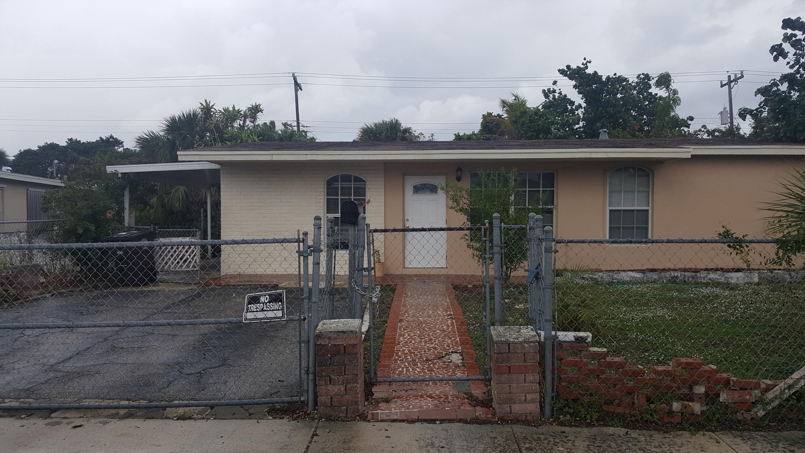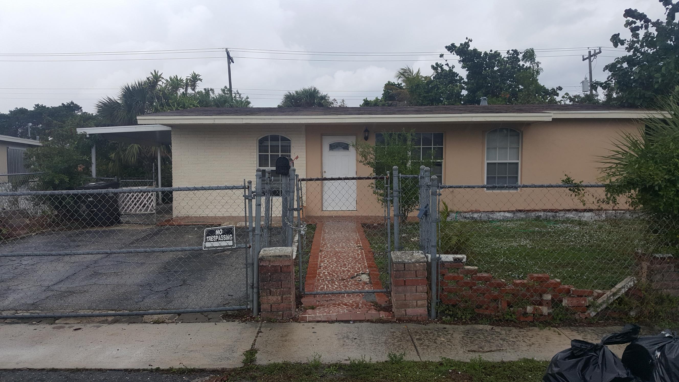 Great starter home. Freshly painted on the inside. Remodeled kitchen with granite counter tops. Separate laundry room and 1 car carport. Parking space for up to 4 vehicles. Large back yard and storage sheds in the back. Needs minor repairs. Easy access to I 95, Downtown WPB, airport and Palm Beach Premium Outlets. has everything you need at an affordable price.
