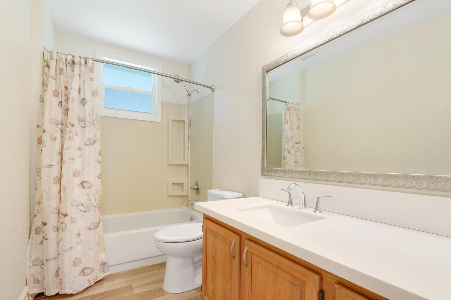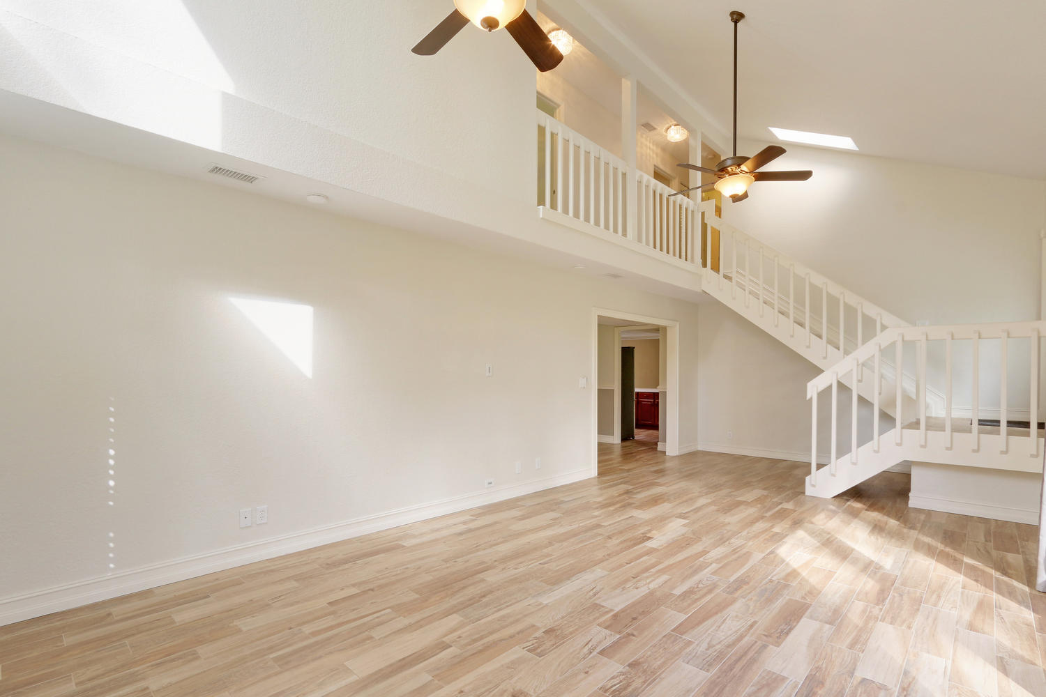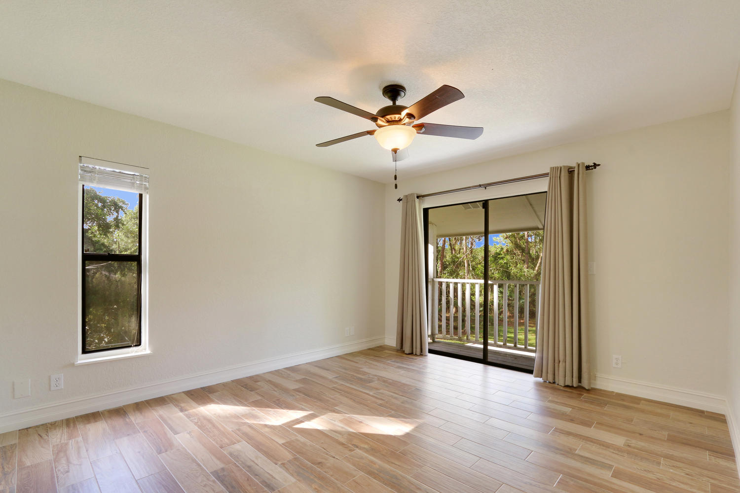 Situated on a quiet and oversized corner lot in the Acreage this home as everything that you could wish for! Beautiful upgrades throughout, a large outdoor deck and fire pit for relaxing or entertaining, a private pond and lots of class! Upon entering this home through the decorative French doors, you immediately notice the grand living space with large windows, beautiful flooring and vaulted ceilings. There is a secondary bedroom and full bathroom on the main floor of the home along with a stunningly updated kitchen, formal dining room, large laundry/utility room (with large built in storage cabinets) and family room. There is wood tile throughout the entire home and all 3 bathrooms have been upgraded. Upstairs you will find the master bedroom, and 2 more secondary bedrooms along with