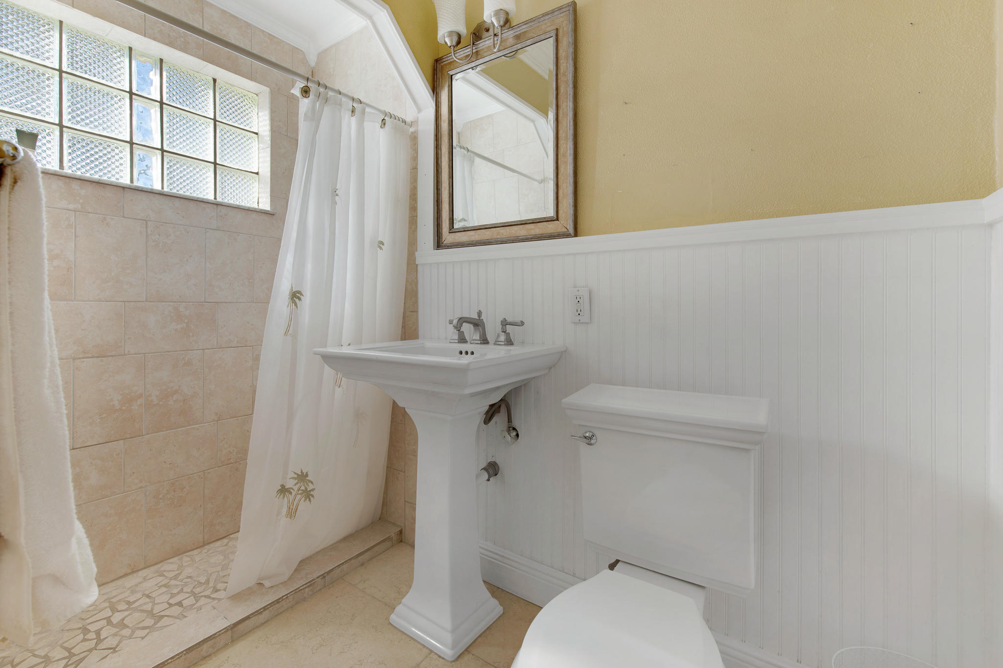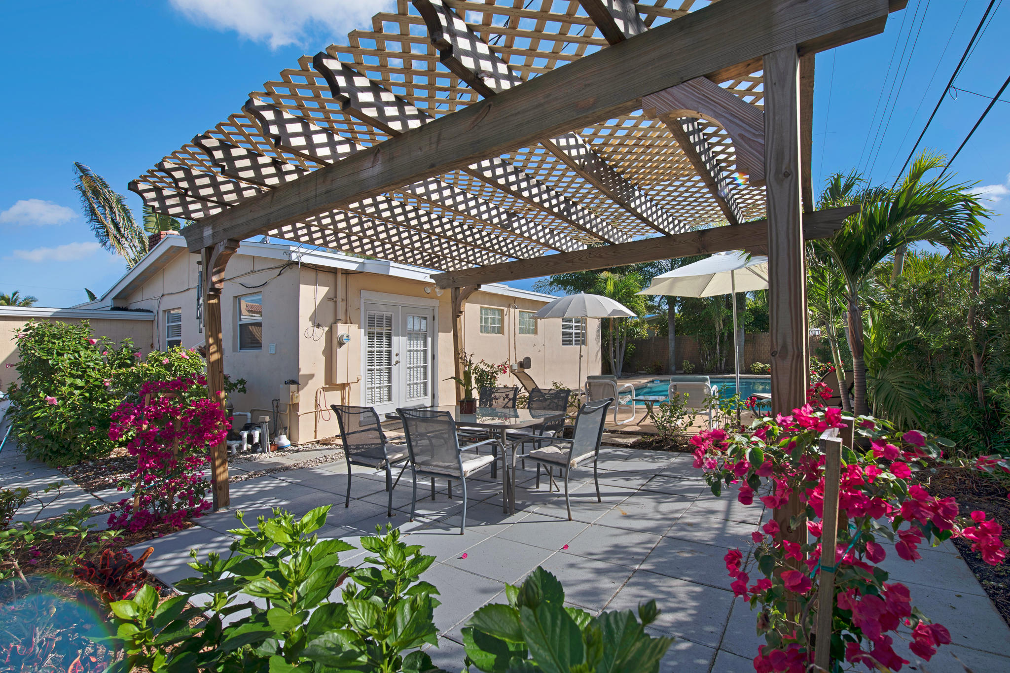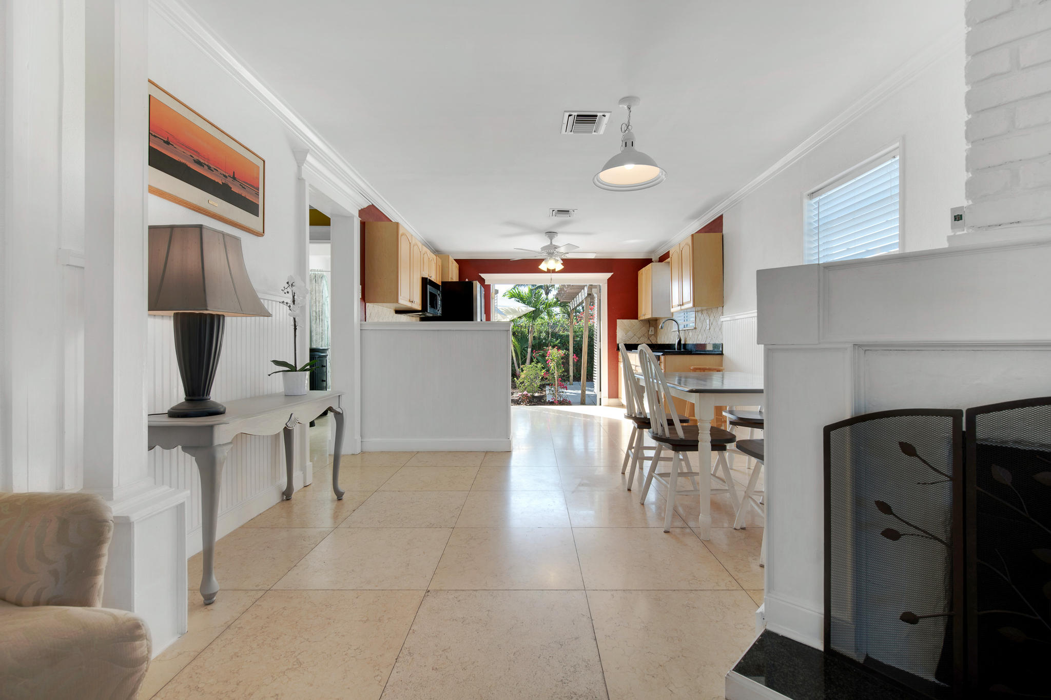 Charming, light-filled 3/2 home, located in SoSo (South of Southern) w/ fireplace, tile flooring, tropical backyard pool & pergola. Remodeled kitchen and baths. Carport. Newer appliances and AC. Located on a private cul-de-sac street w/ access to Flagler Blvd. & Intracoastal. Fenced back yard is great for entertaining. Lowest priced pool home East of Olive Ave and U.S.1 Located in the desirable South Olive School district. Room sizes may not be exact. Good investment potential.