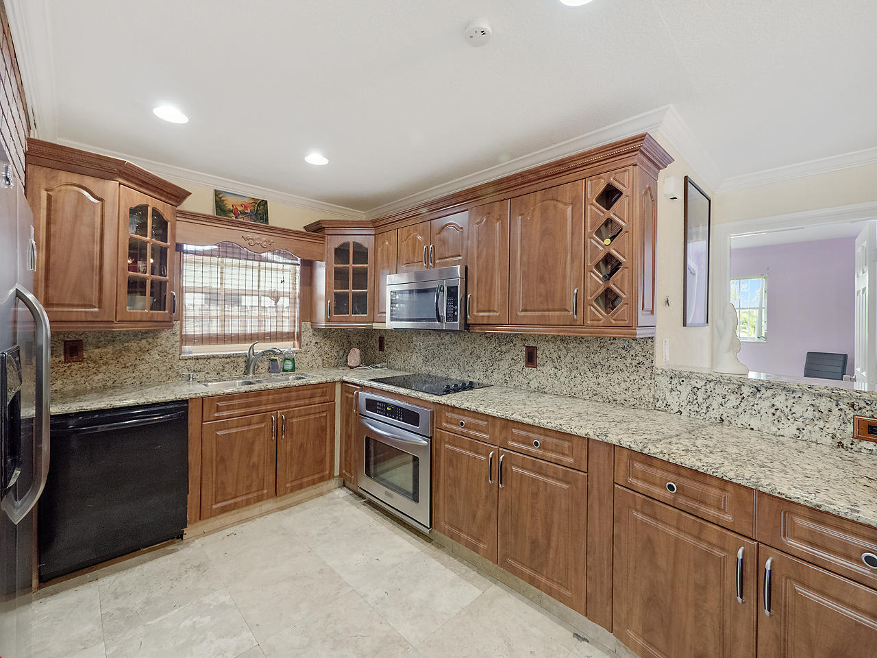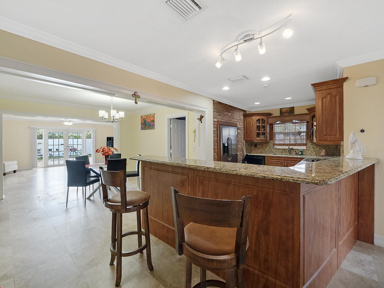 Come live the Florida lifestyle in this beautifully renovated home with custom pool and income earning potential. This 4 bdrm/2 bth home features a spacious 1 bedroom 1 bath (attached) efficiency, with kitchenette and 2 separate living spaces with its own entry. Perfect Mother in law suite or income producing rental space. Bathrooms and kitchen in the main house have been beautifully renovated. The kitchen features granite countertops, and updated stainless steel appliances. Also, has gas dryer & hot water heater. New AC, pool pump, & electrical panel. No HOA! Fenced in area, just off main driveway, perfect for boat or RV parking. Spacious fenced in backyard and pool area perfect for entertaining. Centrally located to I-95, beaches, shopping & restaurants. Priced to sell
