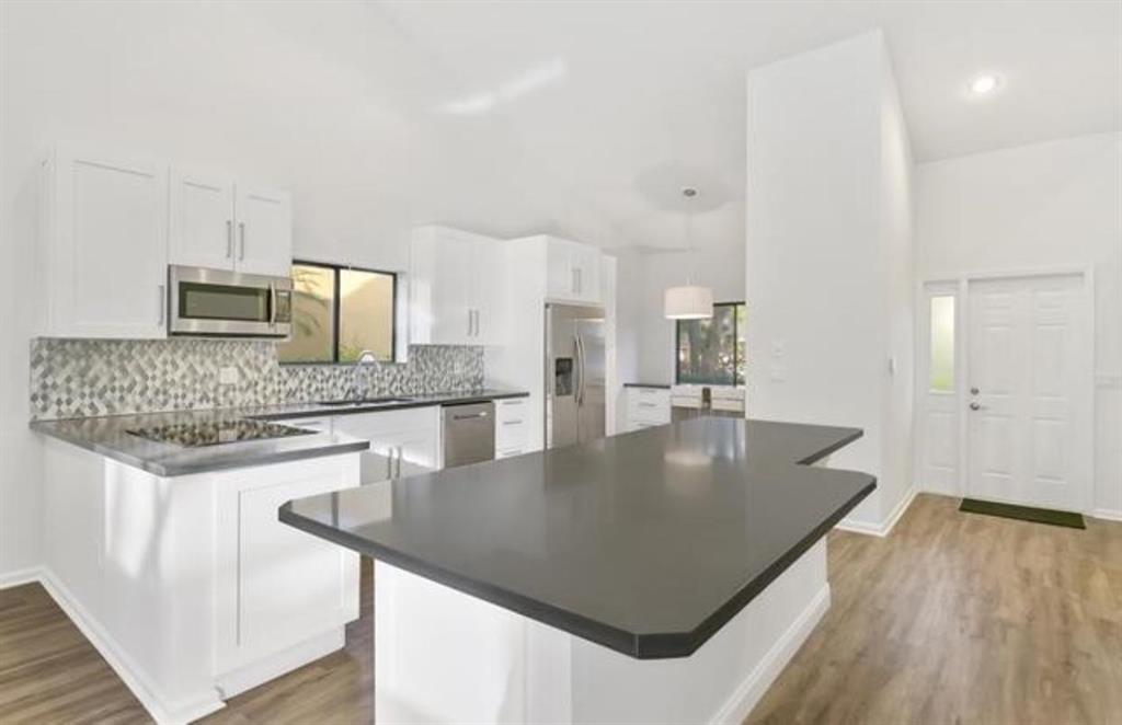 Modern 3/ 2.5 2 car garage townhome with open floor plan and volume ceilings features gorgeous renovated kitchen with Cesar stone counters and premium Samsung appliances. Upgraded new flooring and new paint throughlout. Large screened patio and private backyard in one of the largest lots in the community and makes this feel like a single family home. New roof in 2014 and newer AC. Awesome tee lined east Boca community close to the beach, shopping, Mizner Park, FAU , hospital and I-95. Excellent Boca schools at all levels.