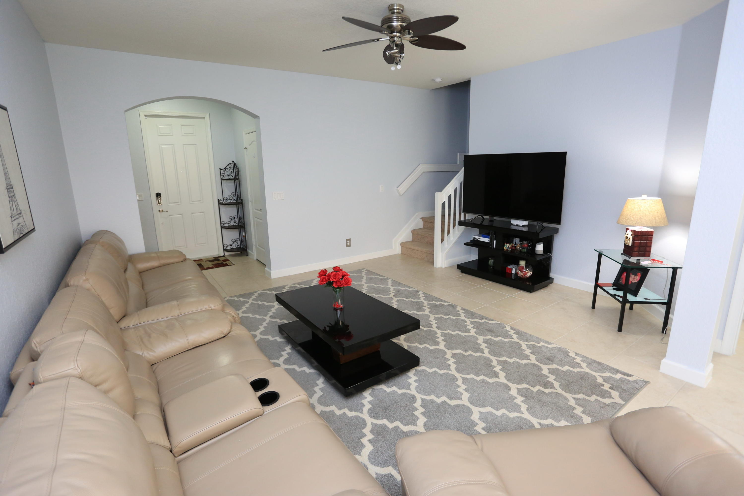 Stunning 3/2.5 townhouse in the security gated and highly sought after Charleston Commons. Run to see this highly upgraded unit with all the bells and whistles. Upgraded 42'' kitchen cabinets with designer glass back splash and granite counter tops beautifully accent the upgraded Stainless Steel appliance package. High end ceiling fans add a great touch to this move in ready unit. The fully tiled and recently painted first floor add that something extra to this one! This development is FHA/VA APPROVED, so bring all buyers! Minutes walk from the tot lot and swimming pool, and just over a mile to the new Ballpark of The Palm Beaches. Shopping, Dining, and Entertainment are minutes away. The low HOA makes this one all the more attractive. Motivated to sell, bring all qualified buyers!