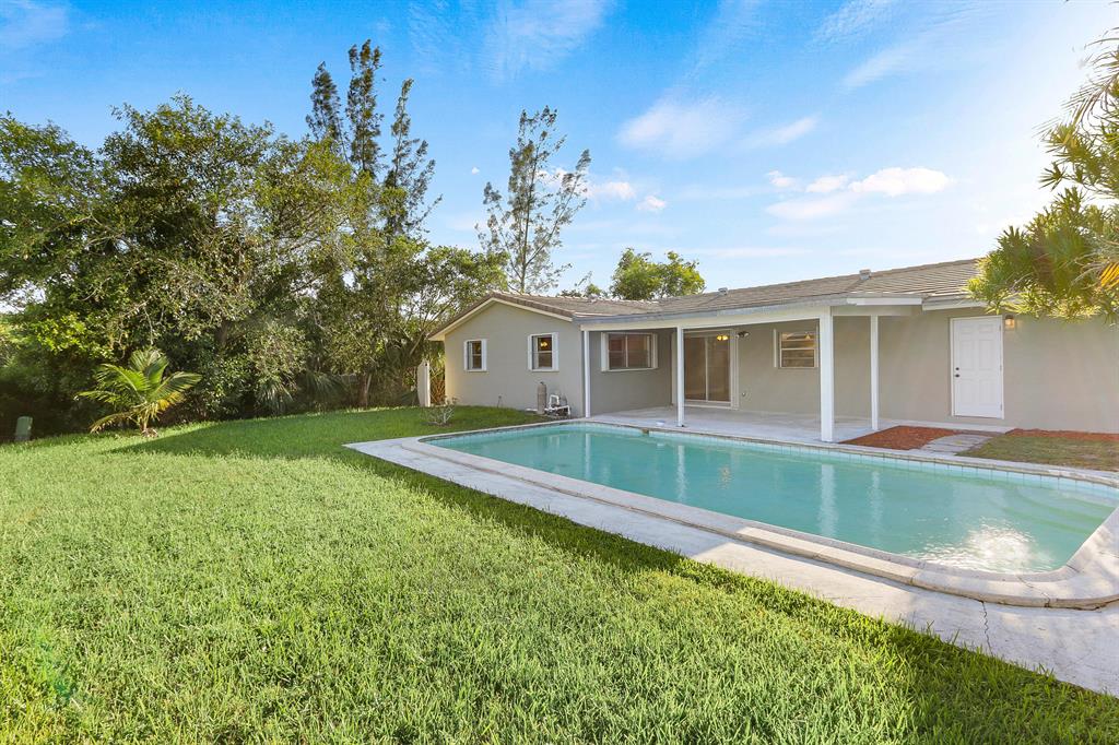 Updated 4 bedrooms, 2 full bathrooms, 2 car garage pool home with an additional room that could be used as a 5th bedroom or bonus room (has closet and window). Updates include brand new kitchen cabinets, granite counter tops, new wood floors in living area, new tile in kitchen, new bathroom vanities, new carpet in bedrooms, new light fixtures and hardware through out, and fresh interior and exterior paint. Hurricane accordion shutters on all windows. NO HOA.
