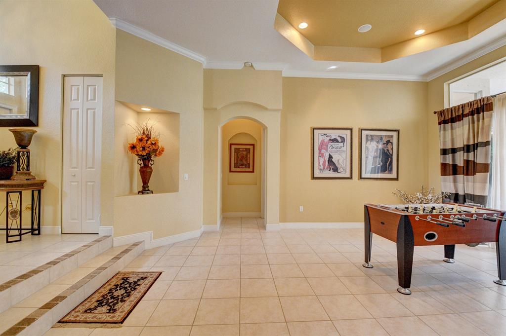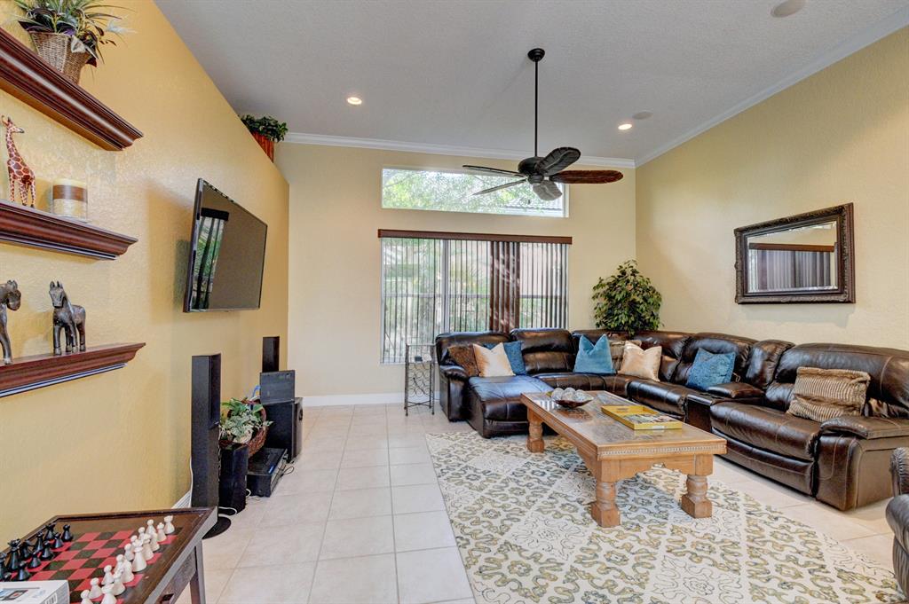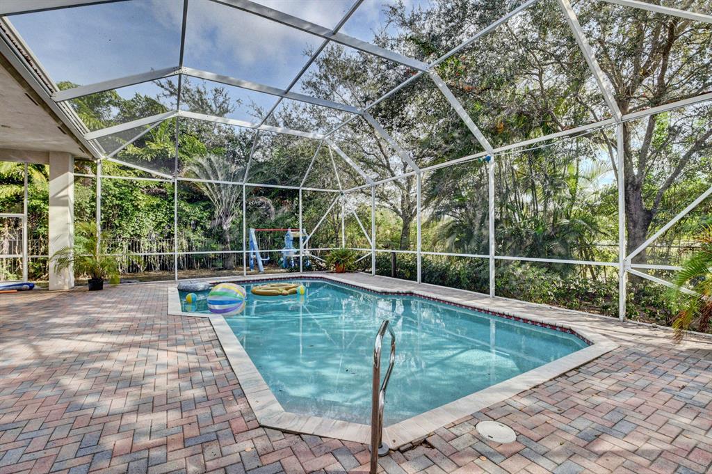 This must see beautiful one story home has incredible open triple split floor plan. Rare Rembrandt model features 5 bedroom plus an office/media room. The entryway has dramatic 17 ft. tray ceilings with recessed lighting and crown molding throughout. The Kitchen has stainless steel appliances. Surround sound speaker system throughout house. Lush landscaping allows privacy around dome screened pool. There is a water filtration system. Equipped with central vacuum. Saturnia is highly sought after community with A+ rated Elementary and Middle schools directly across the street from 24 hour manned guard gate. Upscale clubhouse has full sized gym, tennis courts, toddler play area inside and outside. Also a beautiful resort style pool with newly renovated Club room for card players
